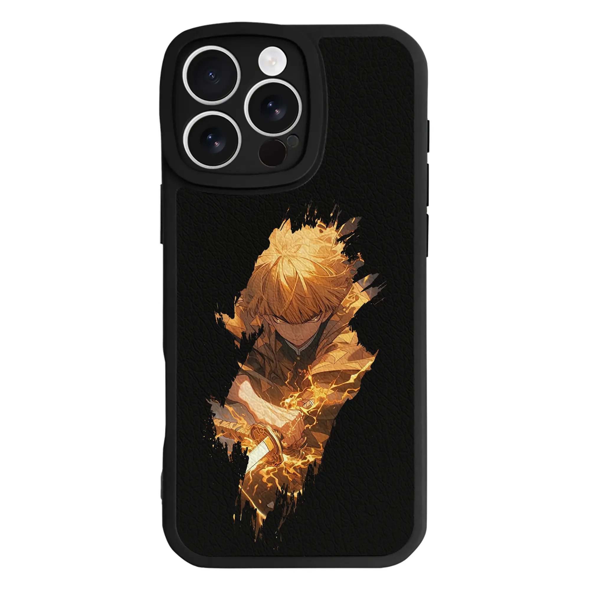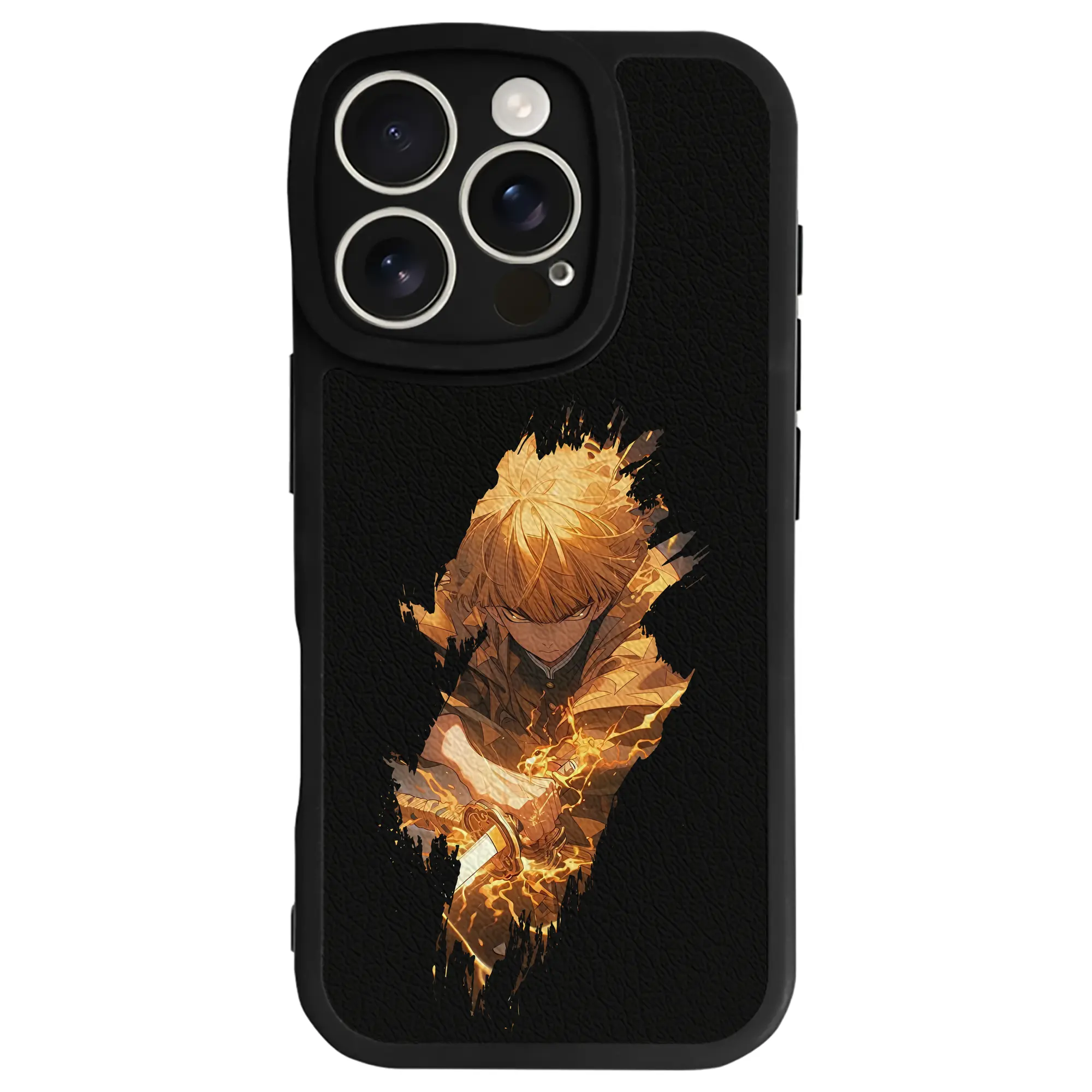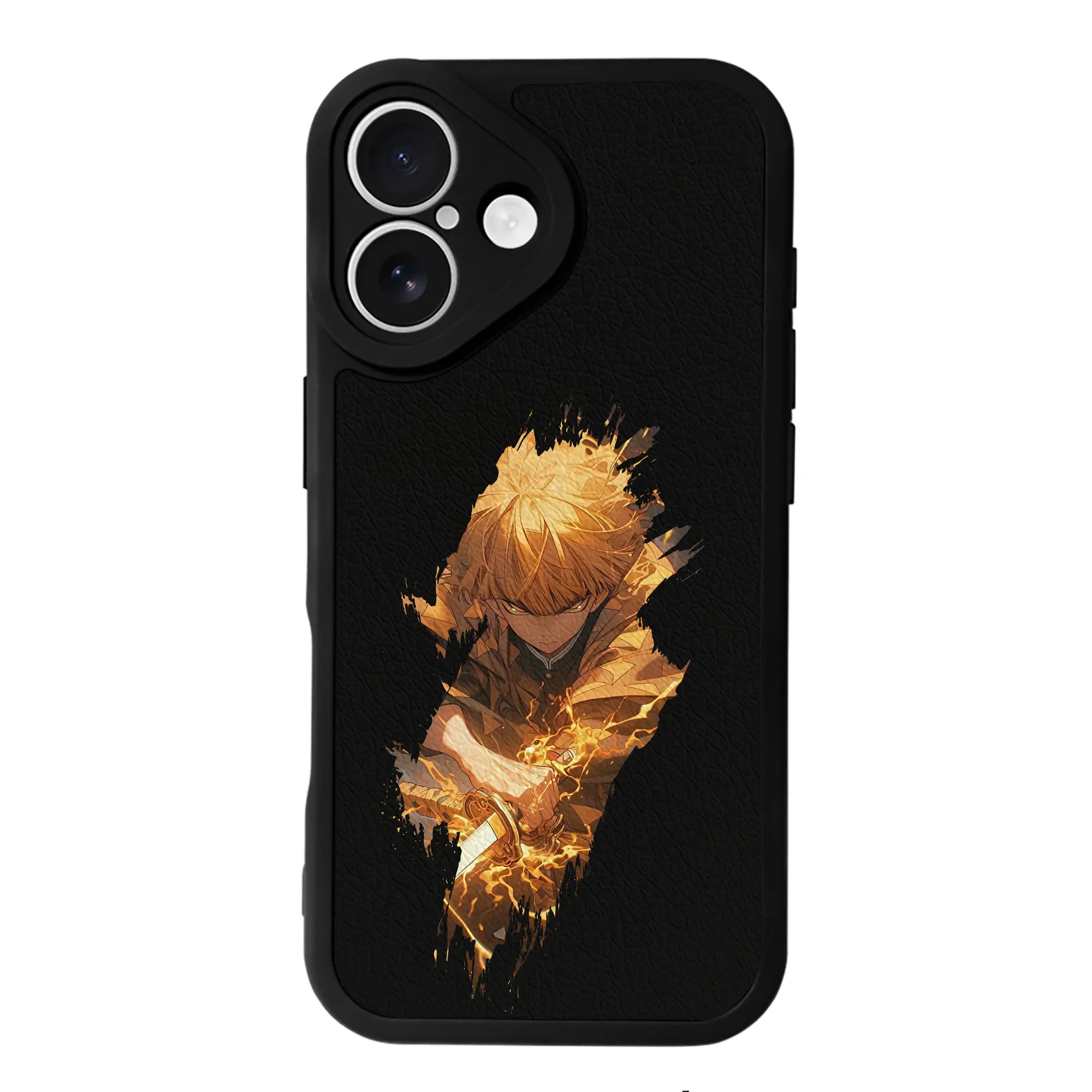 鬼滅の刃 グッズ,我妻 善逸 - IPhone 16シリーズ対応 ・ シリコンスマホケース ・ レザー調 ・ 高精度フィット ・ 耐衝撃 ・ ワイヤレス充電対応 ・ 精密カット