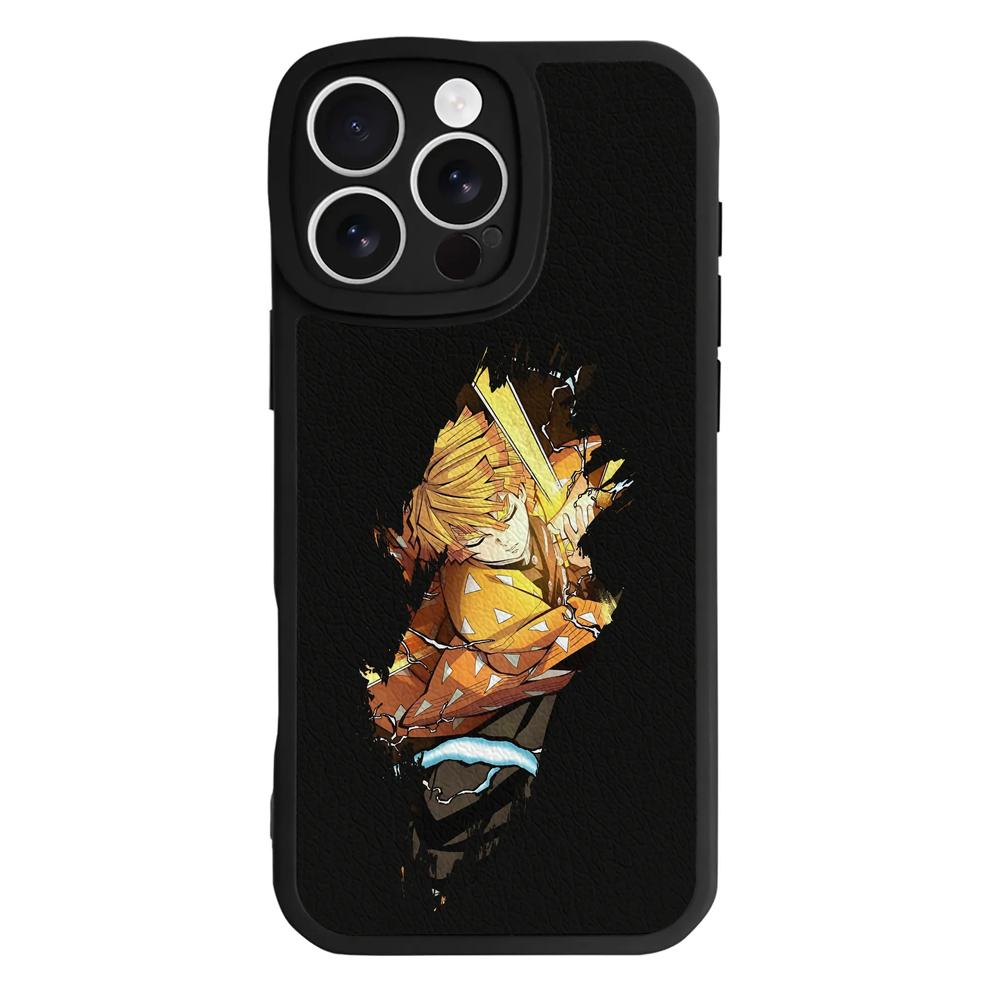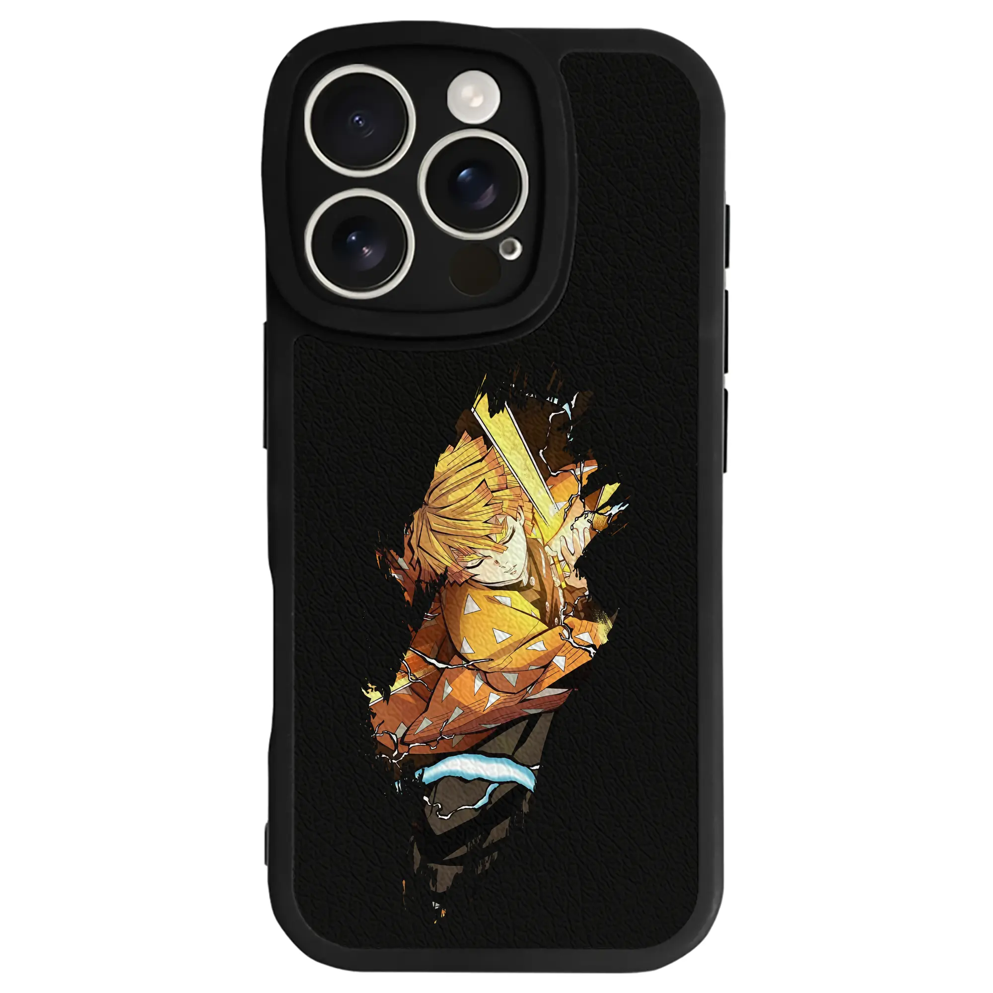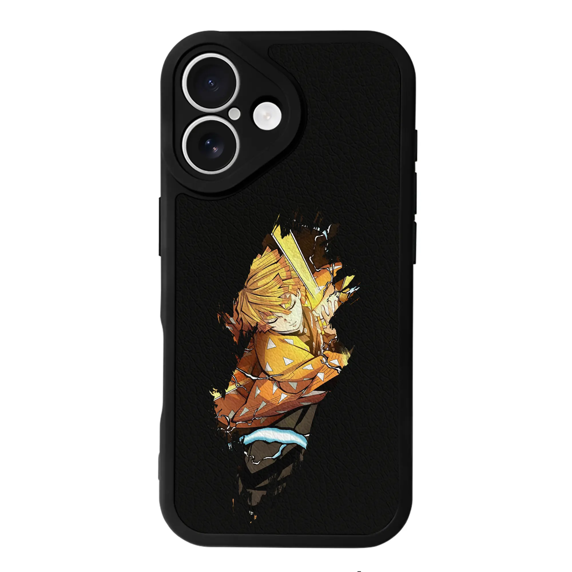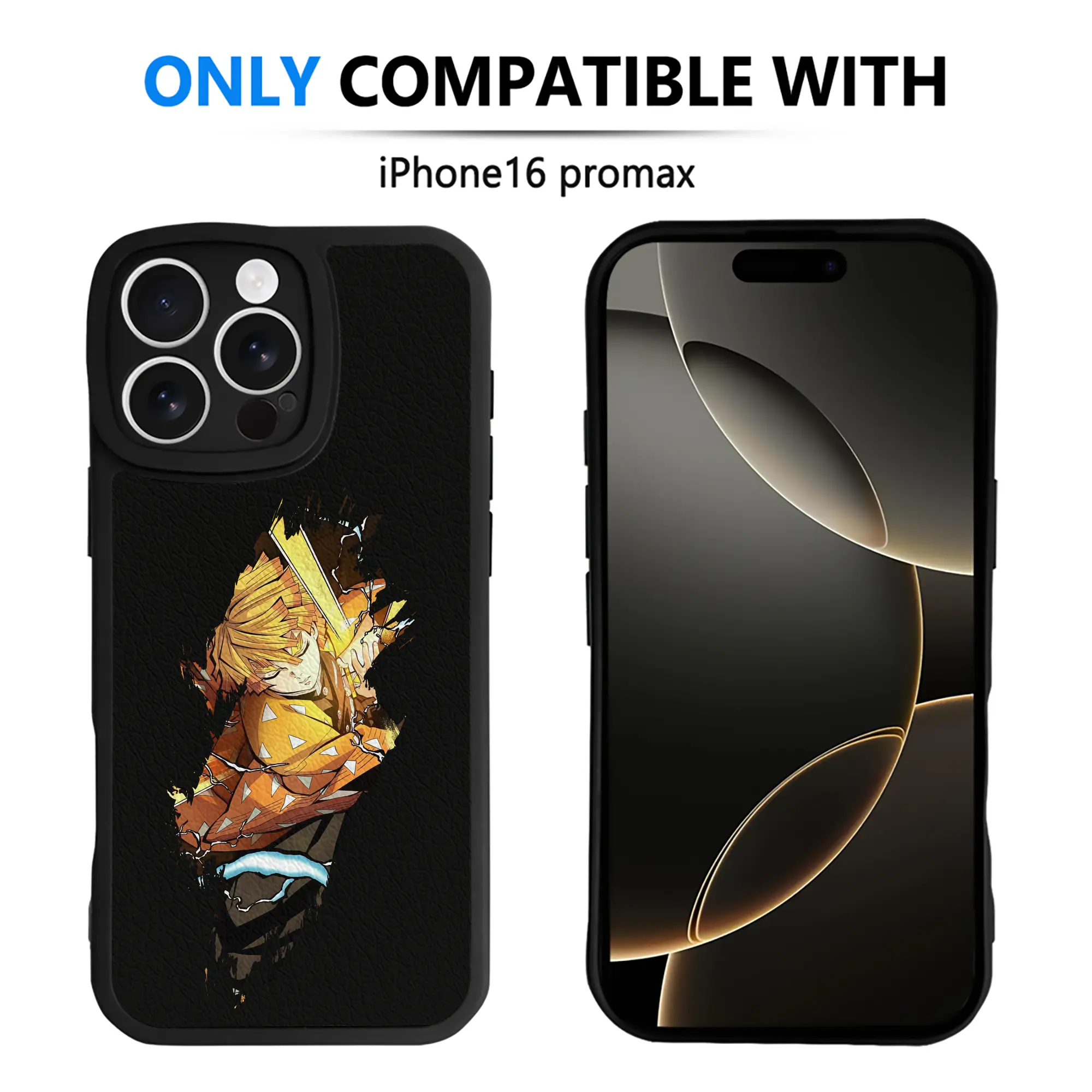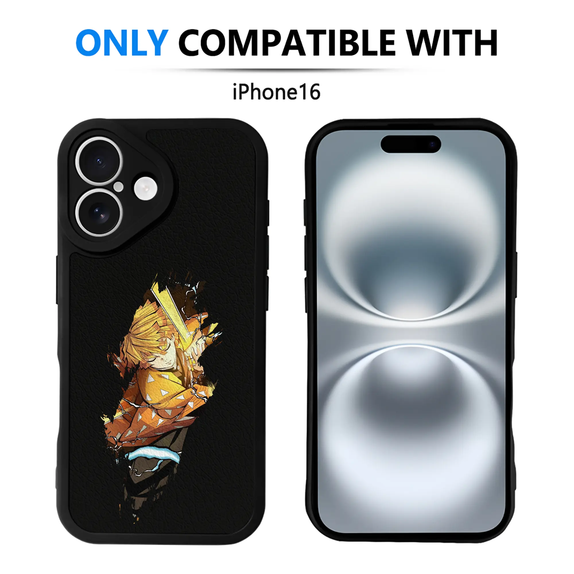 鬼滅の刃 グッズ,我妻 善逸 - IPhone 16シリーズ対応 ・ シリコンスマホケース ・ レザー調 ・ 高精度フィット ・ 耐衝撃 ・ ワイヤレス充電対応 ・ 精密カット