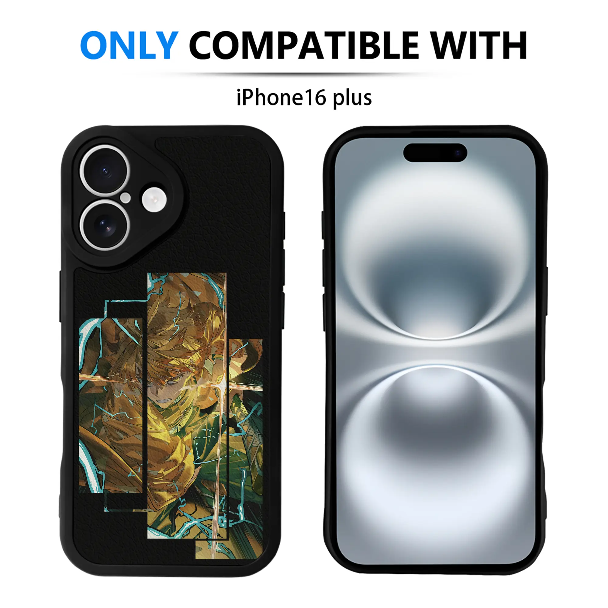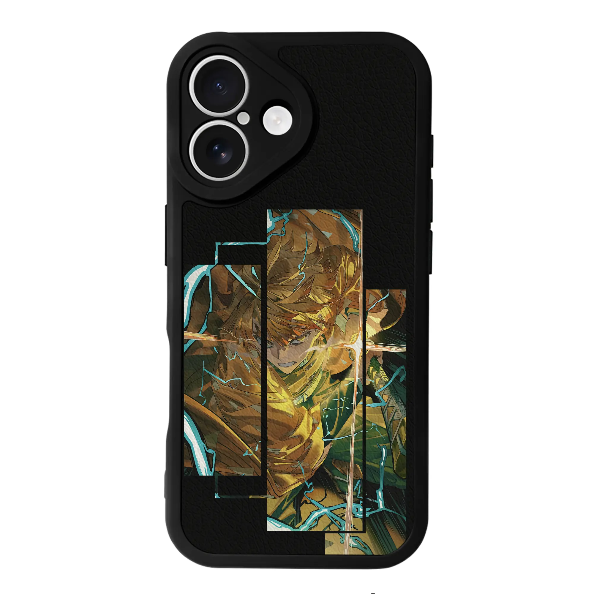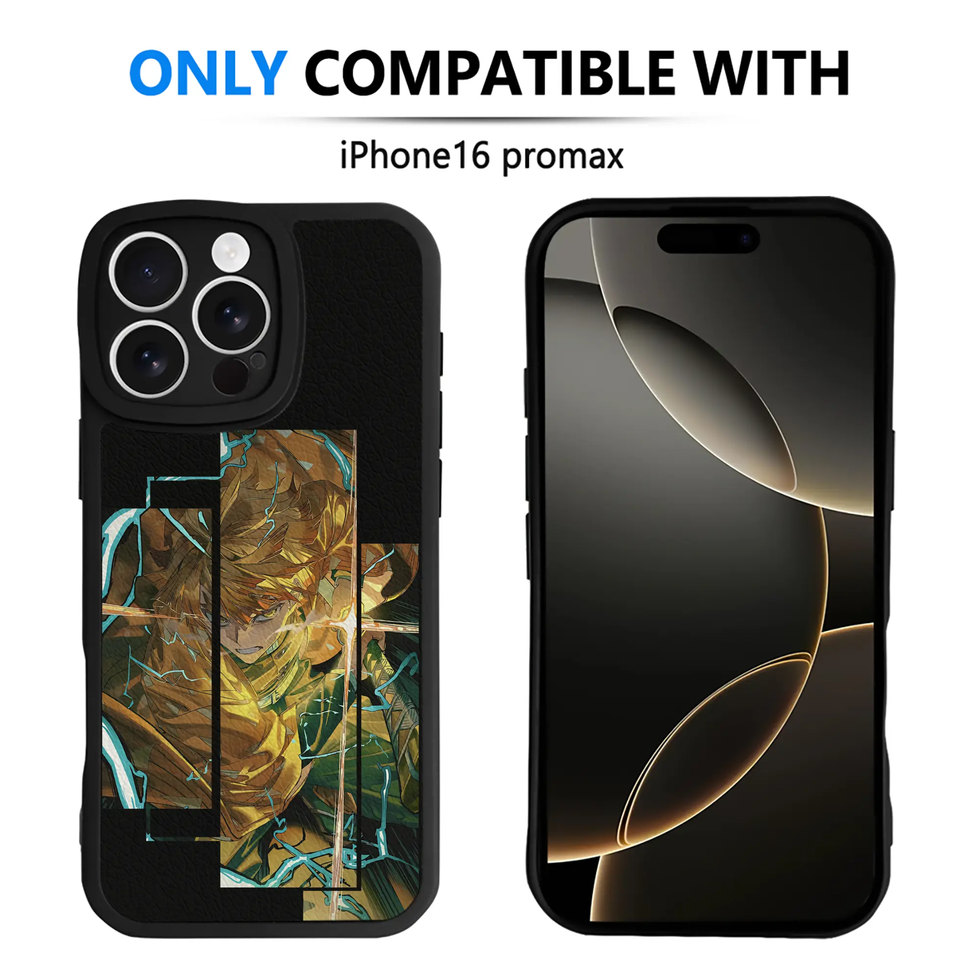 鬼滅の刃 グッズ,我妻 善逸 - IPhone 16シリーズ対応 ・ シリコンスマホケース ・ レザー調 ・ 高精度フィット ・ 耐衝撃 ・ ワイヤレス充電対応 ・ 精密カット