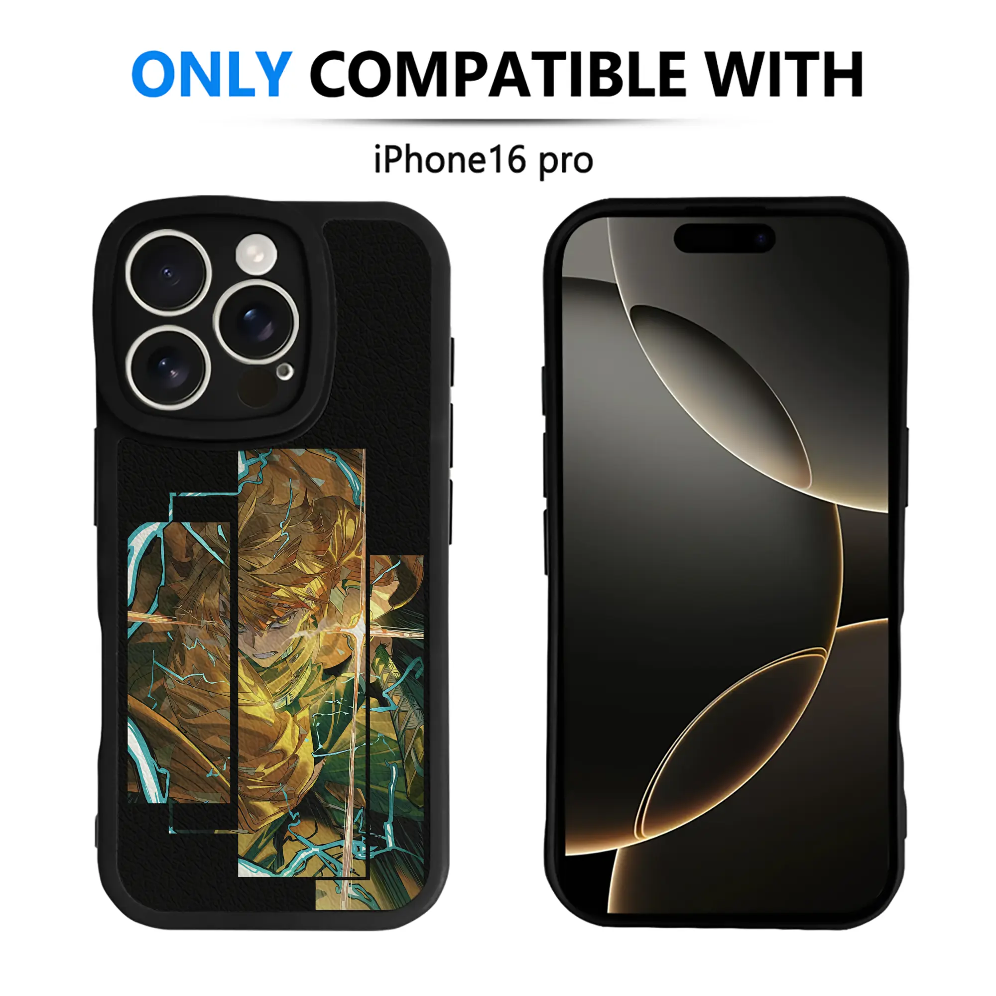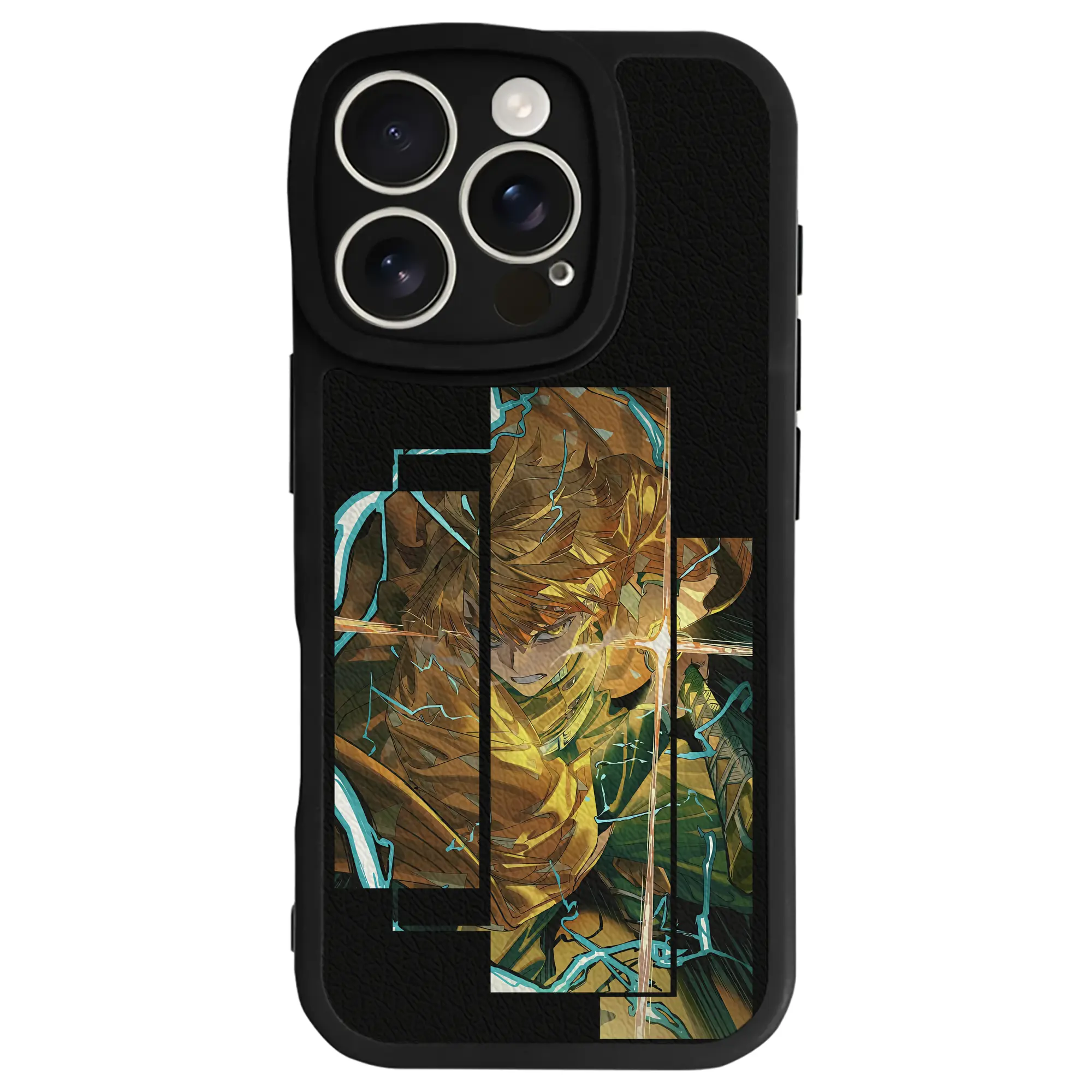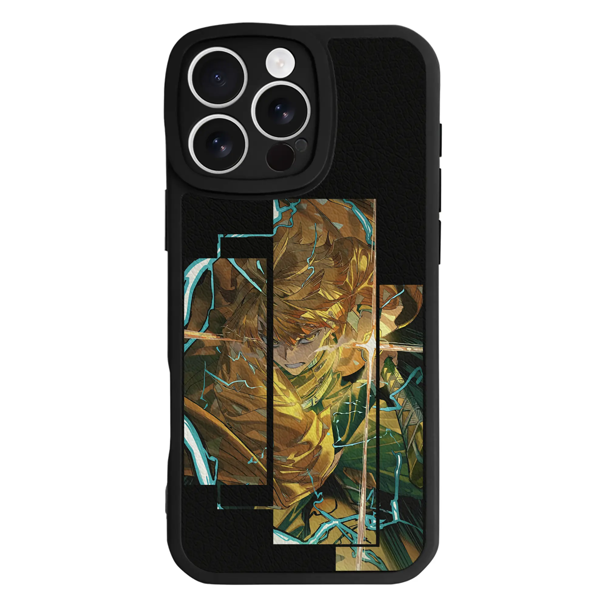 鬼滅の刃 グッズ,我妻 善逸 - IPhone 16シリーズ対応 ・ シリコンスマホケース ・ レザー調 ・ 高精度フィット ・ 耐衝撃 ・ ワイヤレス充電対応 ・ 精密カット