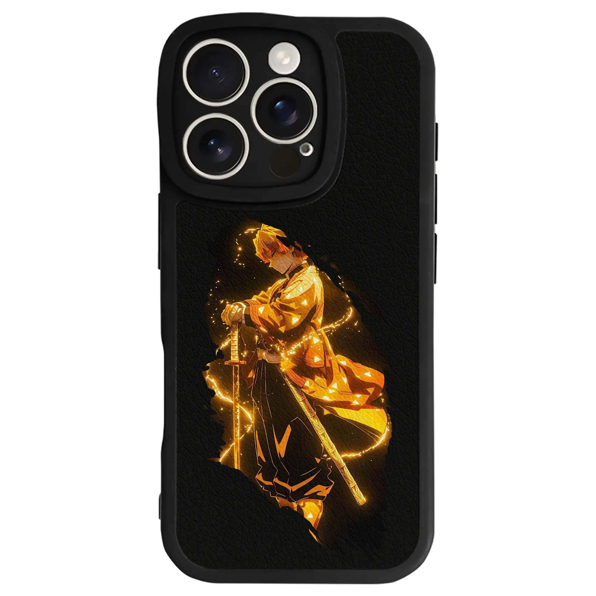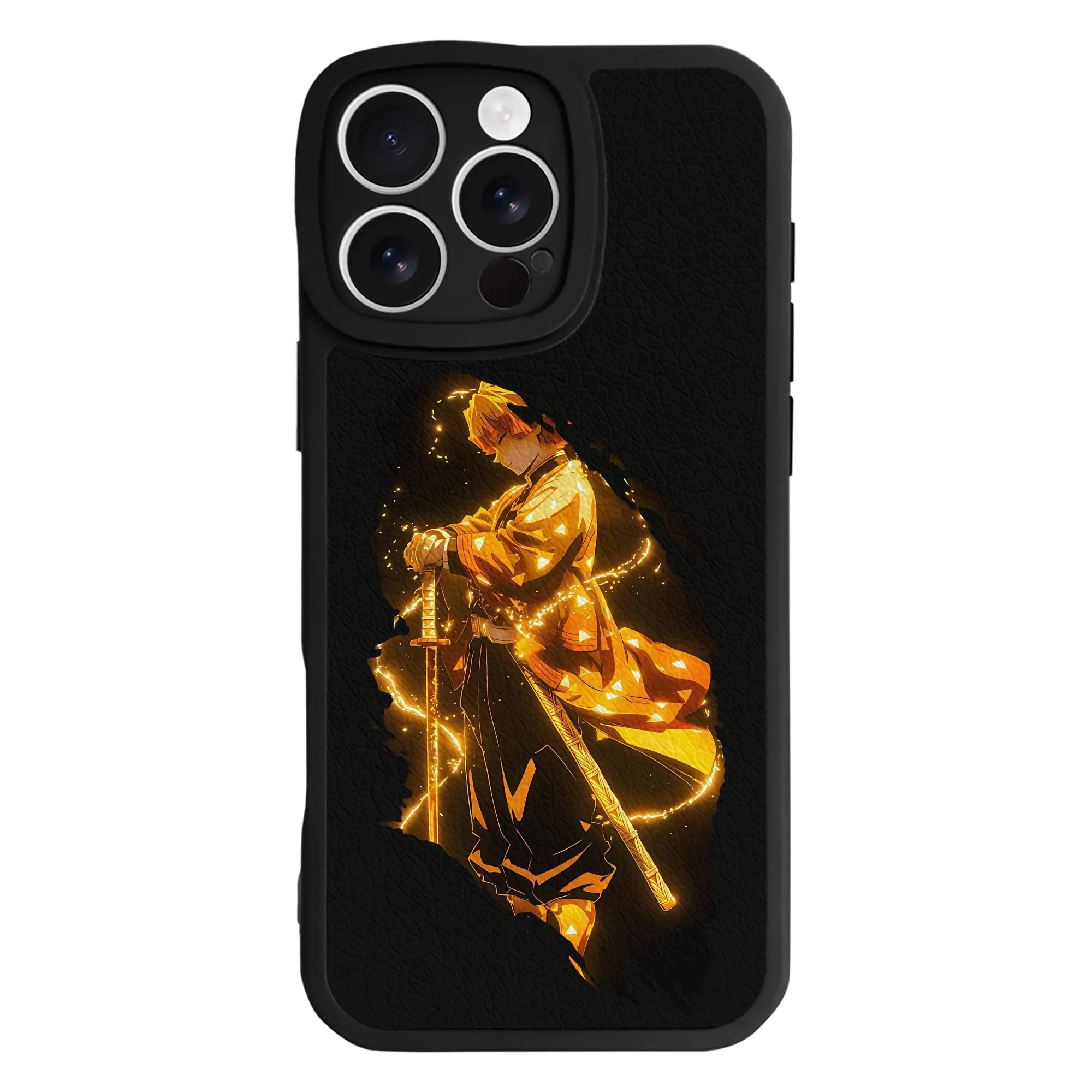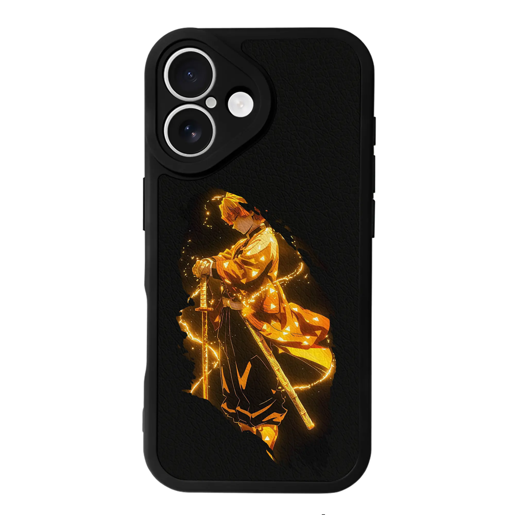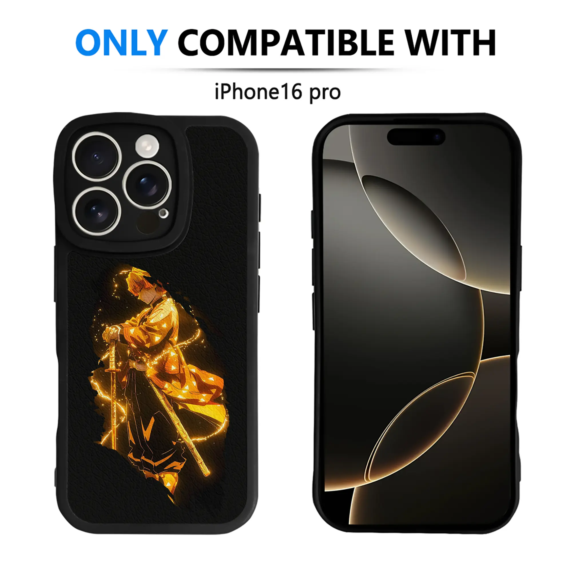 鬼滅の刃 グッズ,我妻 善逸 - IPhone 16シリーズ対応 ・ シリコンスマホケース ・ レザー調 ・ 高精度フィット ・ 耐衝撃 ・ ワイヤレス充電対応 ・ 精密カット