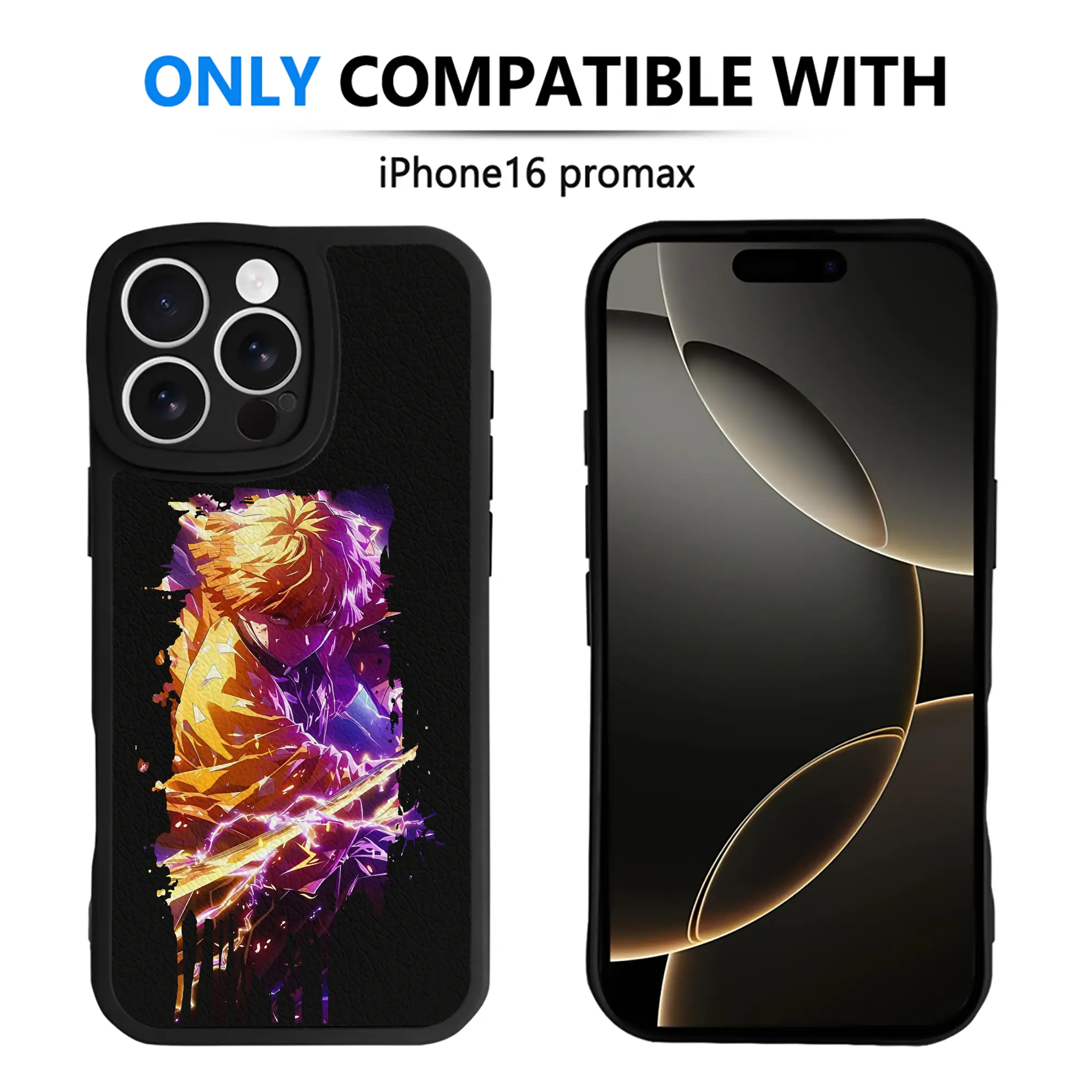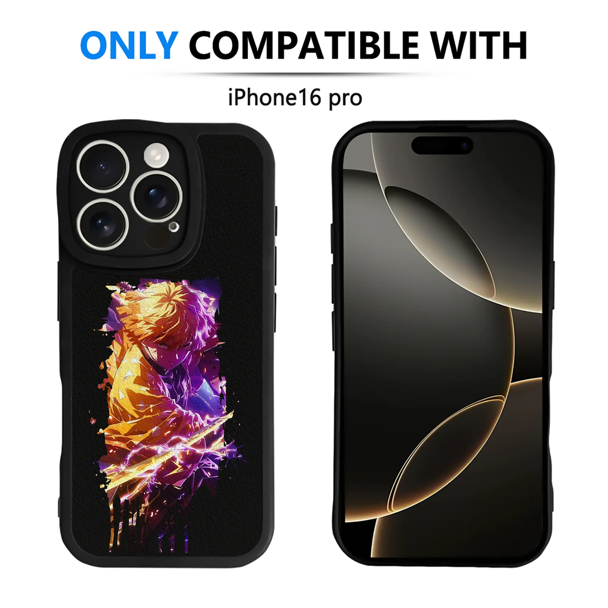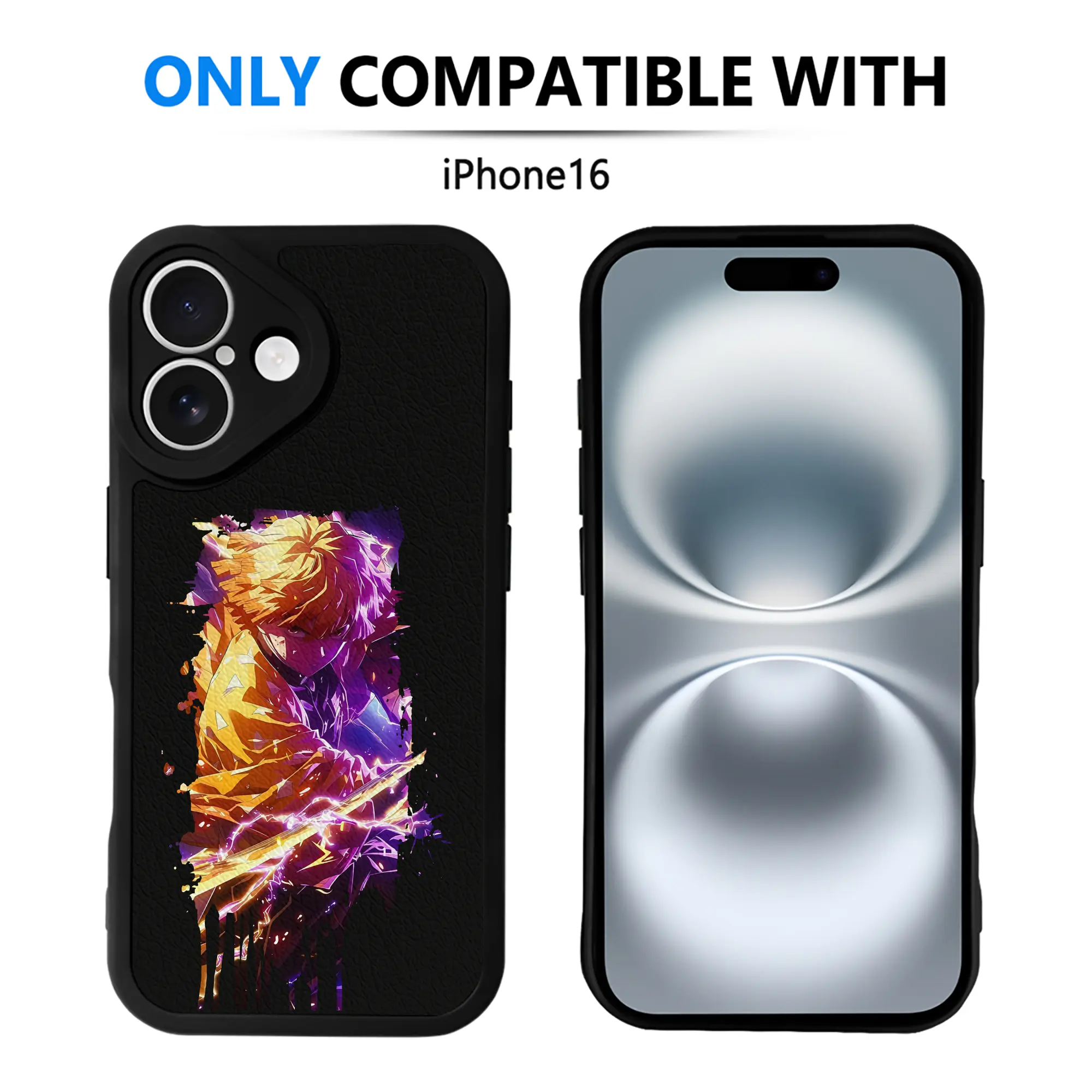 鬼滅の刃 グッズ,我妻 善逸 - IPhone 16シリーズ対応 ・ シリコンスマホケース ・ レザー調 ・ 高精度フィット ・ 耐衝撃 ・ ワイヤレス充電対応 ・ 精密カット