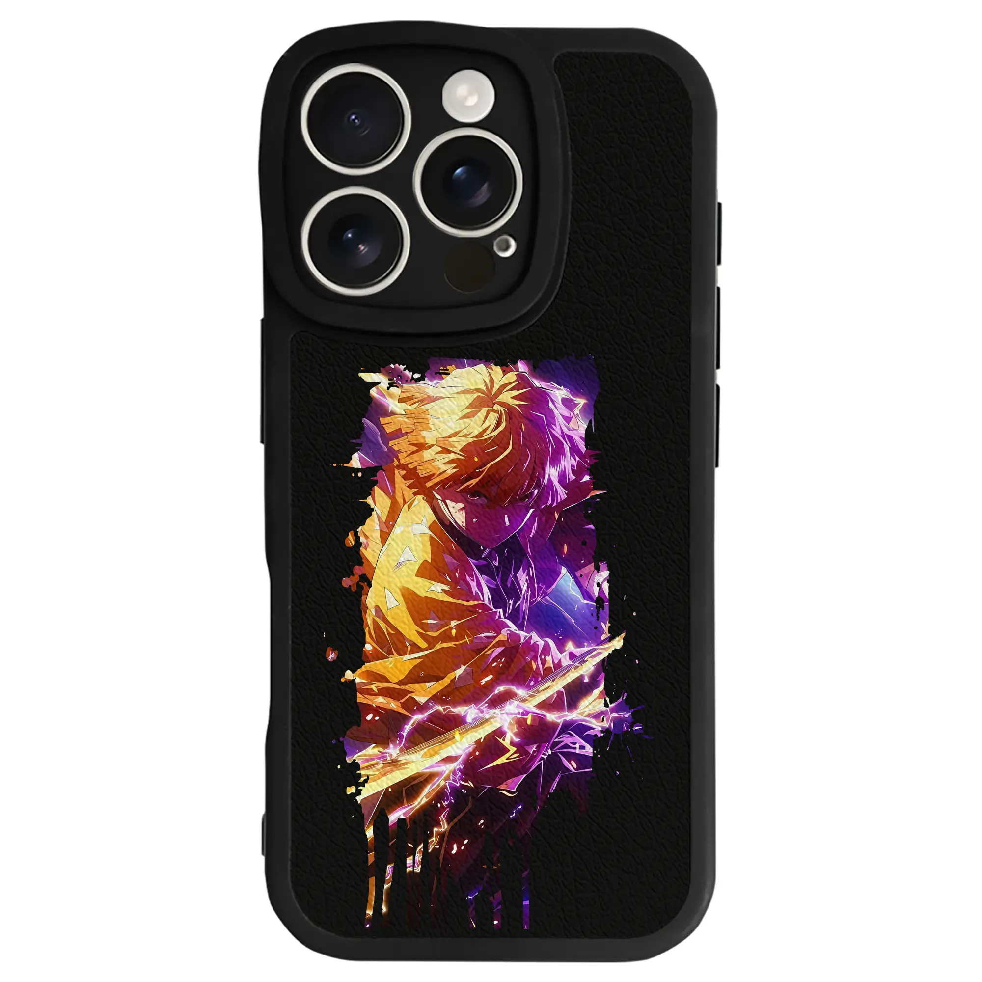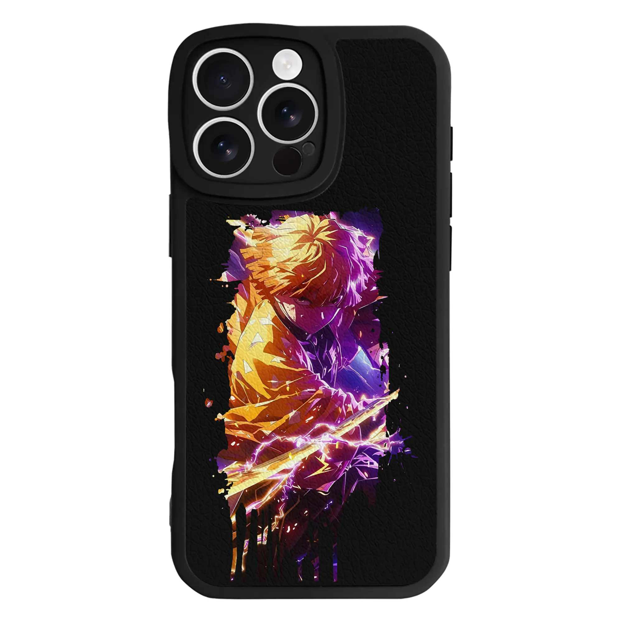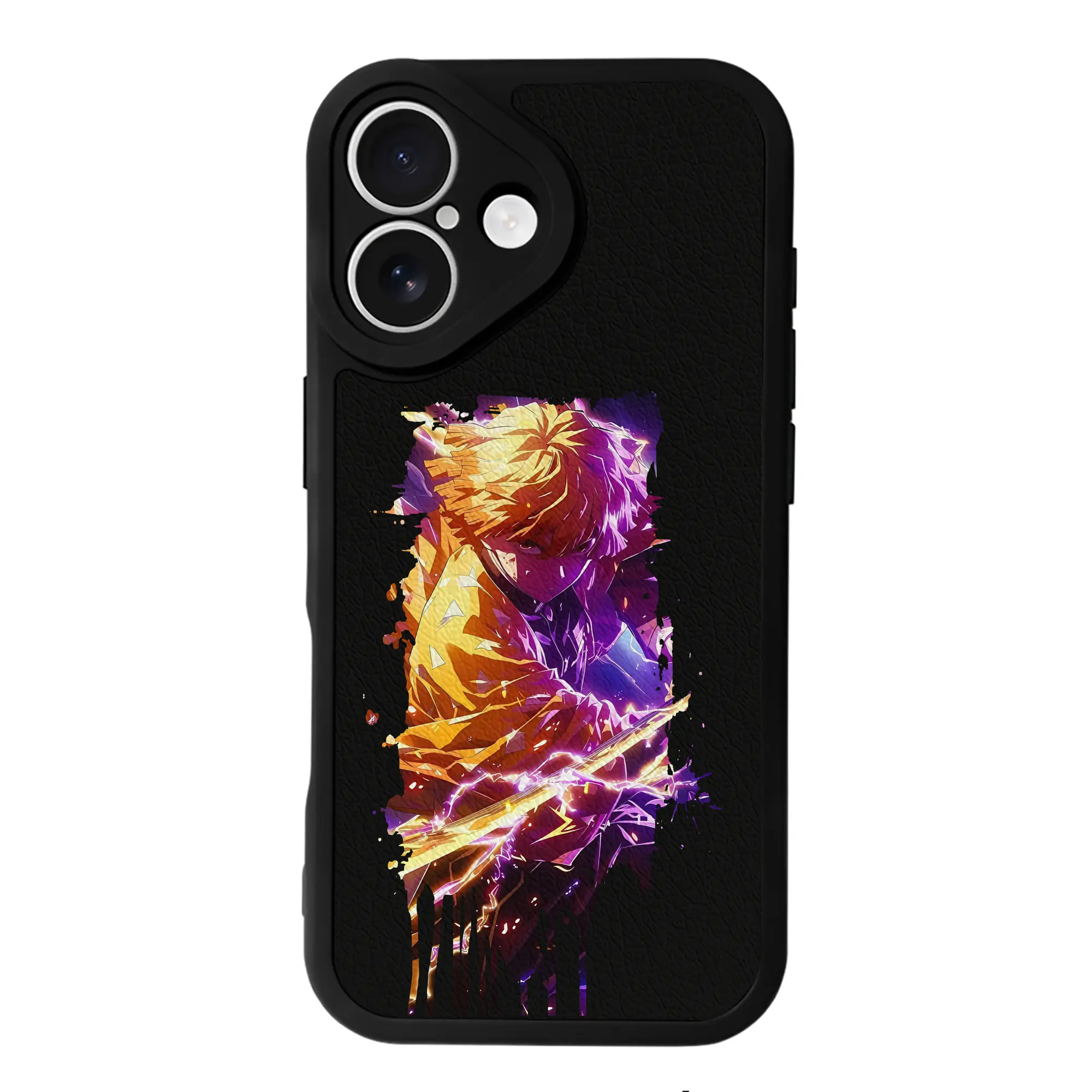 鬼滅の刃 グッズ,我妻 善逸 - IPhone 16シリーズ対応 ・ シリコンスマホケース ・ レザー調 ・ 高精度フィット ・ 耐衝撃 ・ ワイヤレス充電対応 ・ 精密カット