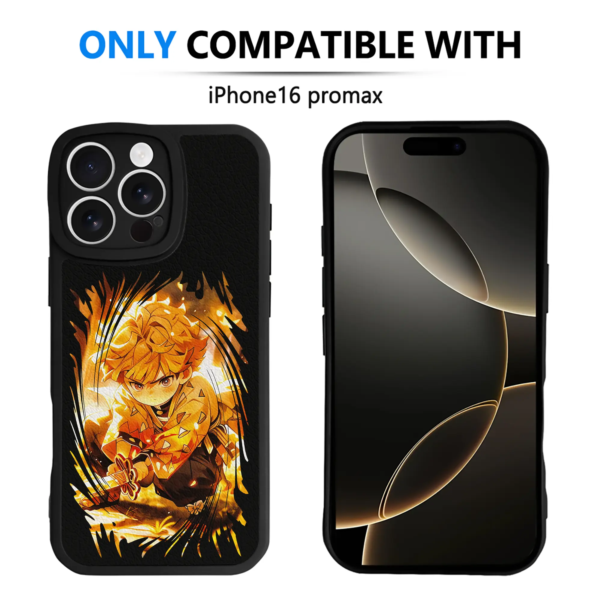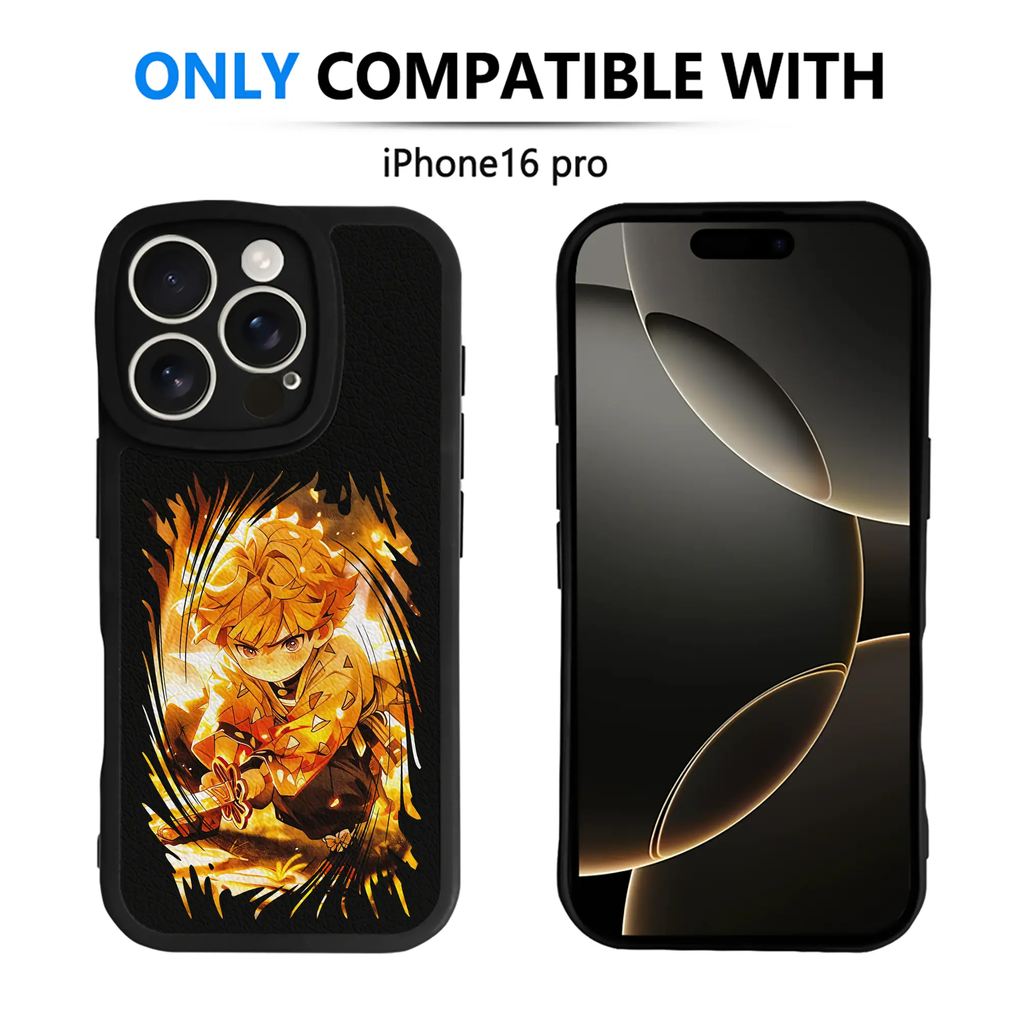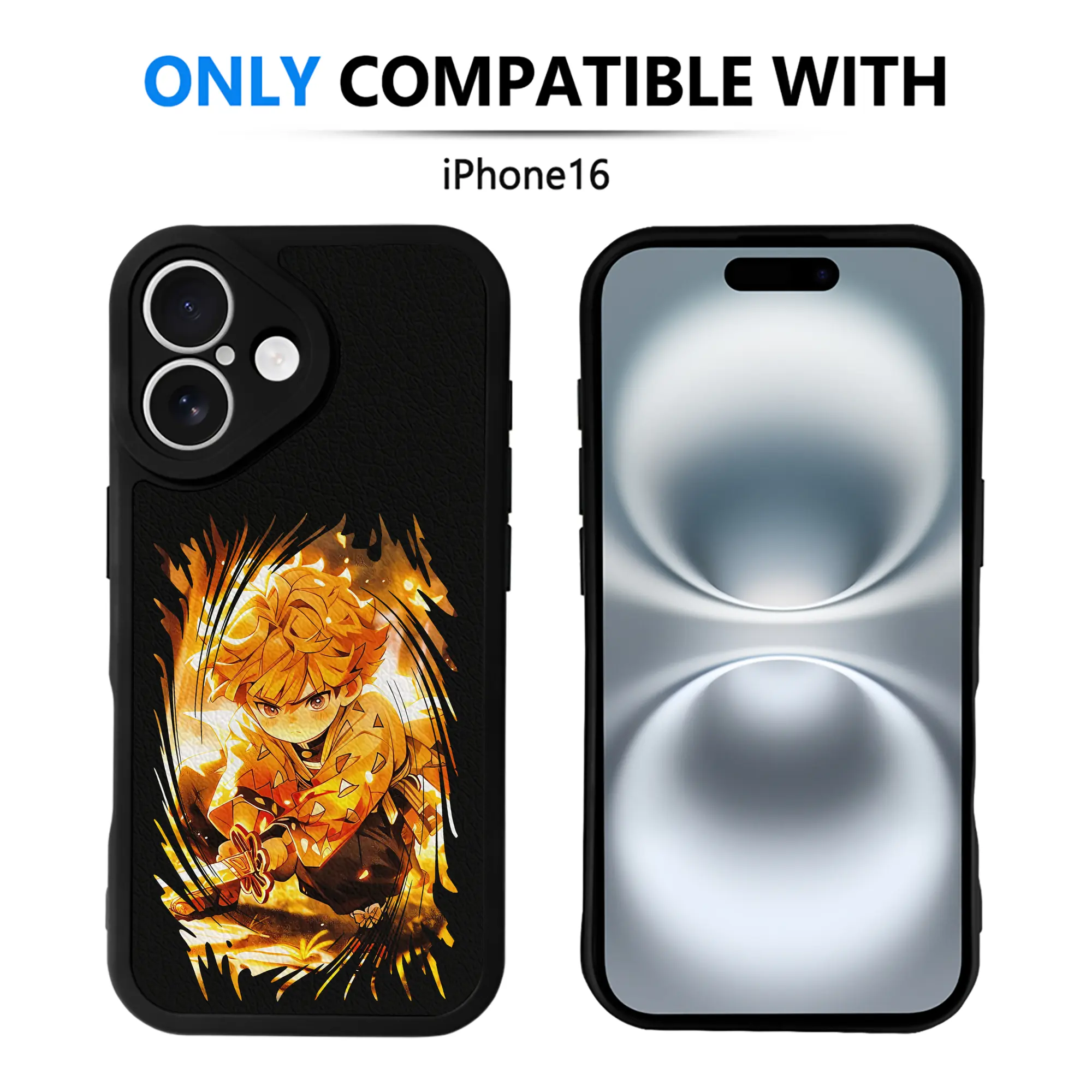 鬼滅の刃 グッズ,我妻 善逸 - IPhone 16シリーズ対応 ・ シリコンスマホケース ・ レザー調 ・ 高精度フィット ・ 耐衝撃 ・ ワイヤレス充電対応 ・ 精密カット