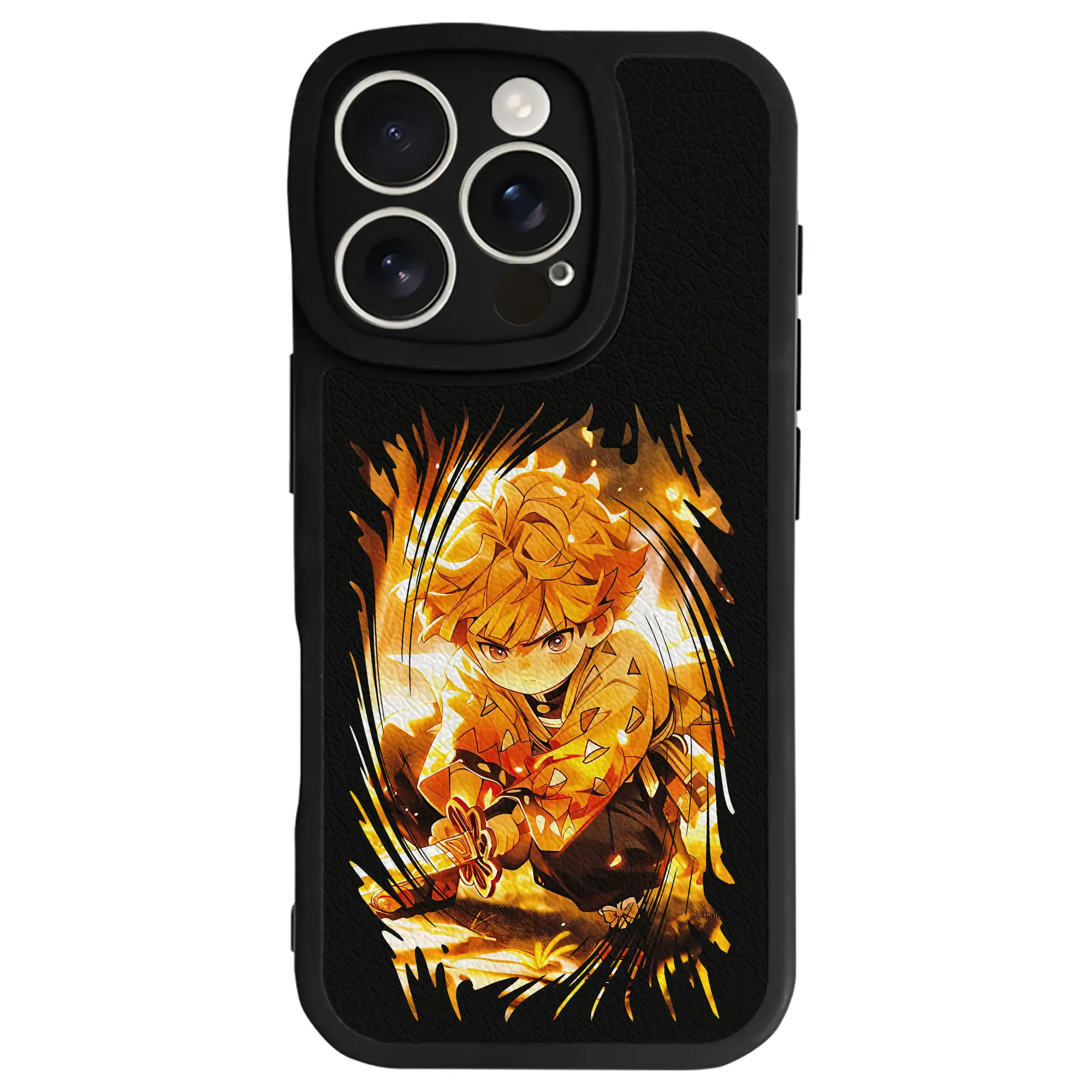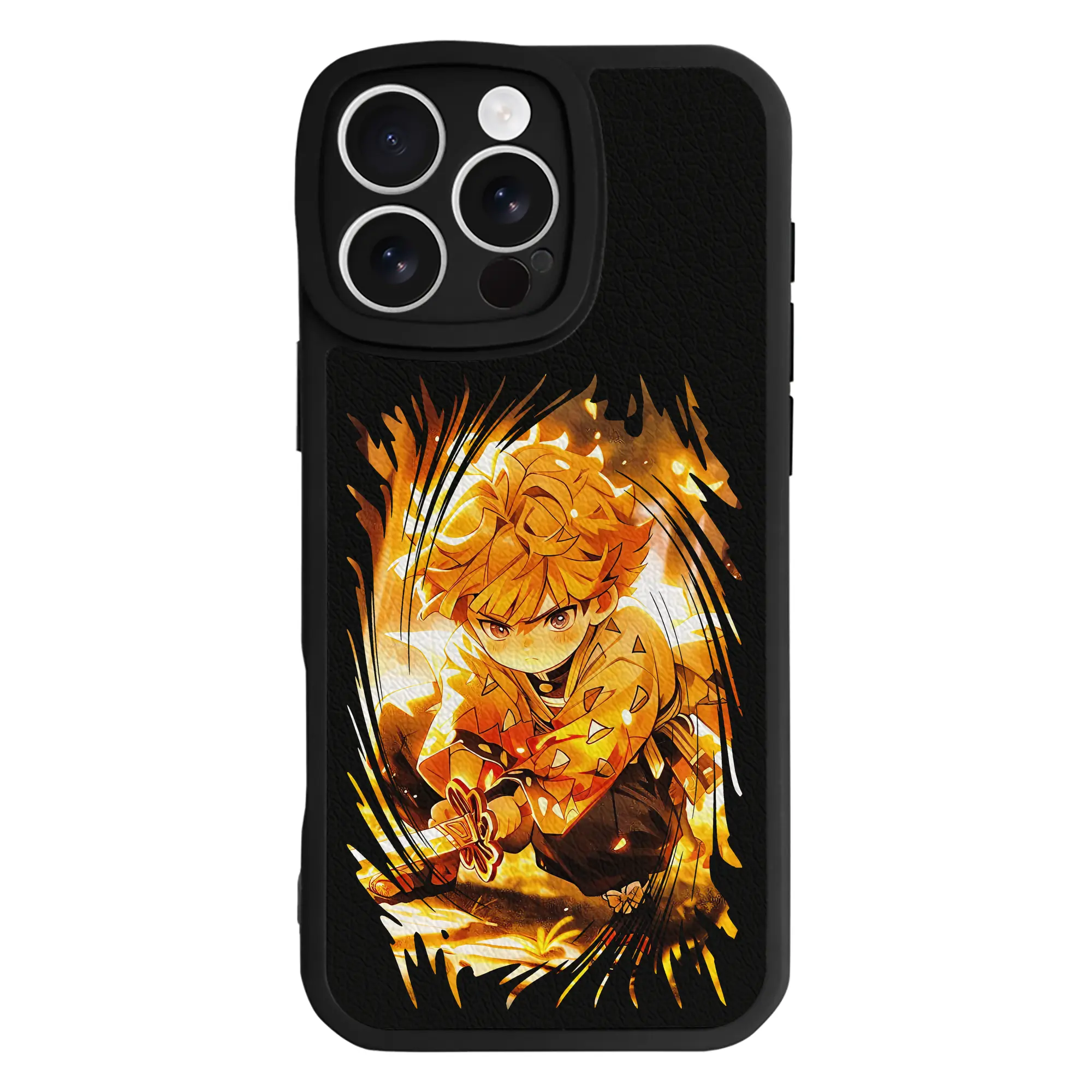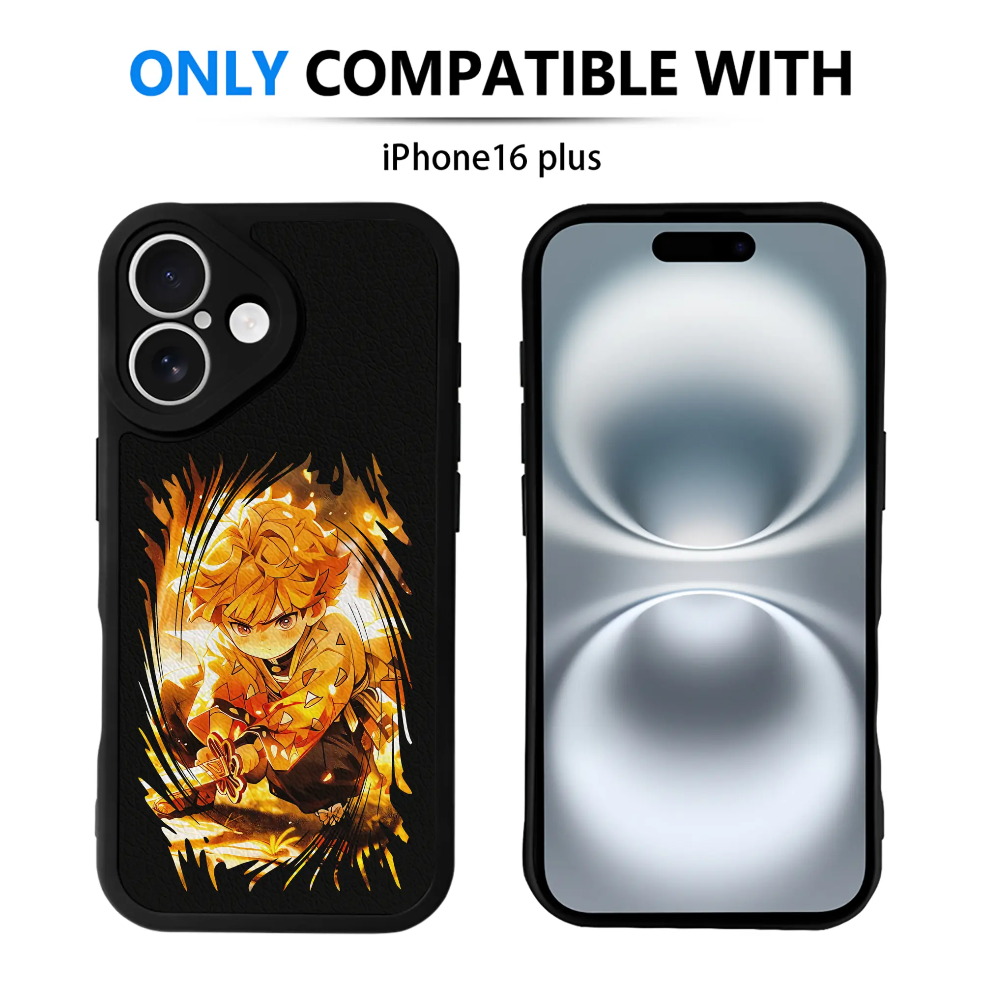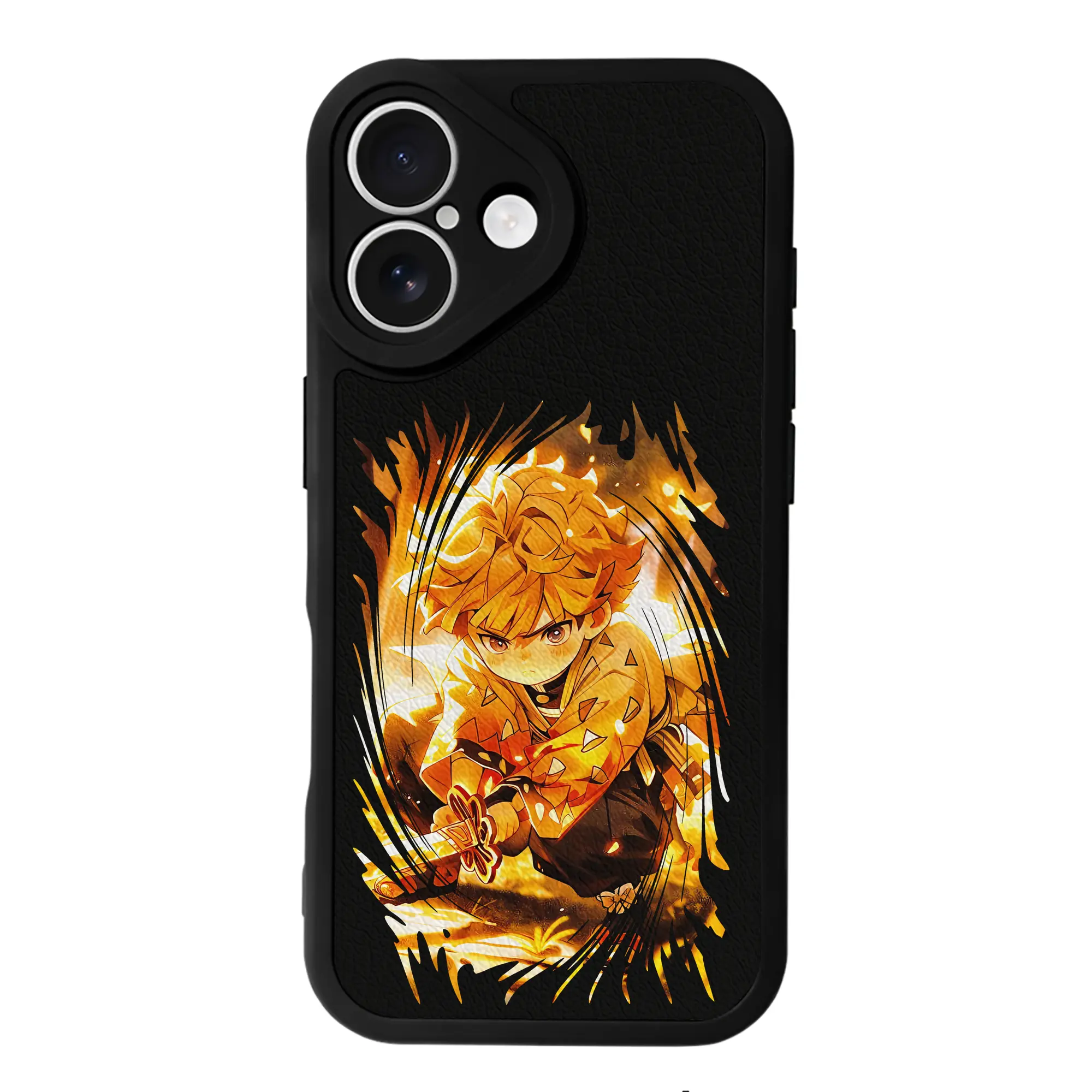 鬼滅の刃 グッズ,我妻 善逸 - IPhone 16シリーズ対応 ・ シリコンスマホケース ・ レザー調 ・ 高精度フィット ・ 耐衝撃 ・ ワイヤレス充電対応 ・ 精密カット