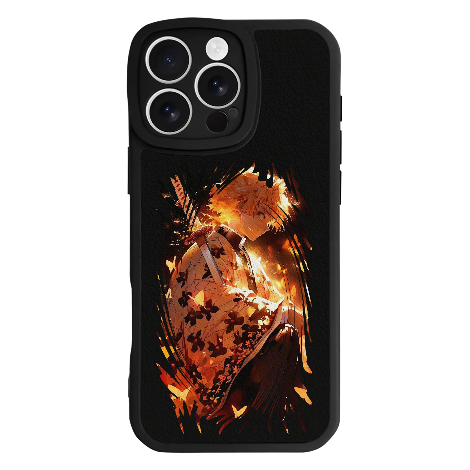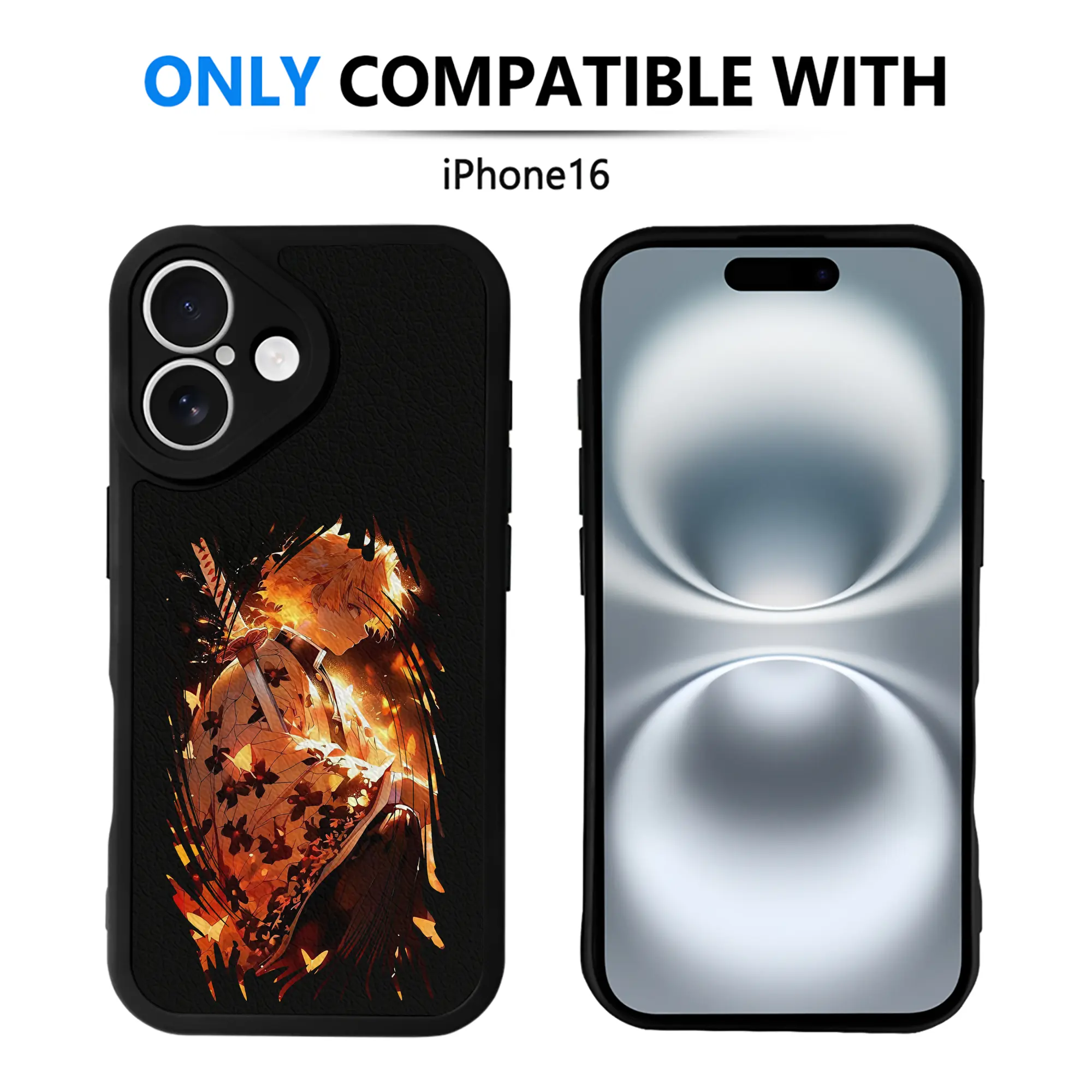 鬼滅の刃 グッズ,我妻 善逸 - IPhone 16シリーズ対応 ・ シリコンスマホケース ・ レザー調 ・ 高精度フィット ・ 耐衝撃 ・ ワイヤレス充電対応 ・ 精密カット