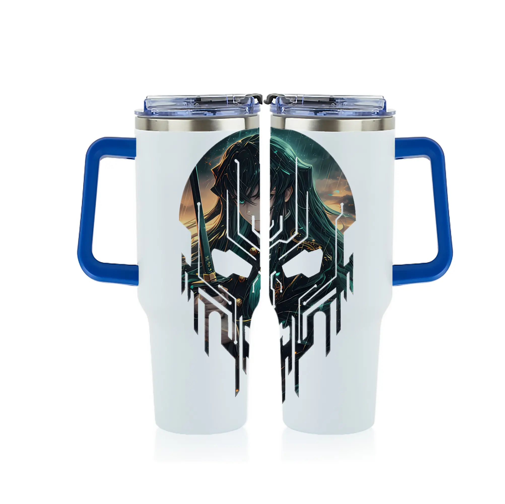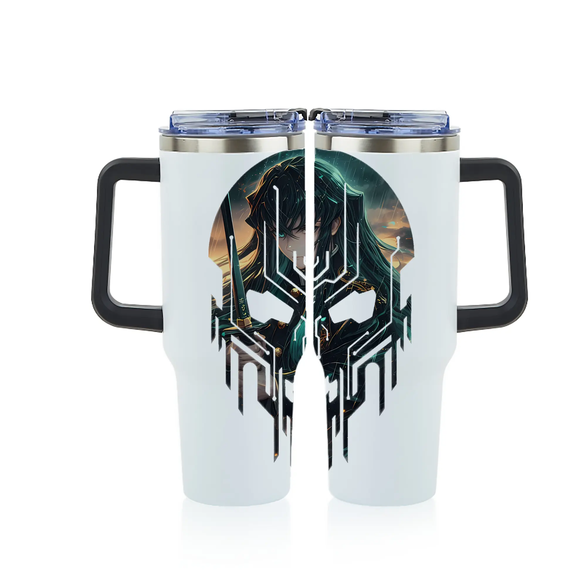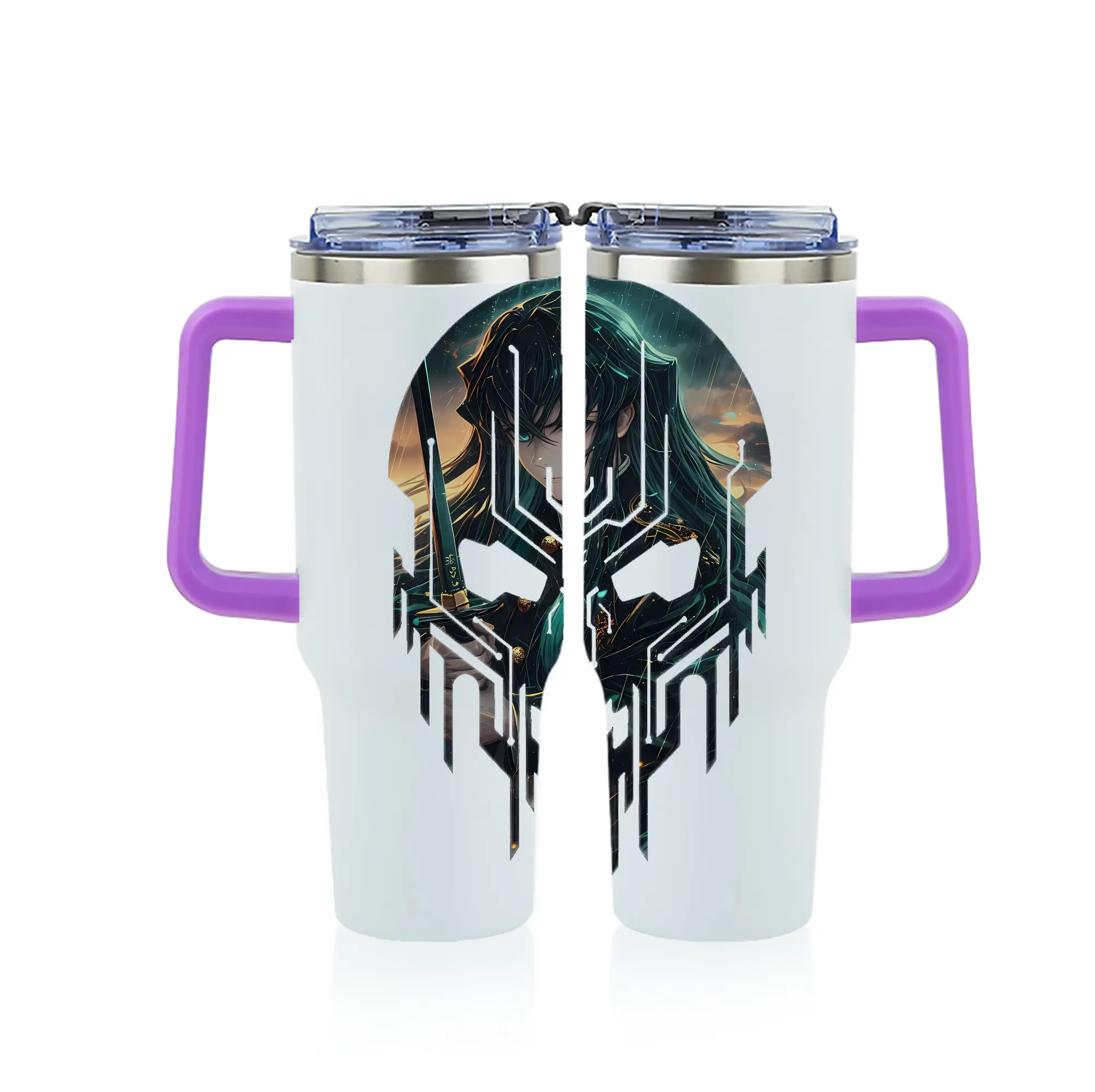 鬼滅の刃 グッズ,時透 無一郎 - 1200mL フルプリント車用タンブラー ・ 304ステンレス 内側 ・ 201ステンレス 外側 ・ 保温 保冷 ・ 通勤 ドライブ アウトドア用