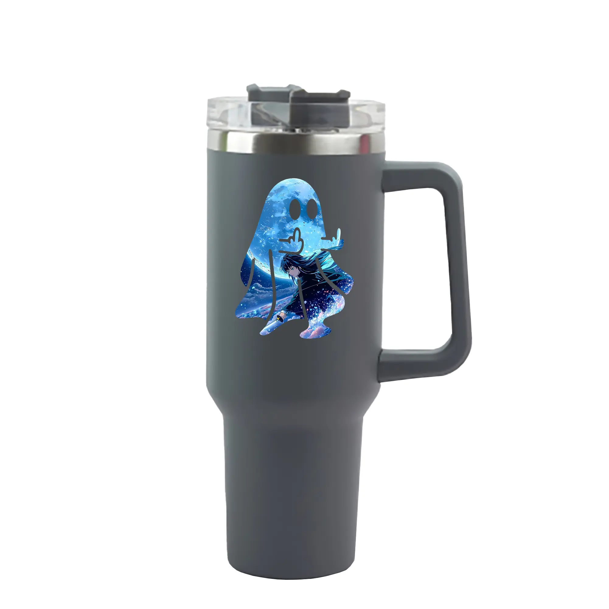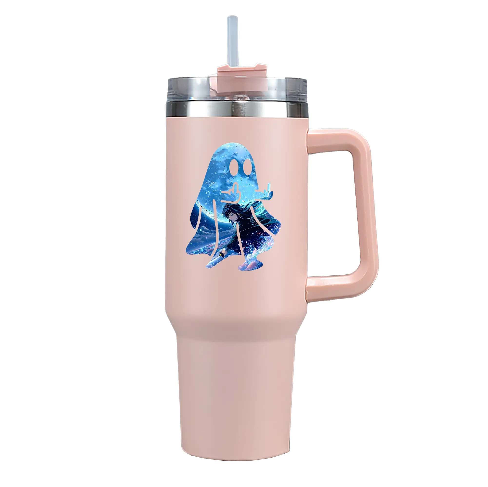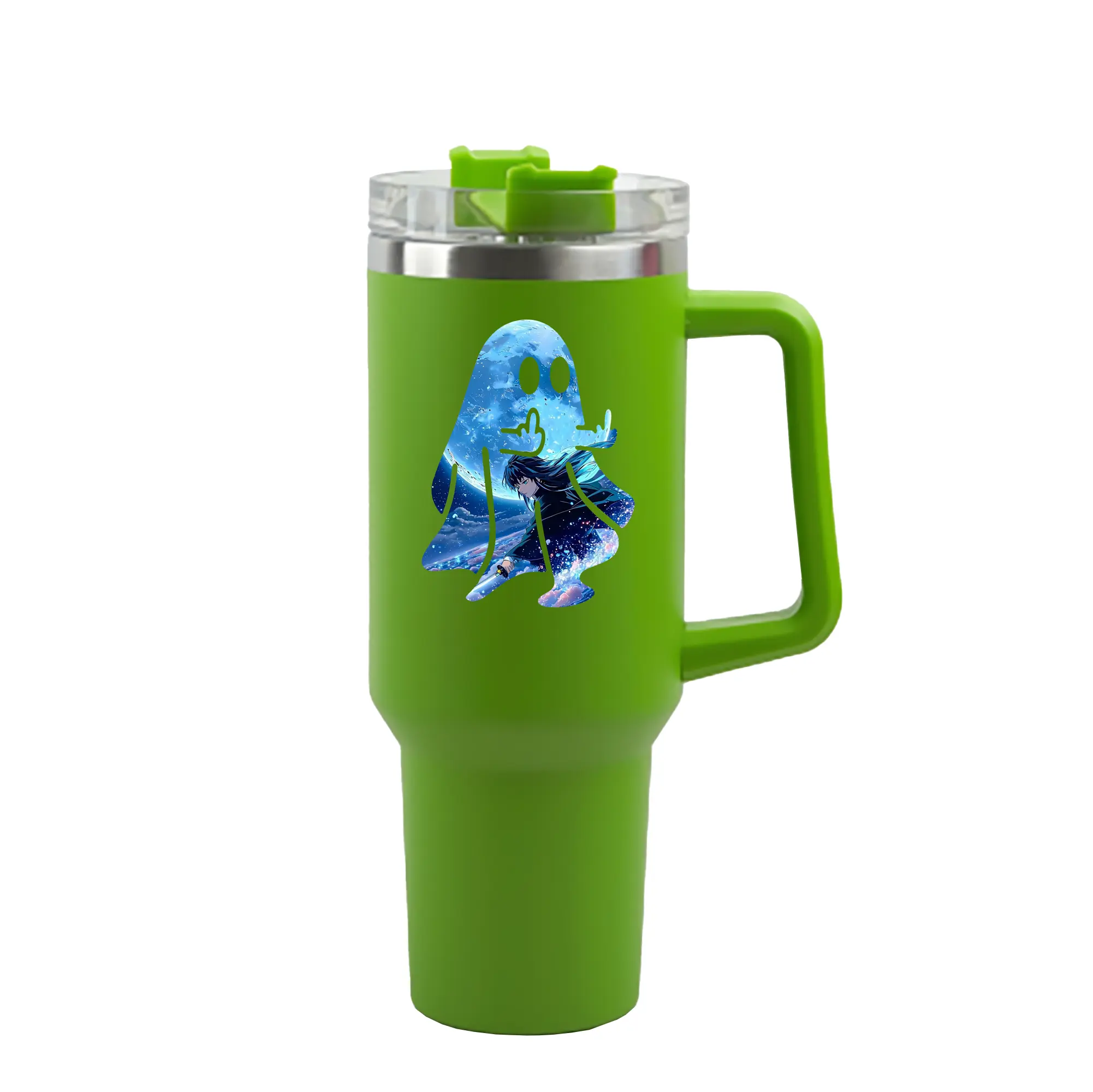 鬼滅の刃 グッズ,時透 無一郎 - 1200mL 車用タンブラー ・ クリスタルステッカー ・ 304ステンレス 内側 ・ 201ステンレス 外側 ・ 保温 保冷 ・ ハンドル&ストロー付き ・ 通勤 ドライブ アウトドア用