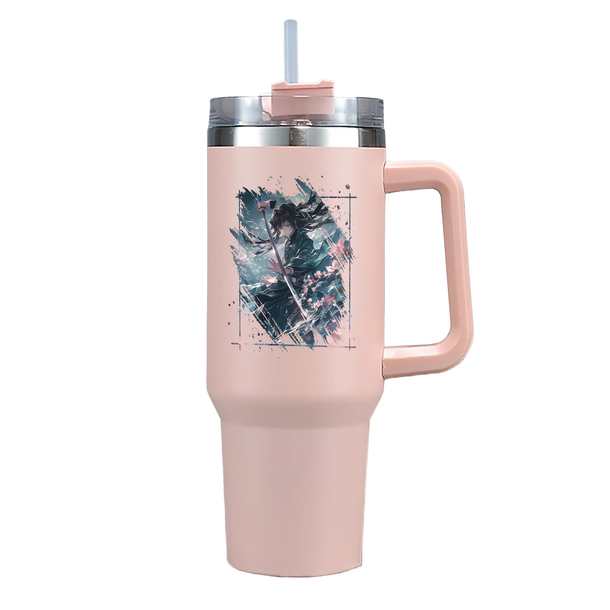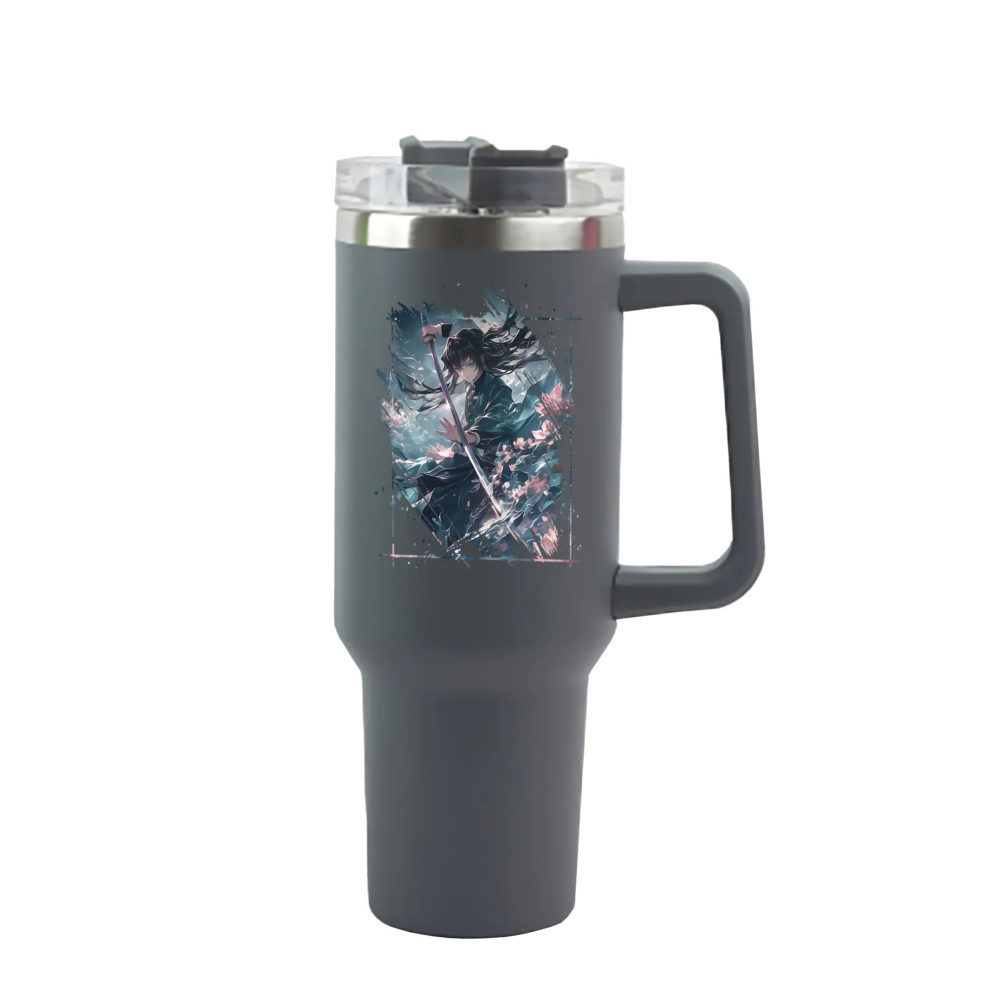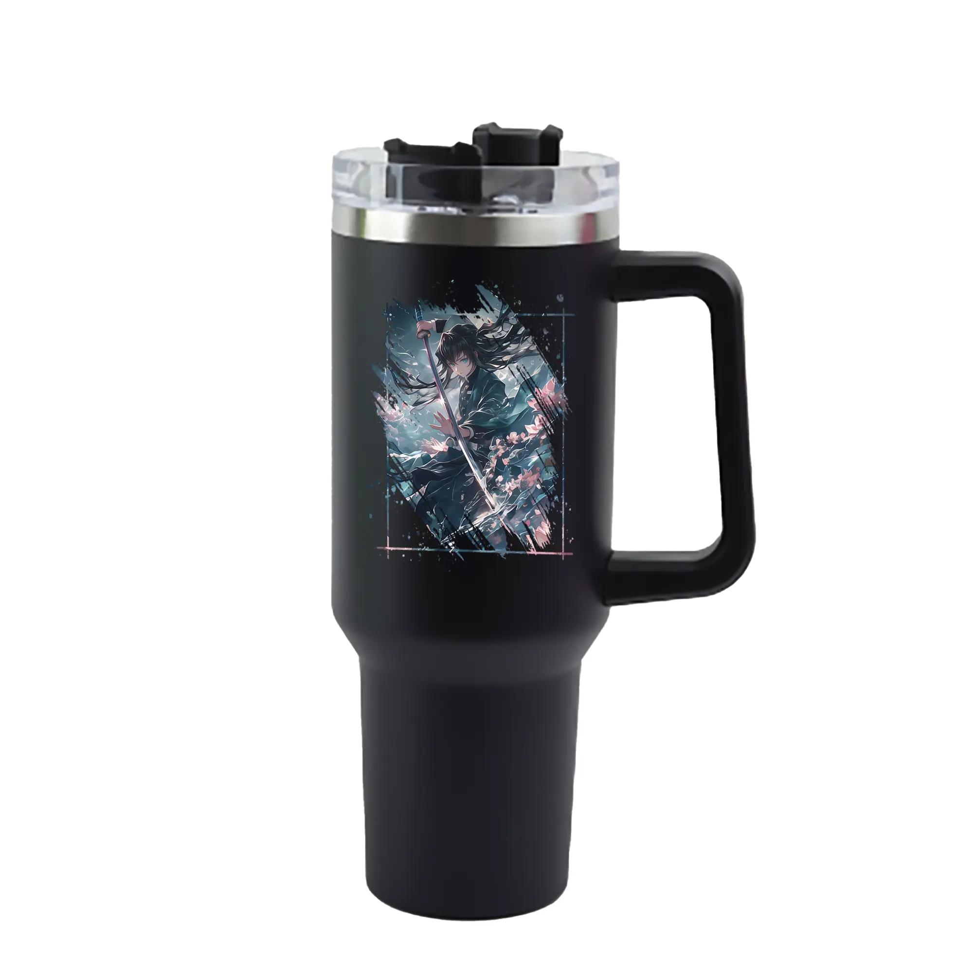 鬼滅の刃 グッズ,時透 無一郎 - 1200mL 車用タンブラー ・ クリスタルステッカー ・ 304ステンレス 内側 ・ 201ステンレス 外側 ・ 保温 保冷 ・ ハンドル&ストロー付き ・ 通勤 ドライブ アウトドア用