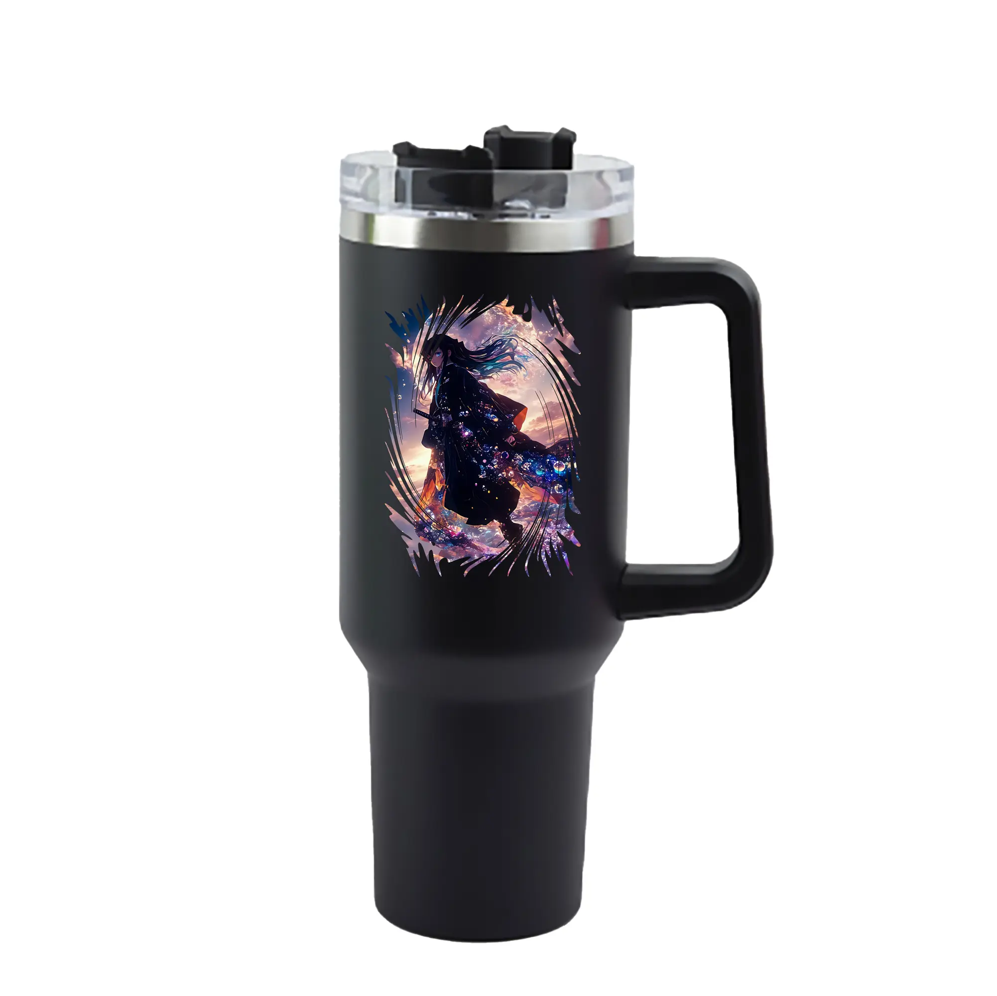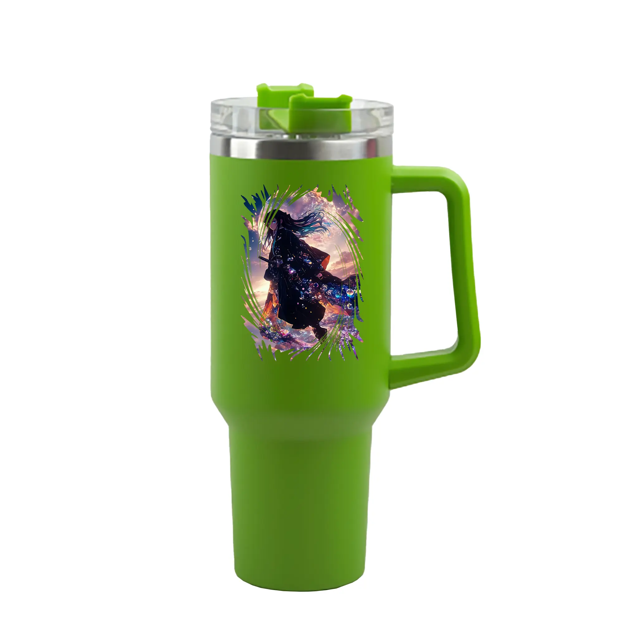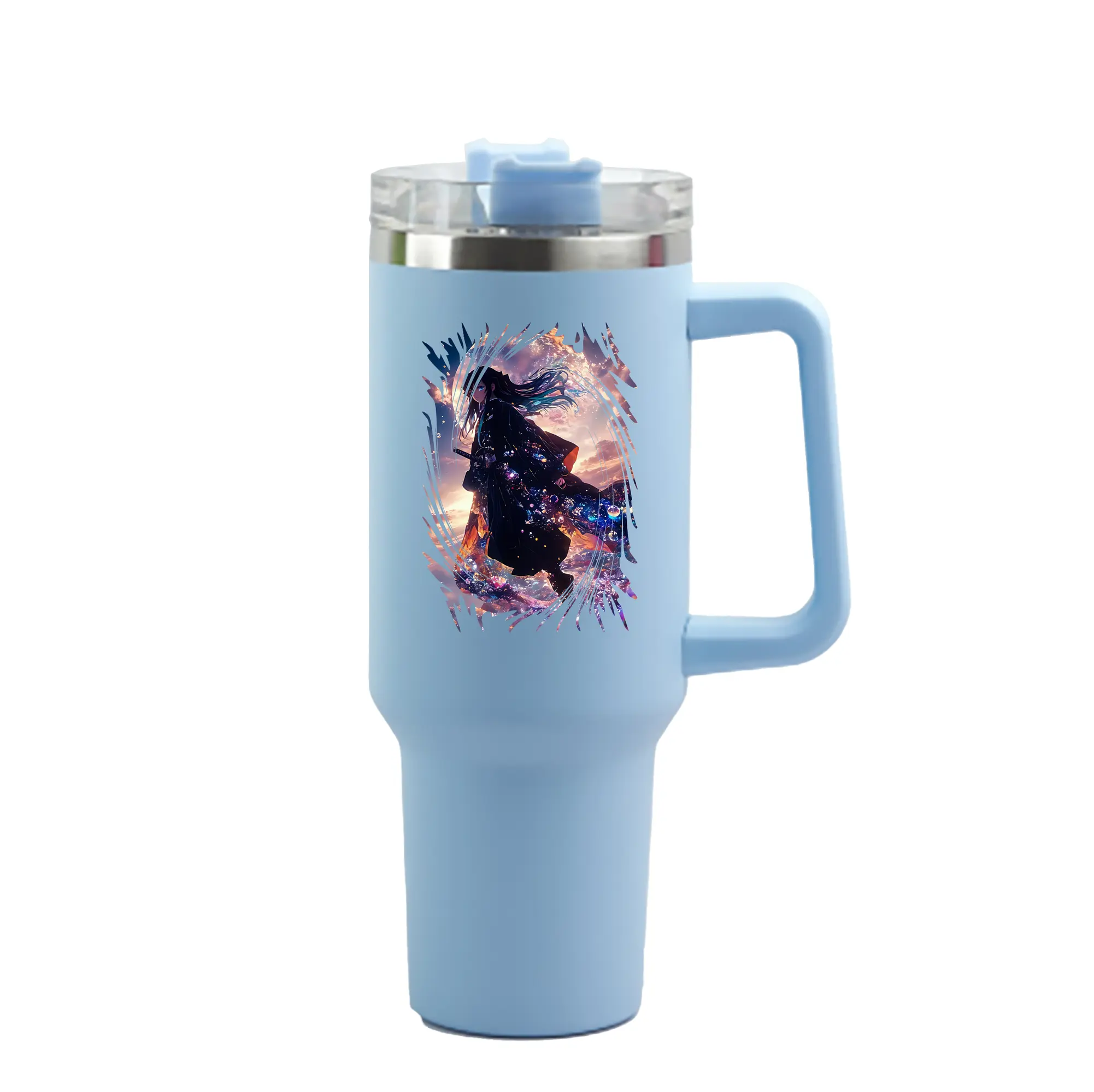 鬼滅の刃 グッズ,時透 無一郎 - 1200mL 車用タンブラー ・ クリスタルステッカー ・ 304ステンレス 内側 ・ 201ステンレス 外側 ・ 保温 保冷 ・ ハンドル&ストロー付き ・ 通勤 ドライブ アウトドア用