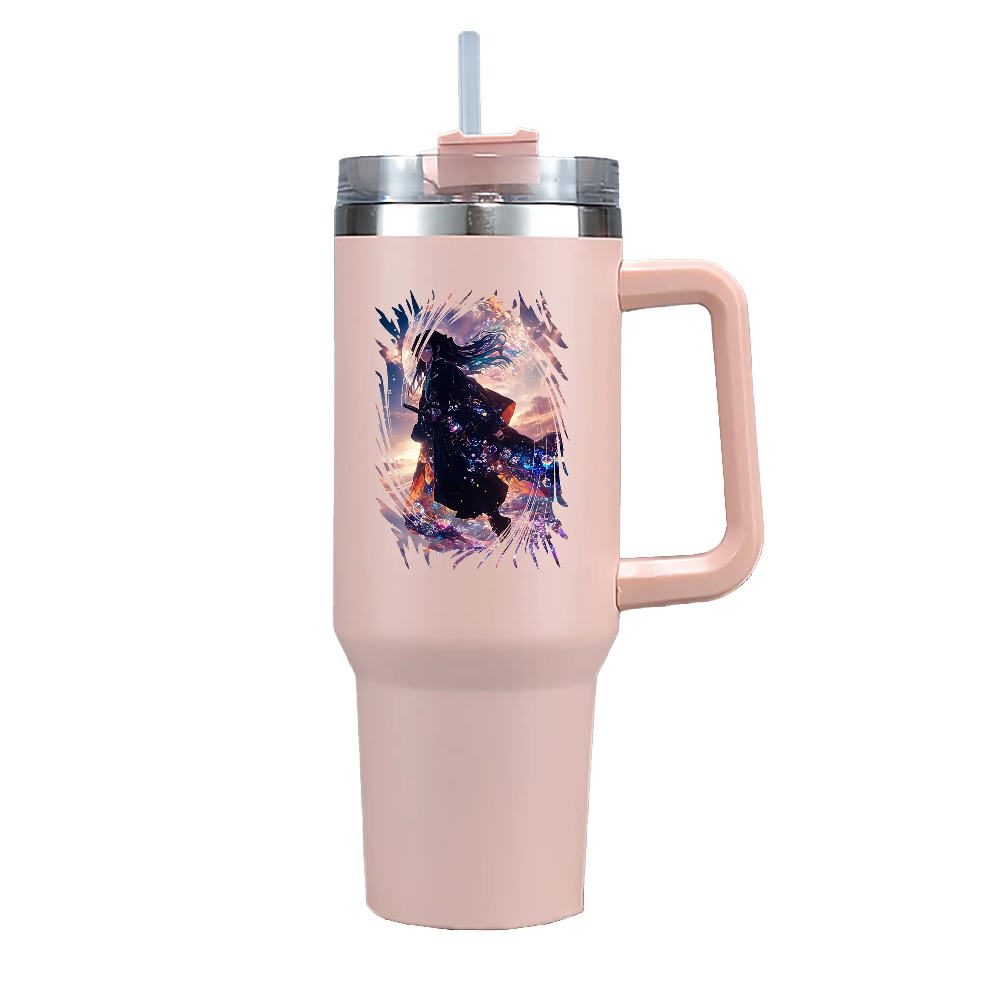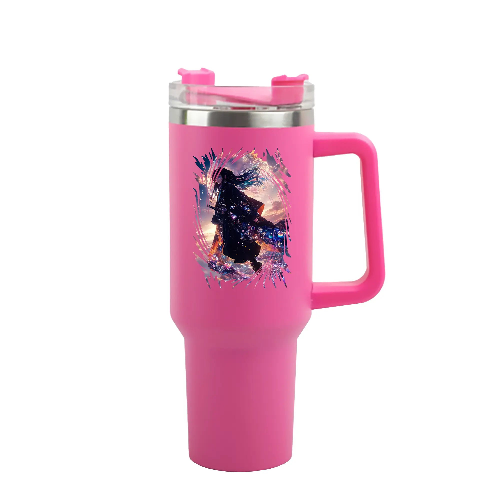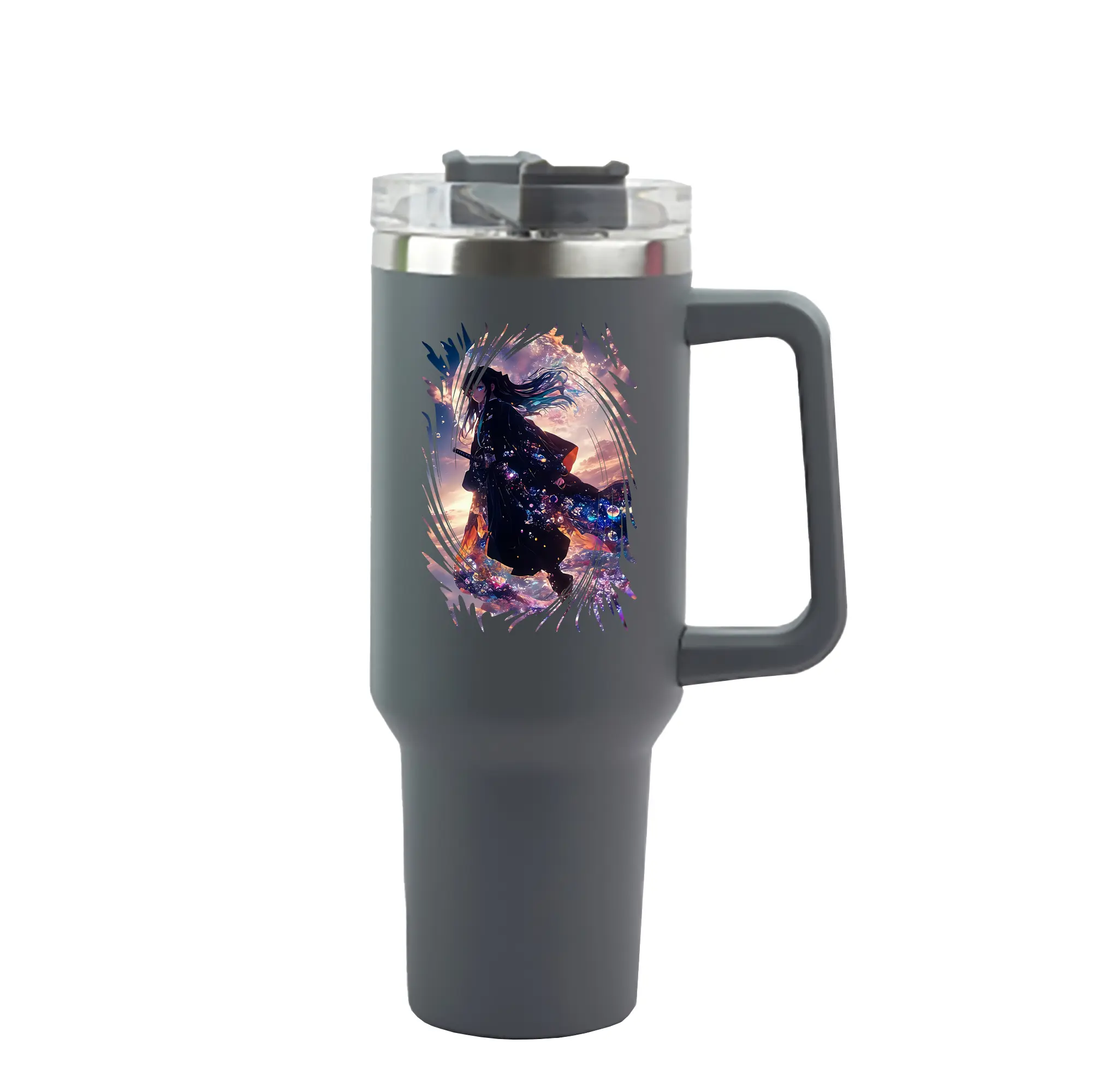 鬼滅の刃 グッズ,時透 無一郎 - 1200mL 車用タンブラー ・ クリスタルステッカー ・ 304ステンレス 内側 ・ 201ステンレス 外側 ・ 保温 保冷 ・ ハンドル&ストロー付き ・ 通勤 ドライブ アウトドア用