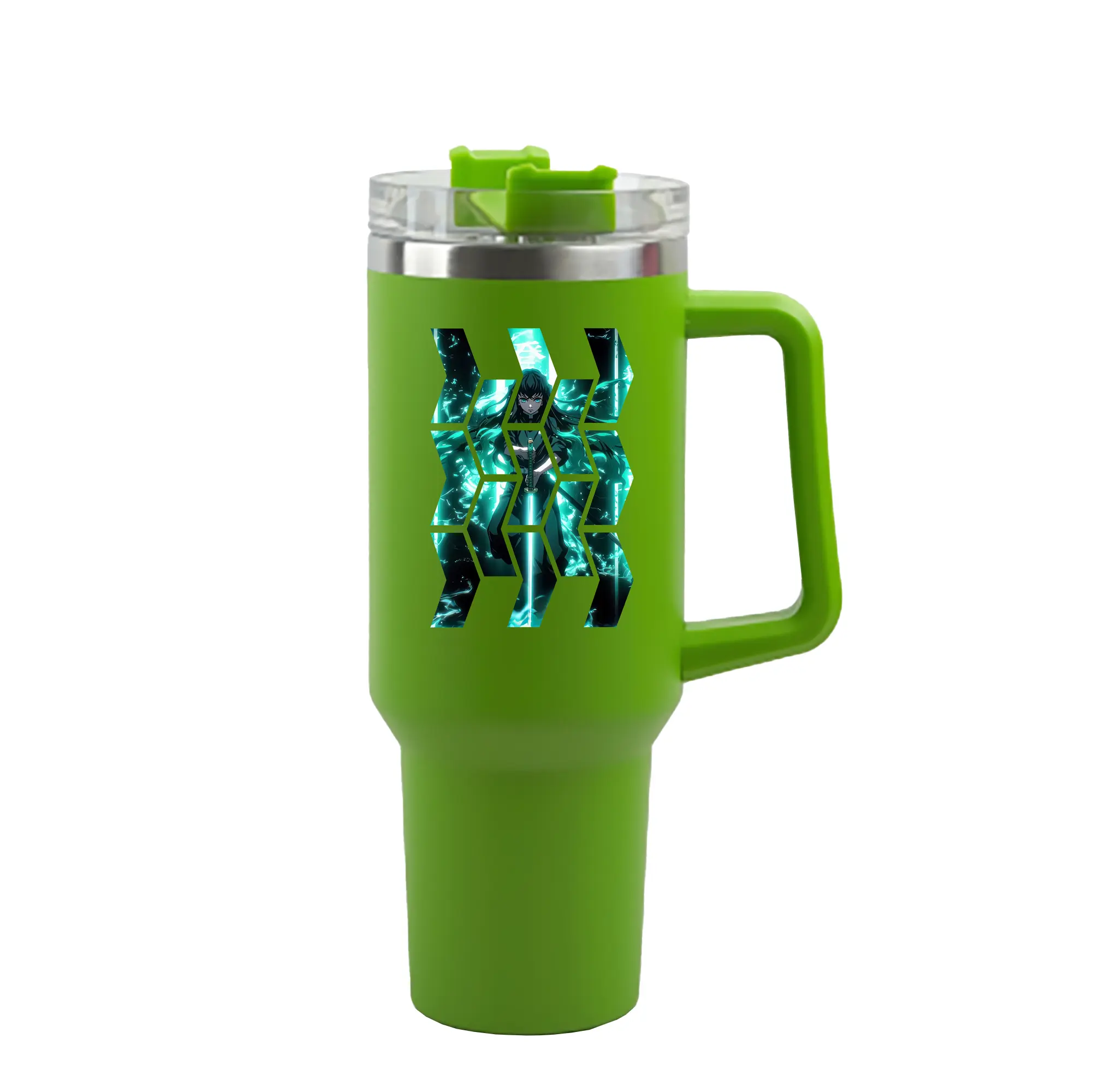 鬼滅の刃 グッズ,時透 無一郎 - 1200mL 車用タンブラー ・ クリスタルステッカー ・ 304ステンレス 内側 ・ 201ステンレス 外側 ・ 保温 保冷 ・ ハンドル&ストロー付き ・ 通勤 ドライブ アウトドア用