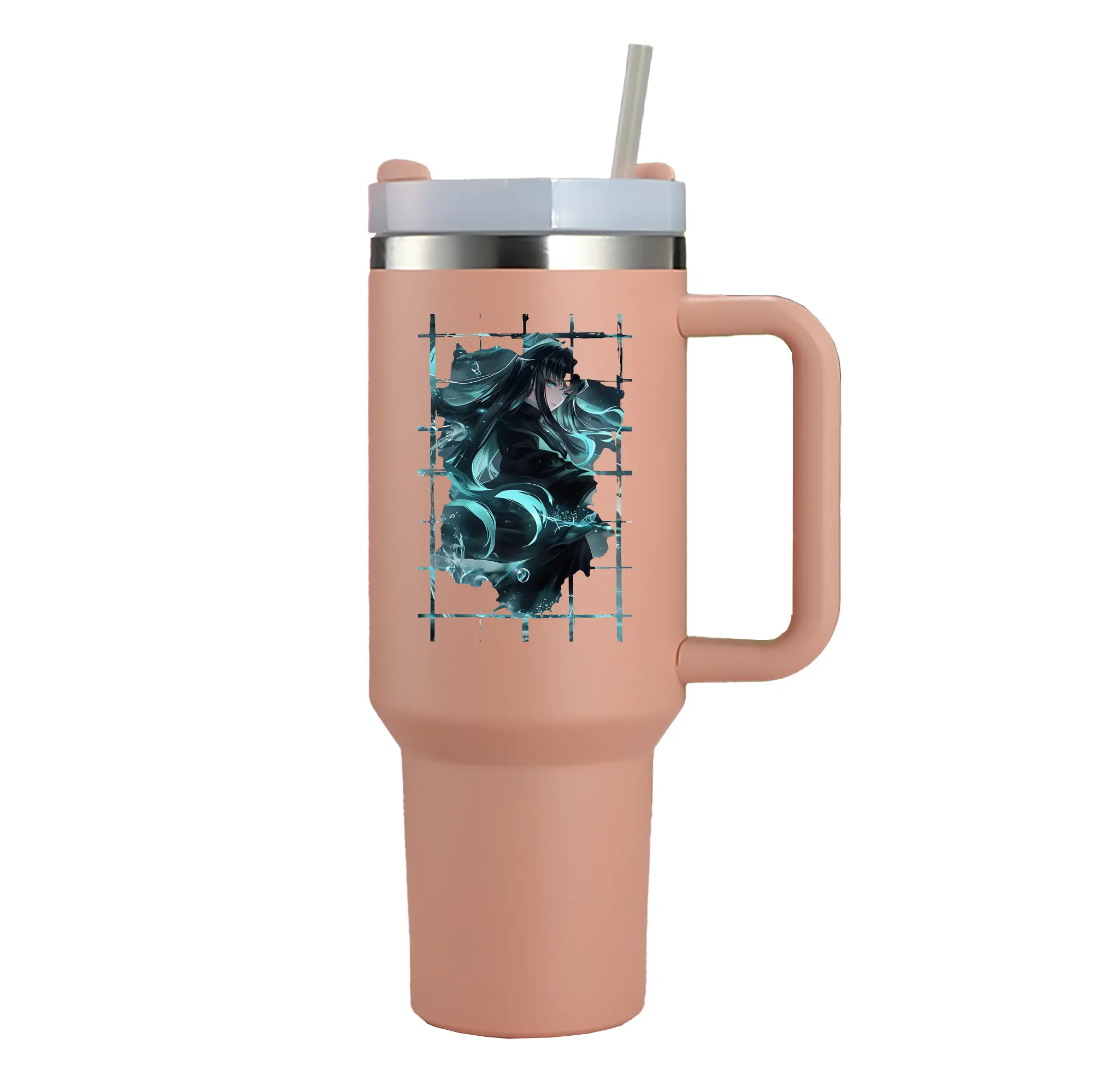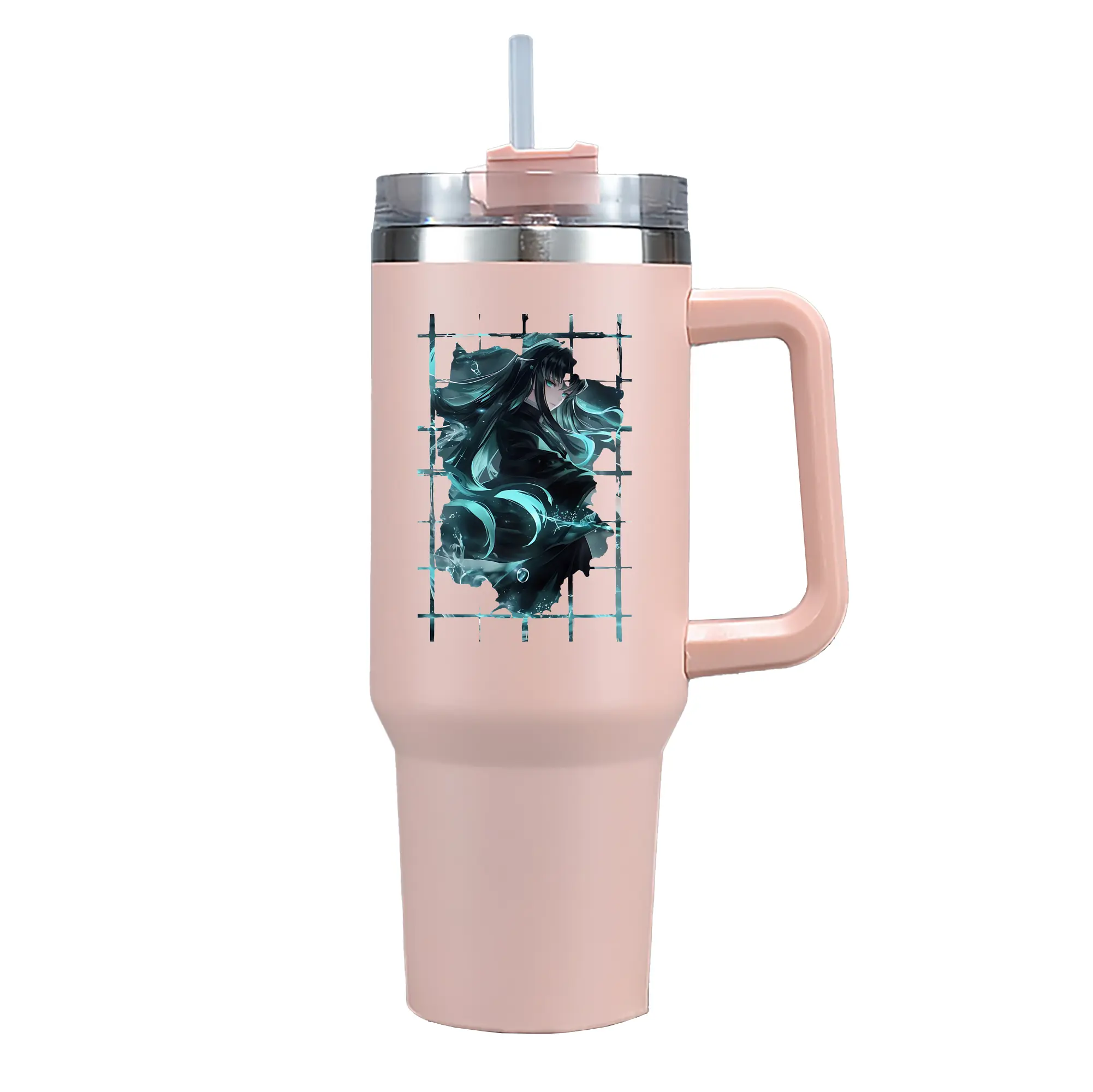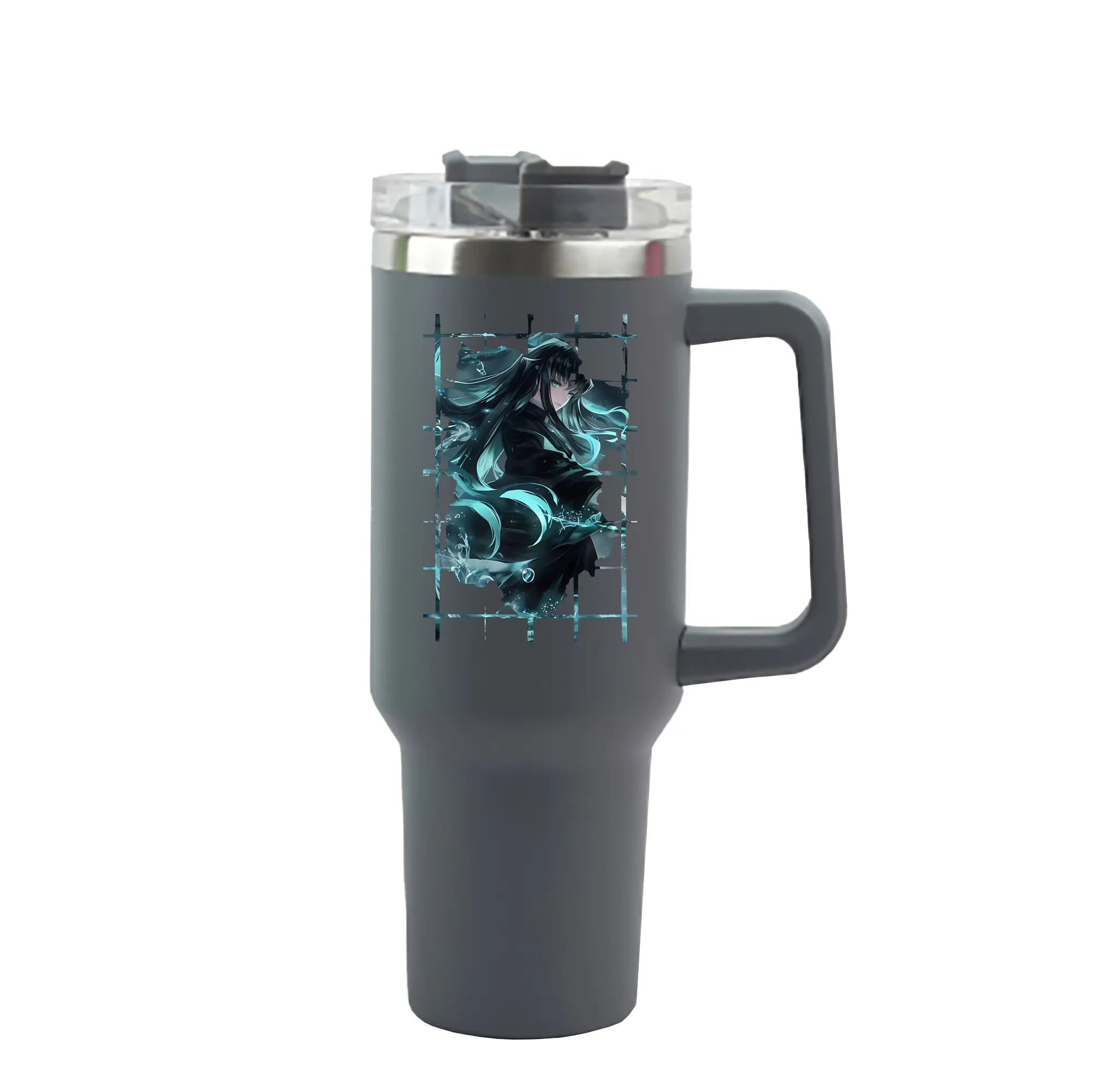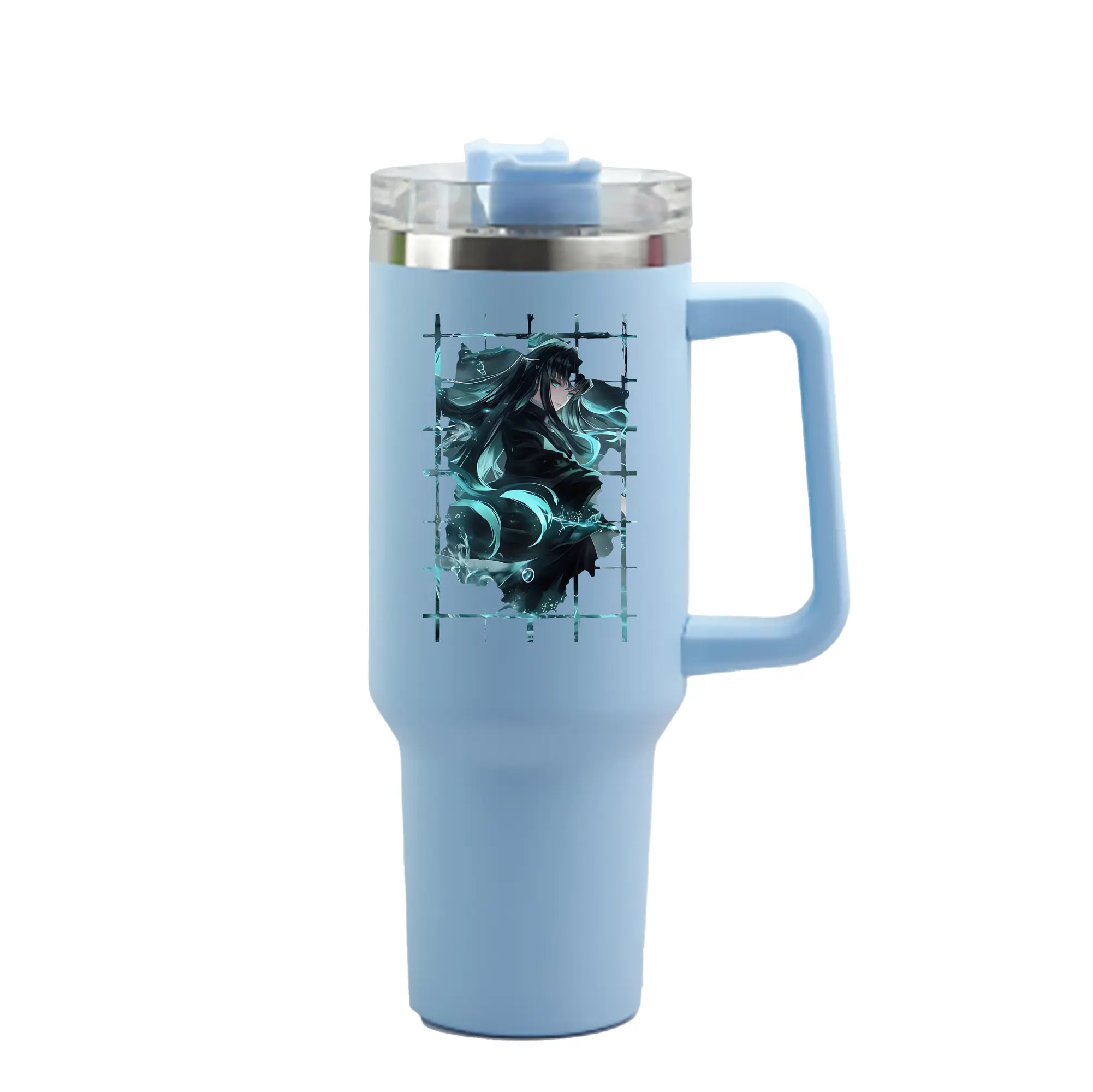 鬼滅の刃 グッズ,時透 無一郎 - 1200mL 車用タンブラー ・ クリスタルステッカー ・ 304ステンレス 内側 ・ 201ステンレス 外側 ・ 保温 保冷 ・ ハンドル&ストロー付き ・ 通勤 ドライブ アウトドア用