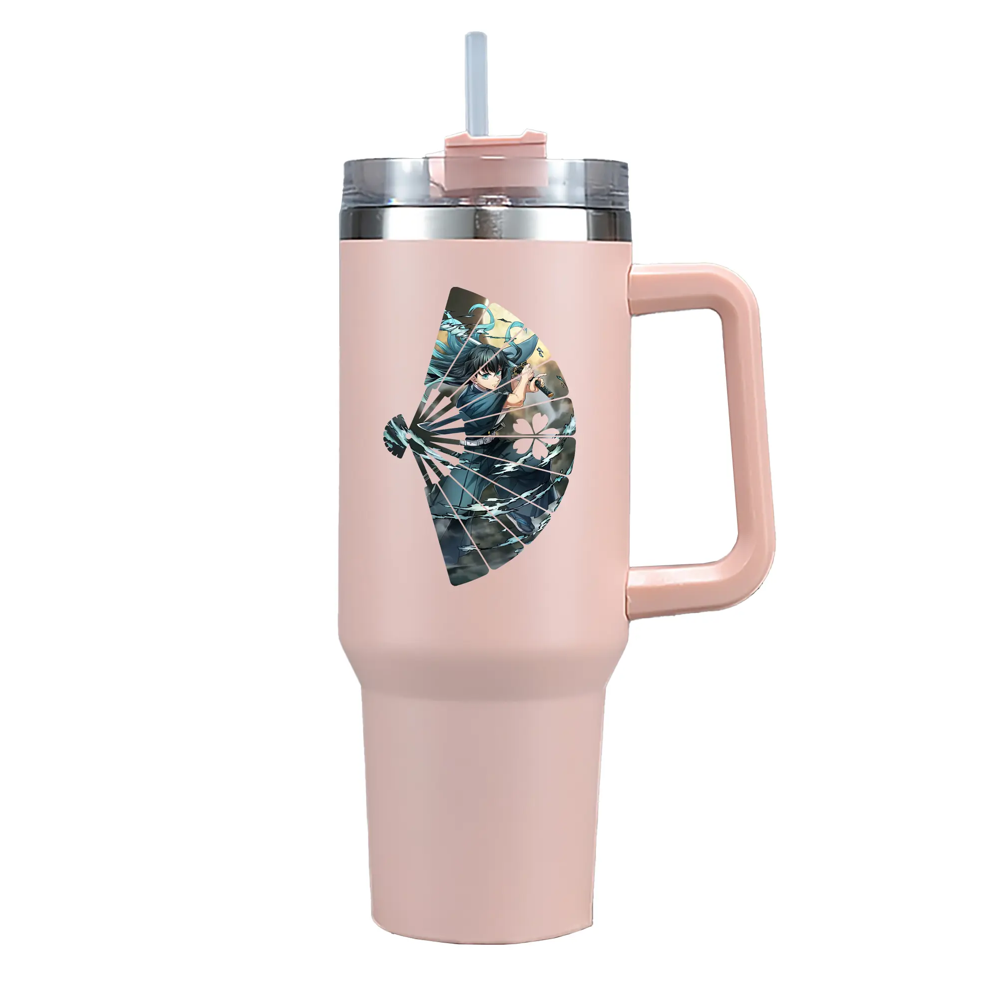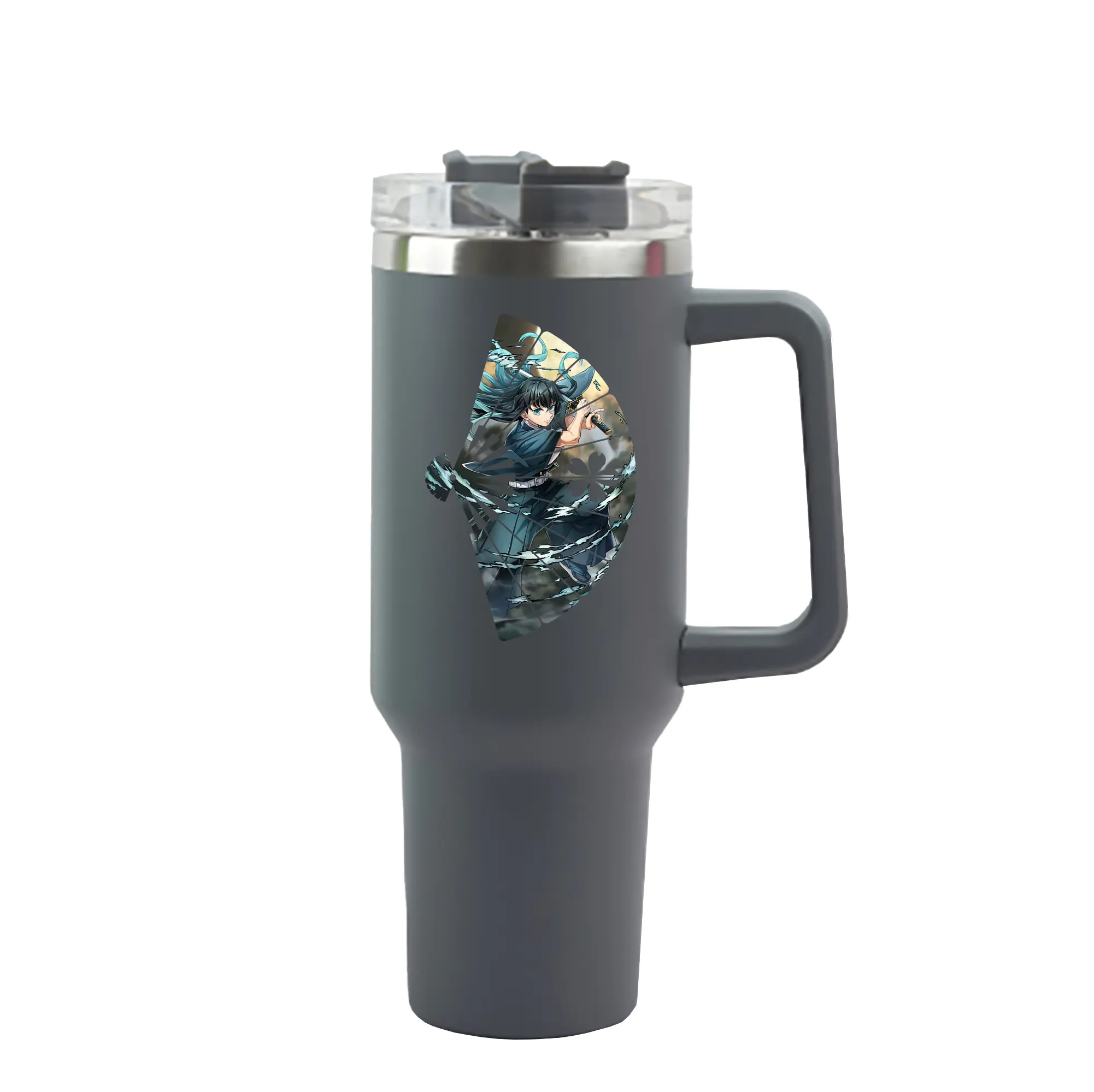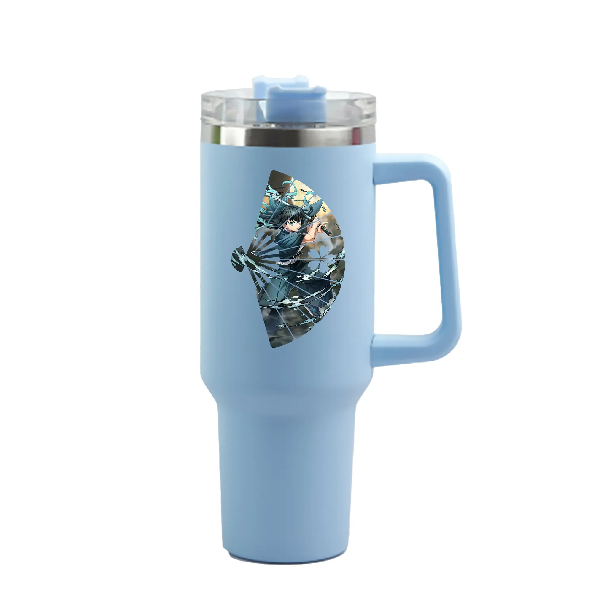 鬼滅の刃 グッズ,時透 無一郎 - 1200mL 車用タンブラー ・ クリスタルステッカー ・ 304ステンレス 内側 ・ 201ステンレス 外側 ・ 保温 保冷 ・ ハンドル&ストロー付き ・ 通勤 ドライブ アウトドア用