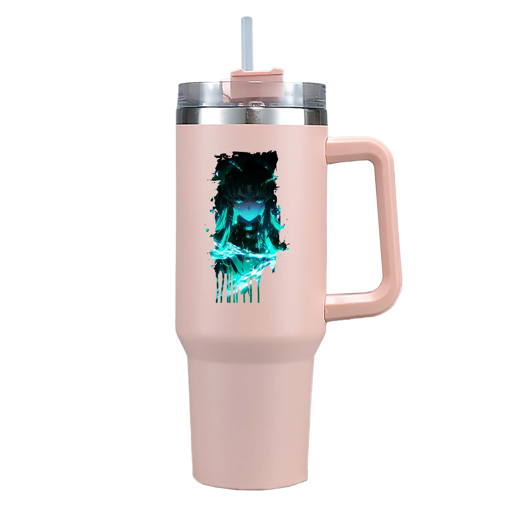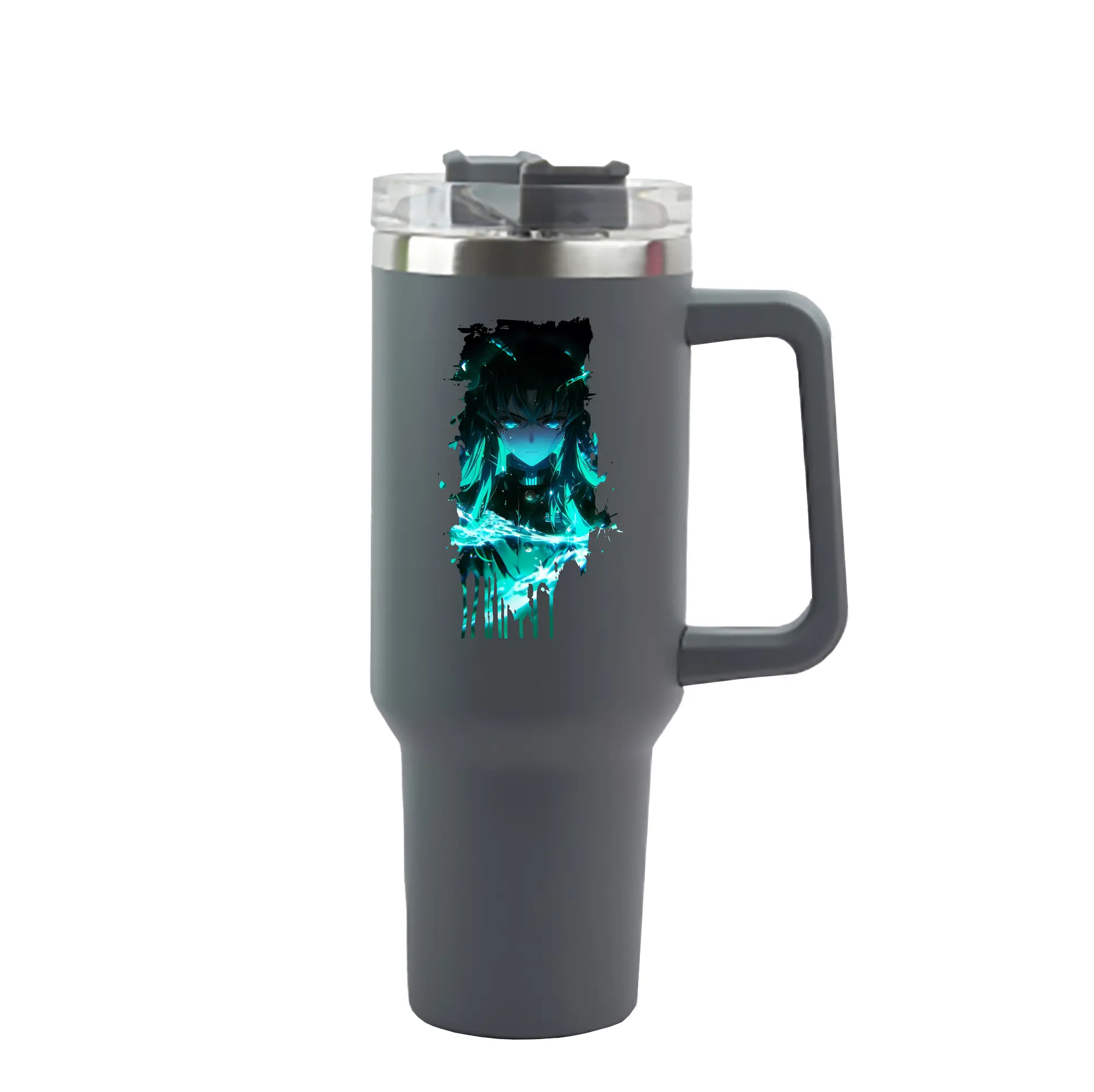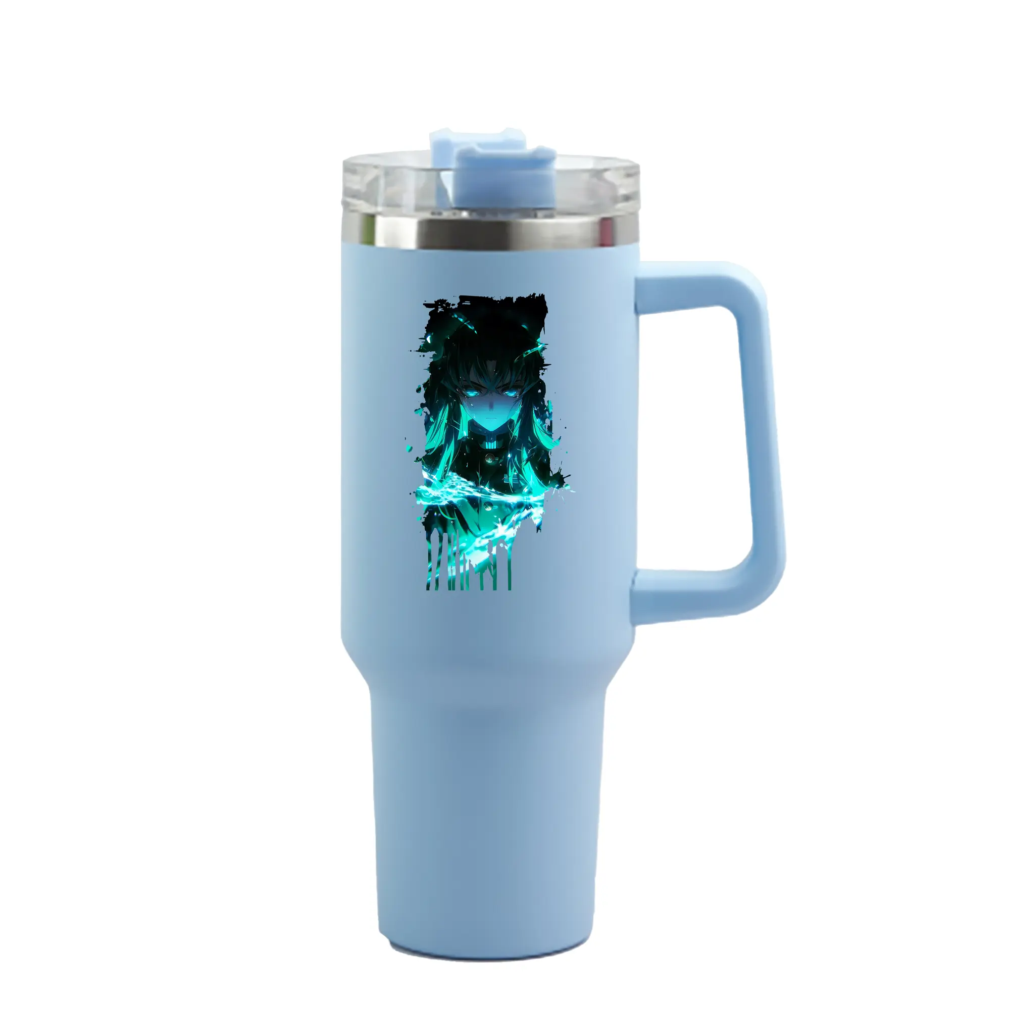 鬼滅の刃 グッズ,時透 無一郎 - 1200mL 車用タンブラー ・ クリスタルステッカー ・ 304ステンレス 内側 ・ 201ステンレス 外側 ・ 保温 保冷 ・ ハンドル&ストロー付き ・ 通勤 ドライブ アウトドア用