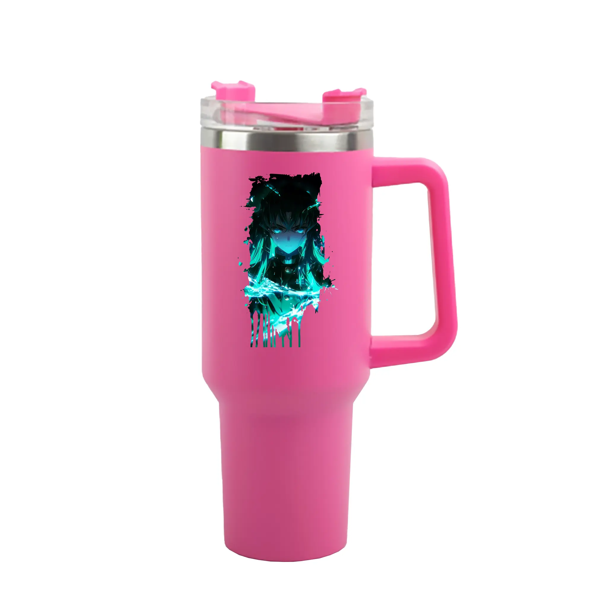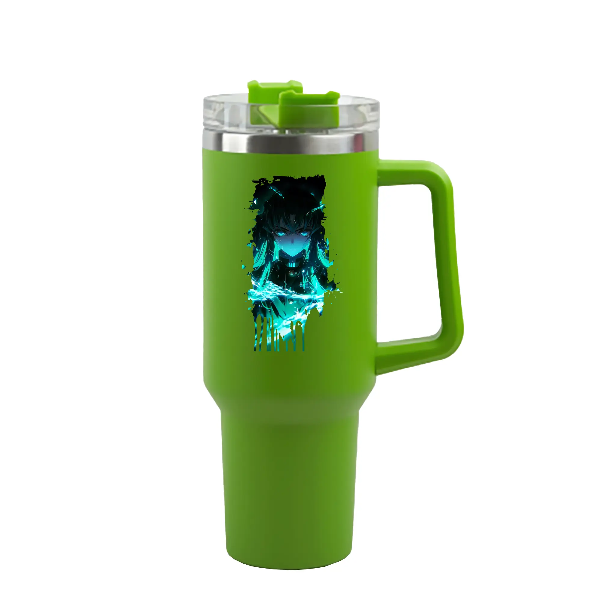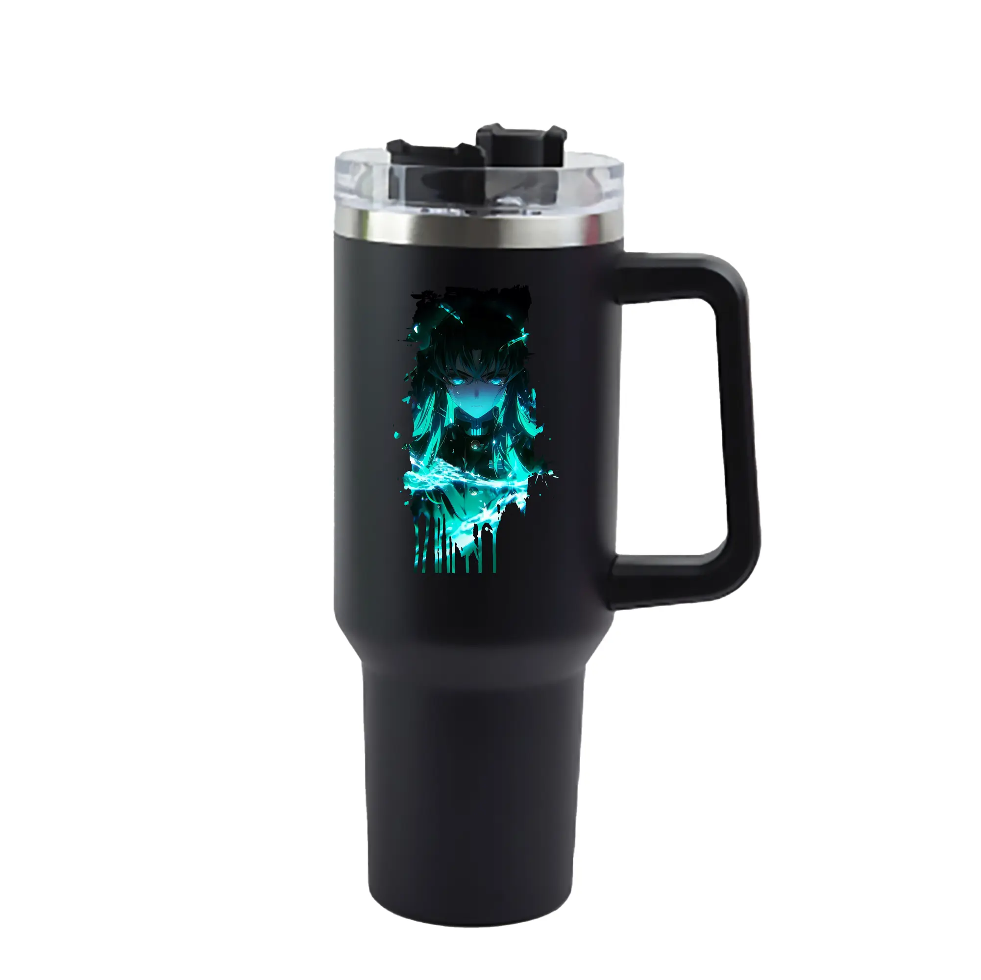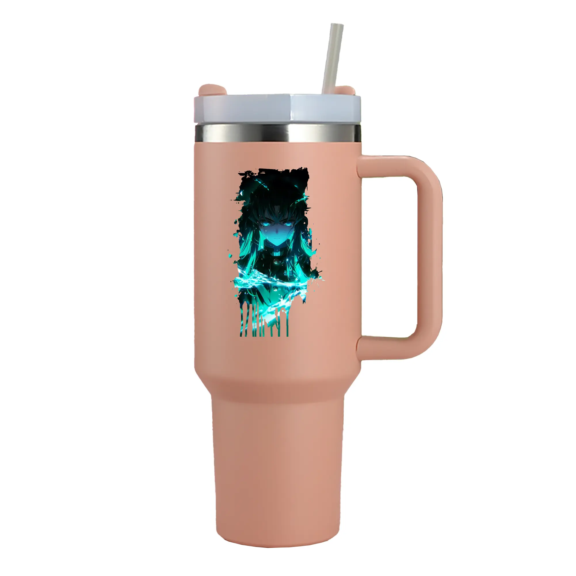 鬼滅の刃 グッズ,時透 無一郎 - 1200mL 車用タンブラー ・ クリスタルステッカー ・ 304ステンレス 内側 ・ 201ステンレス 外側 ・ 保温 保冷 ・ ハンドル&ストロー付き ・ 通勤 ドライブ アウトドア用