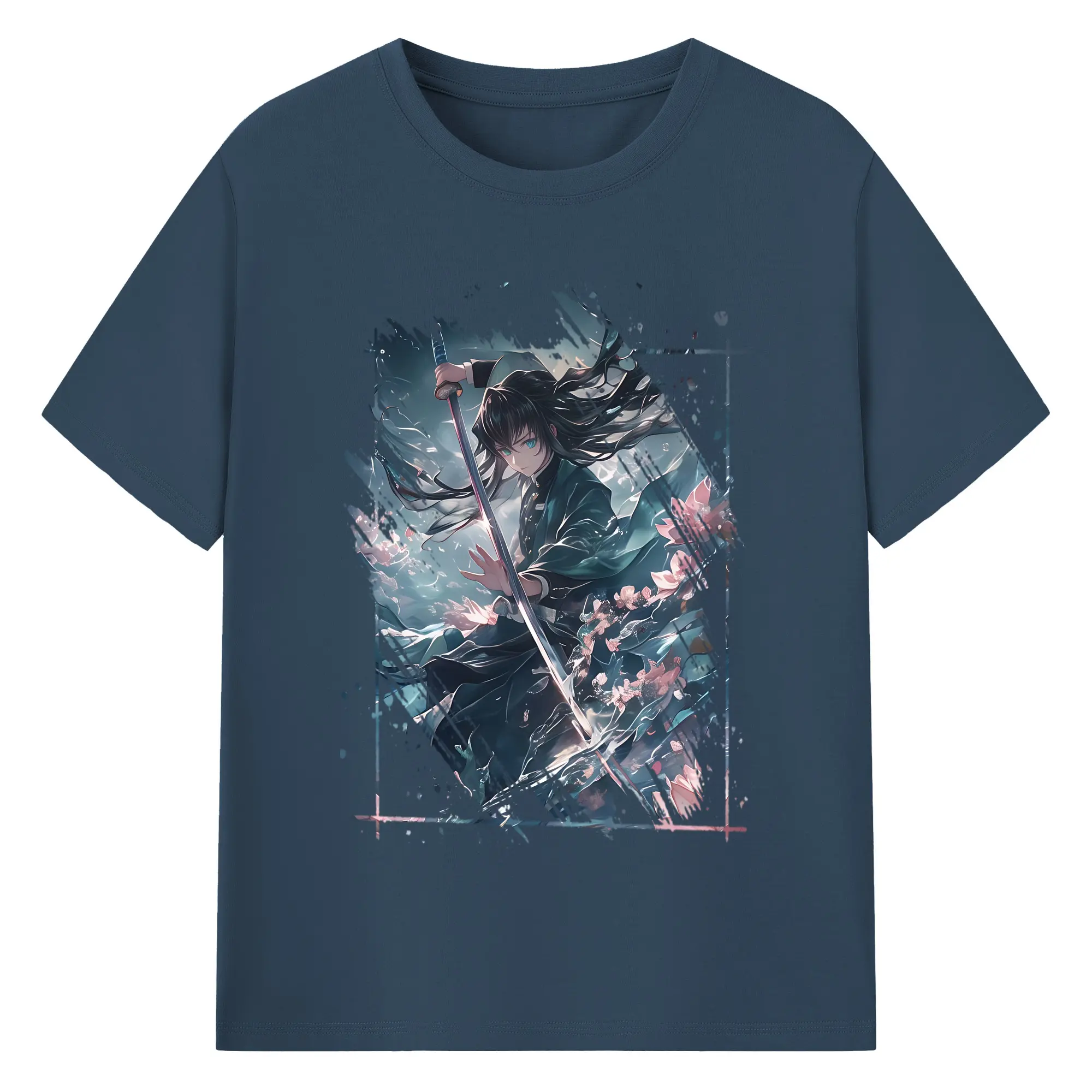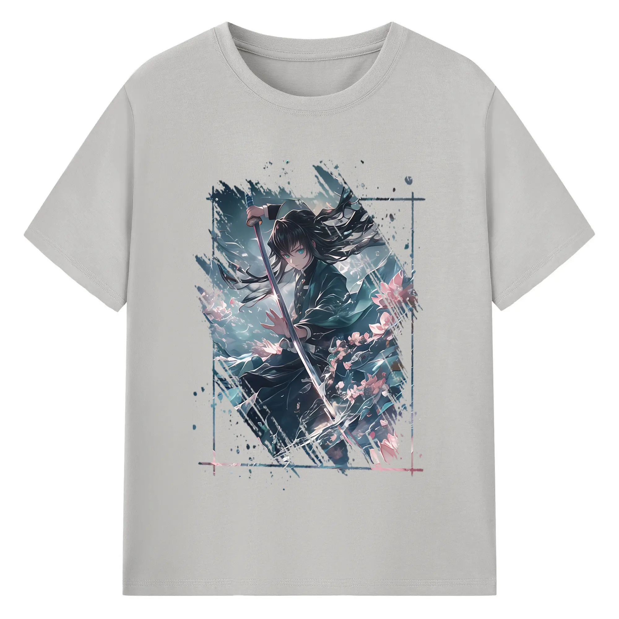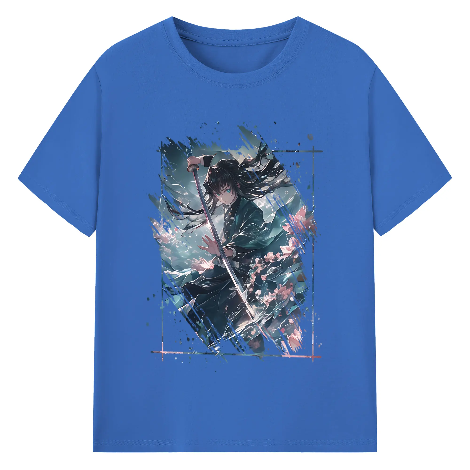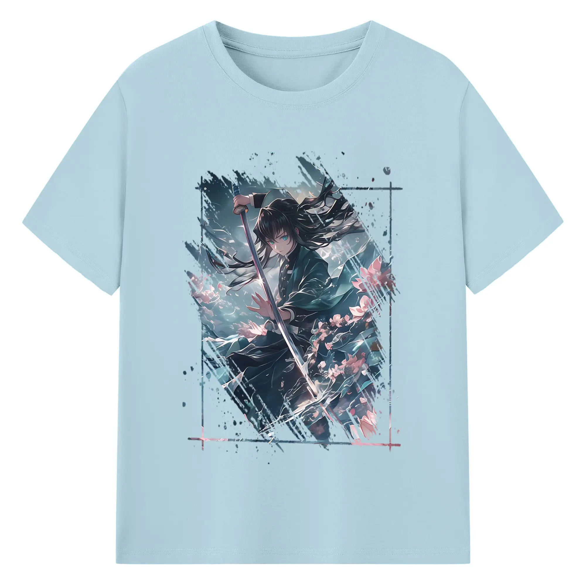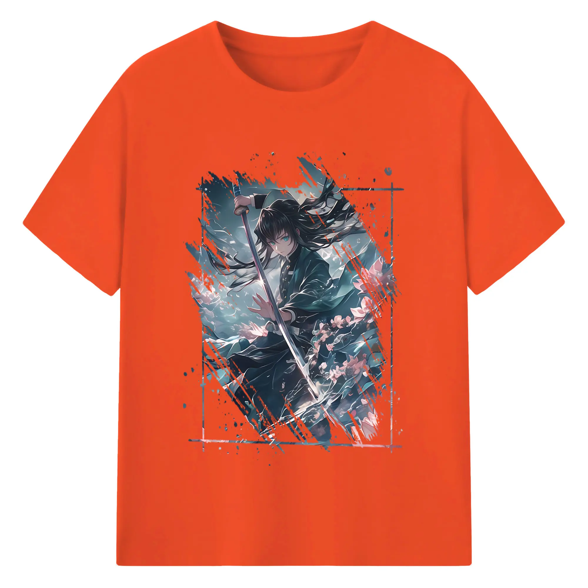鬼滅の刃 グッズ,冨岡 義勇 - 綿100% 半袖Tシャツ ・ フロントプリント ・ 快適 通気性 ・ 日常使い 散歩 スポーツ用