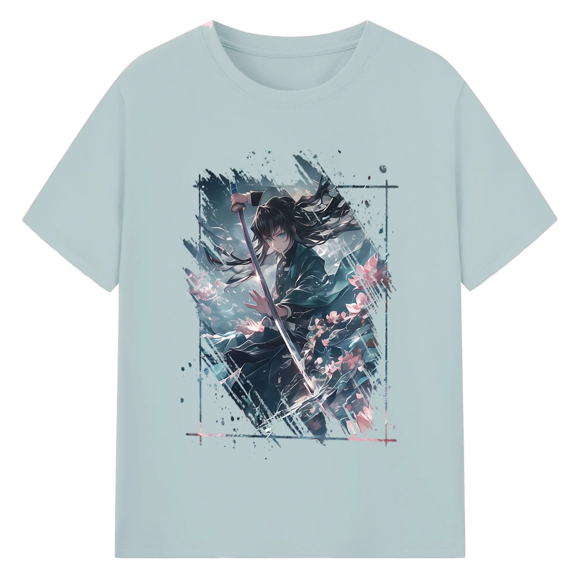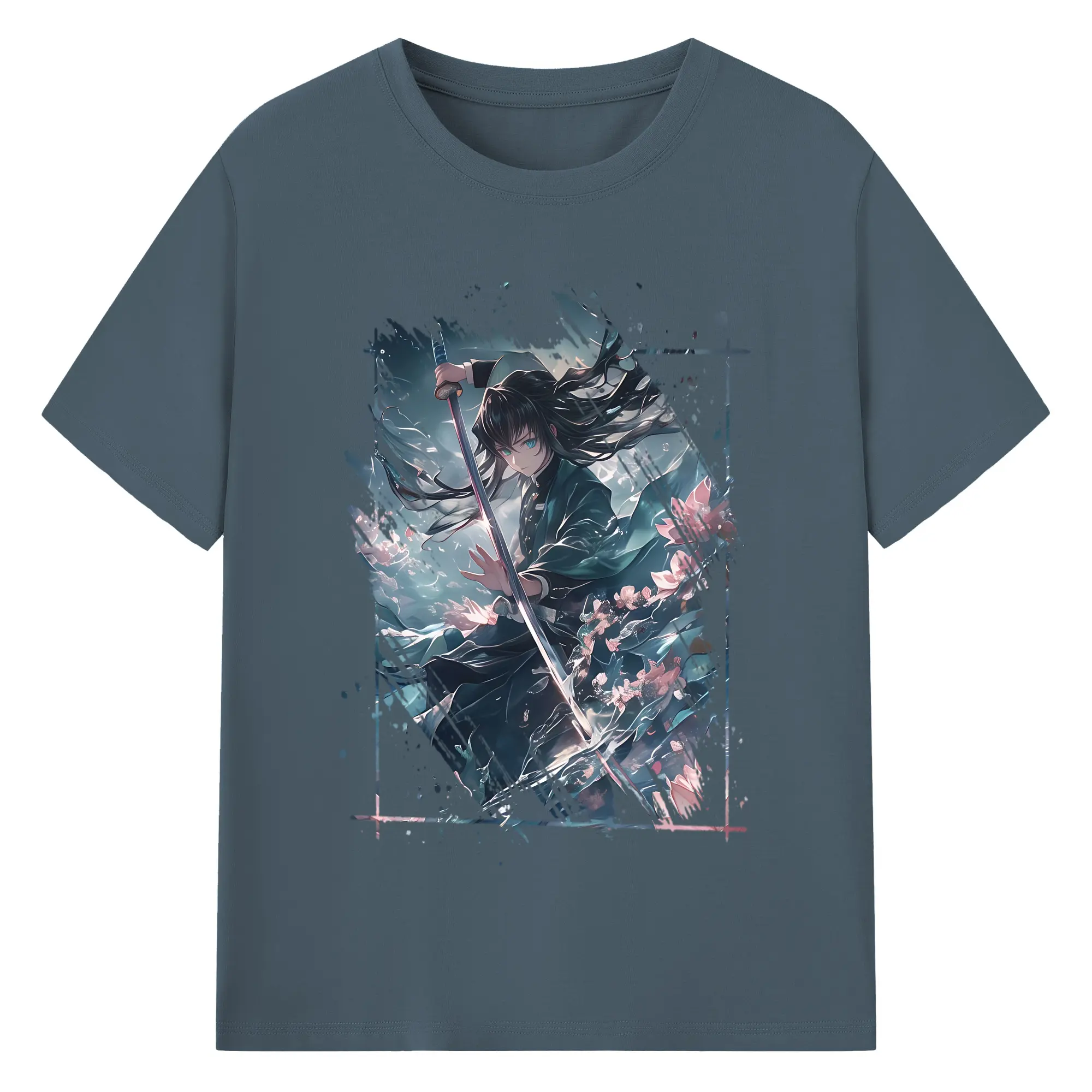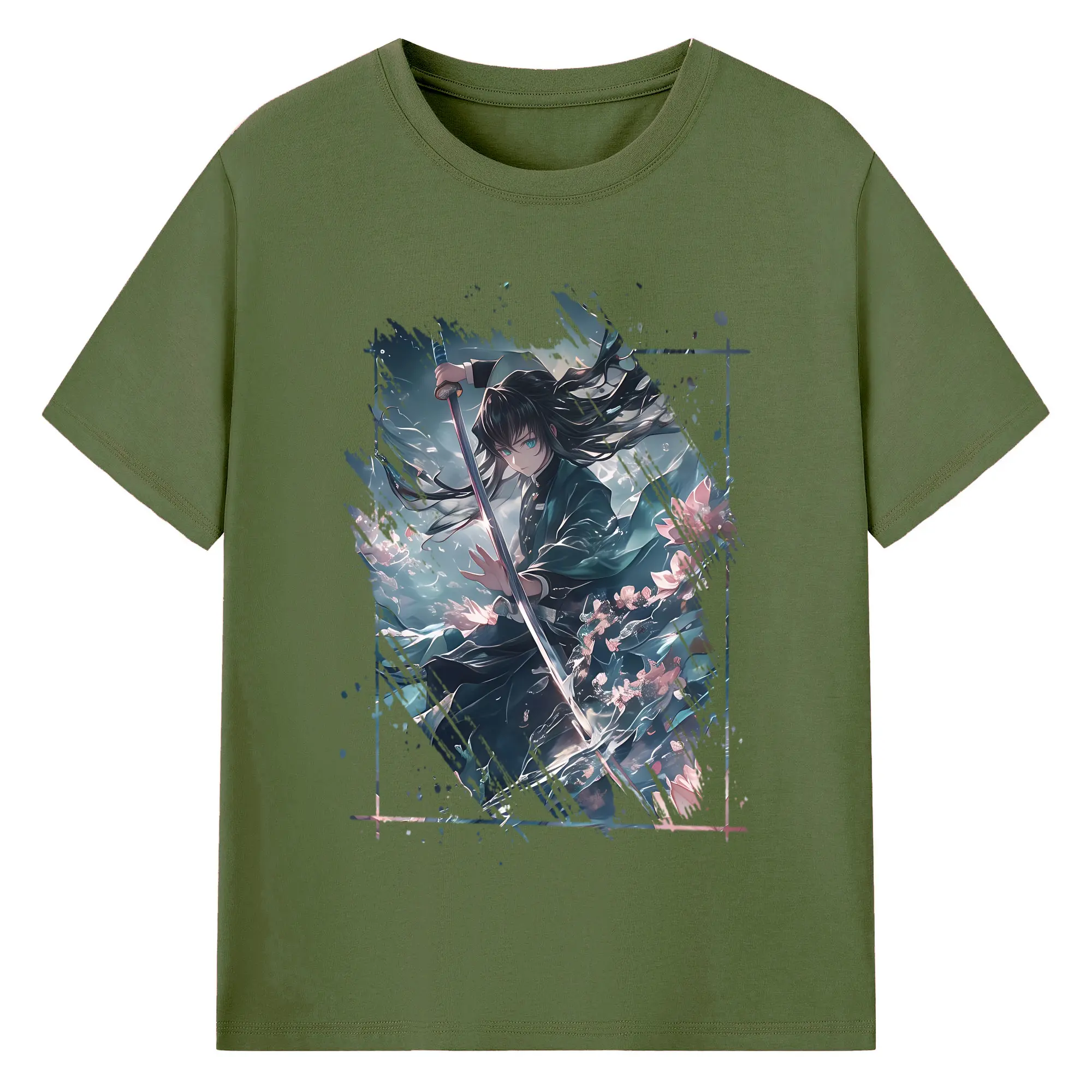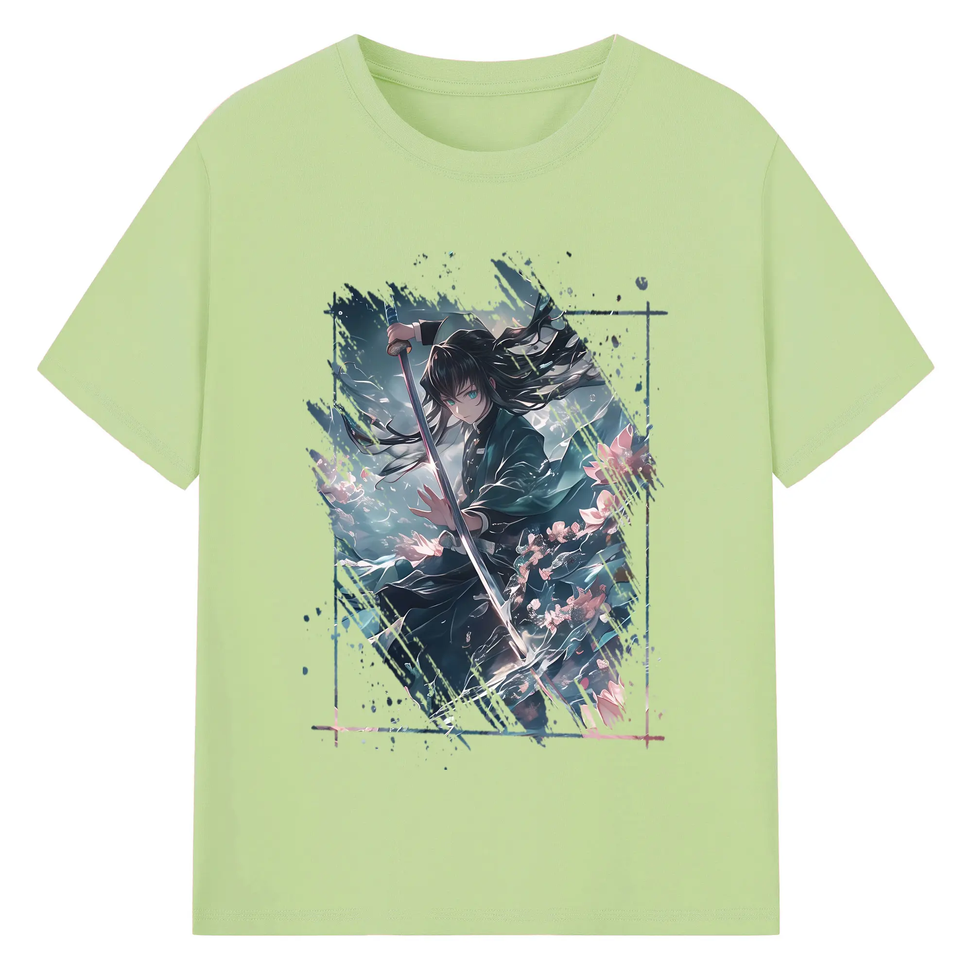 鬼滅の刃 グッズ,冨岡 義勇 - 綿100% 半袖Tシャツ ・ フロントプリント ・ 快適 通気性 ・ 日常使い 散歩 スポーツ用