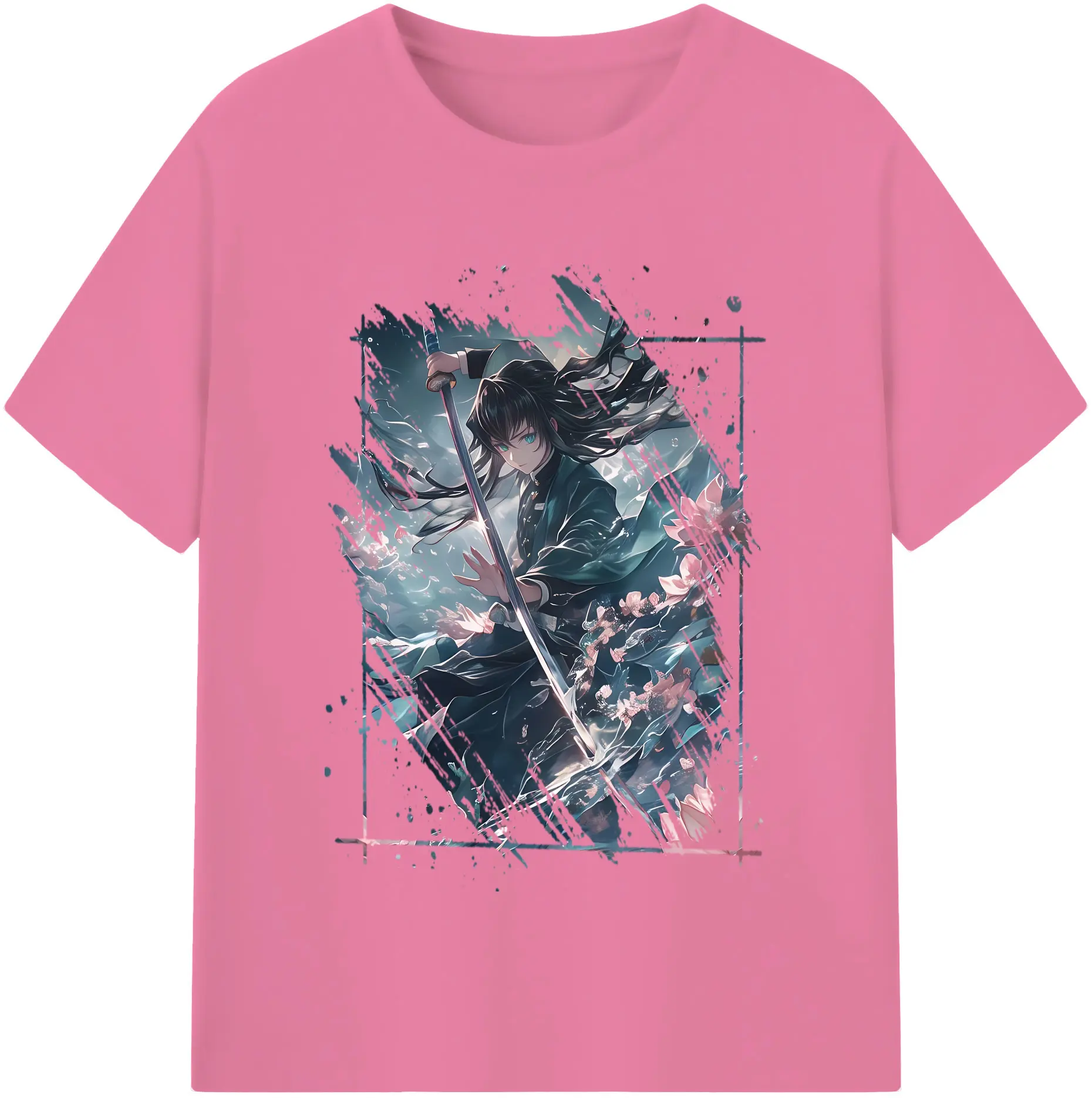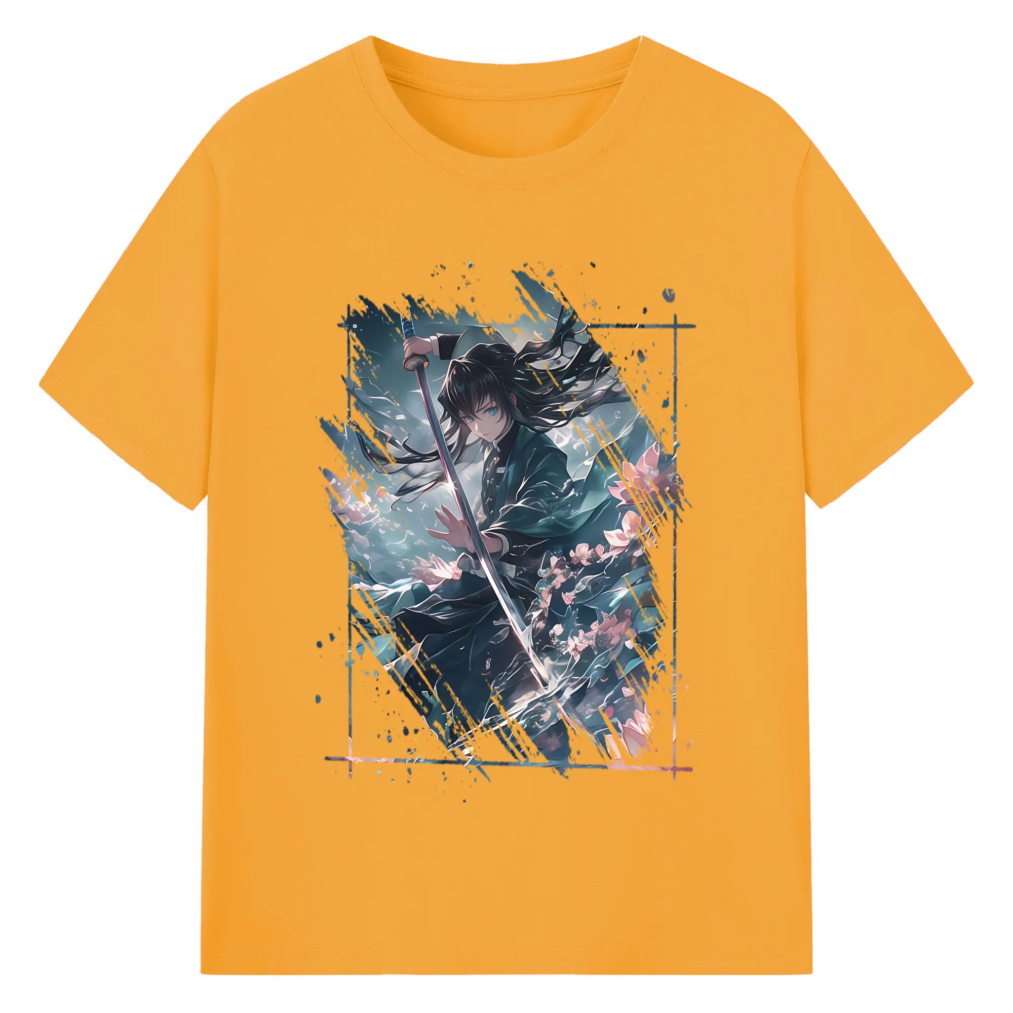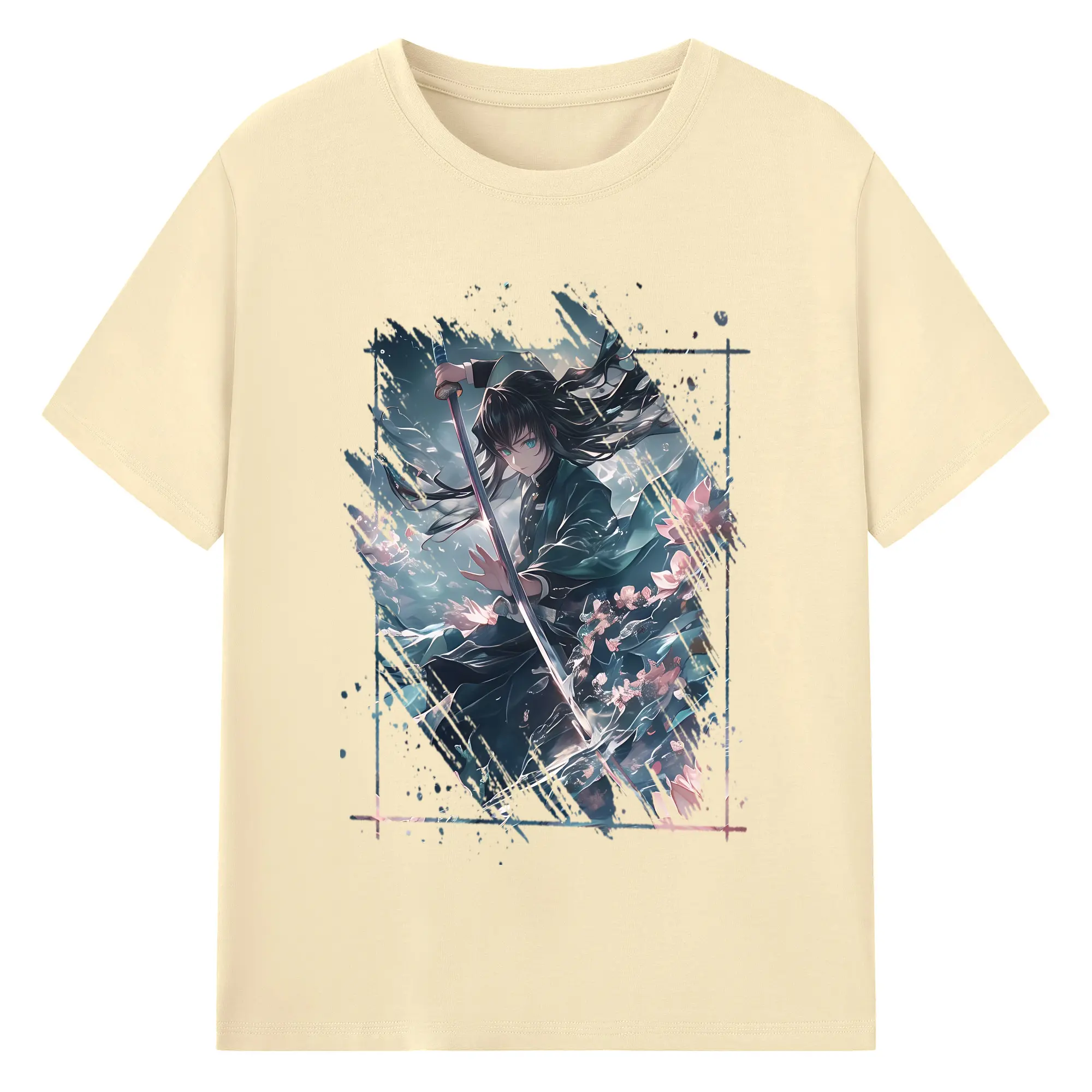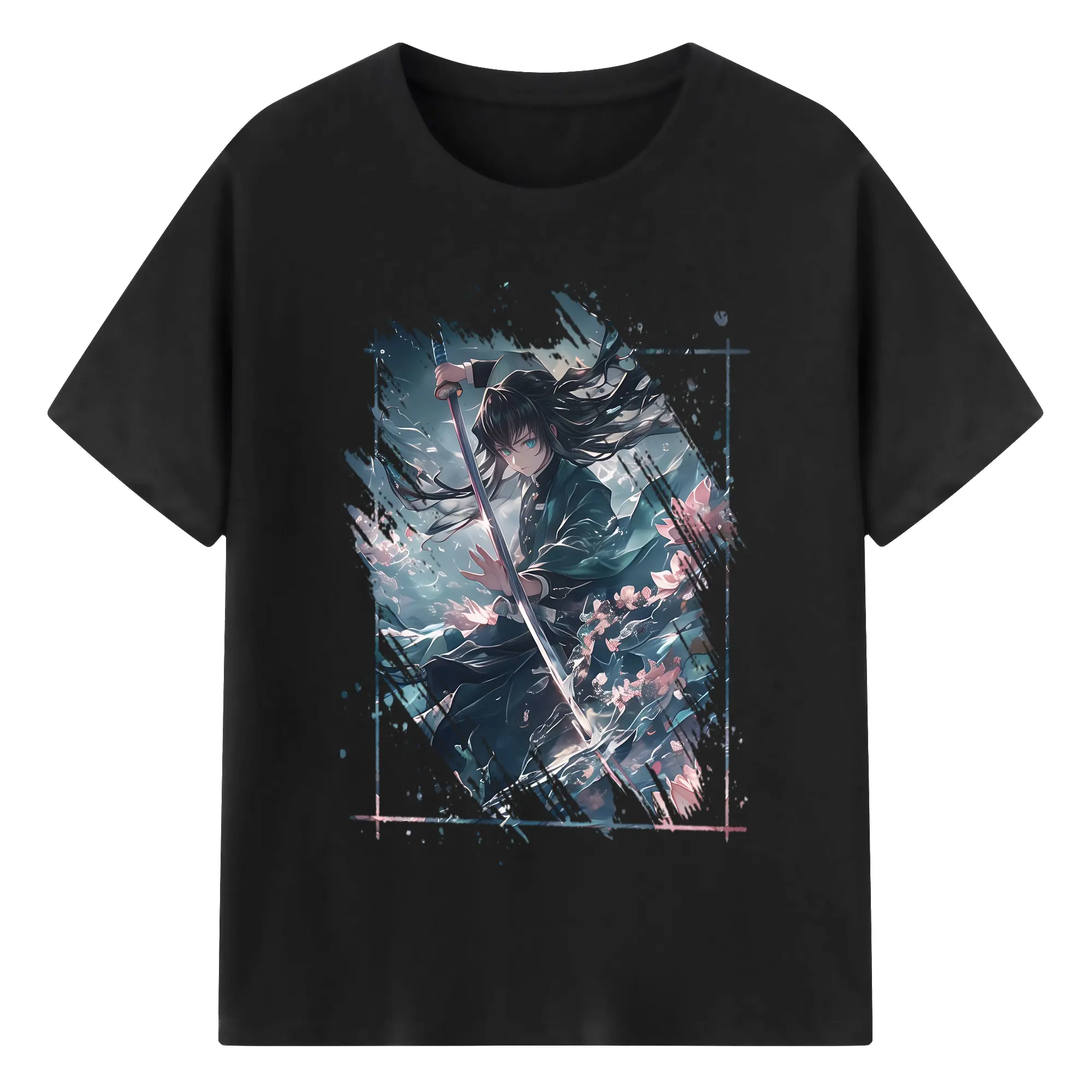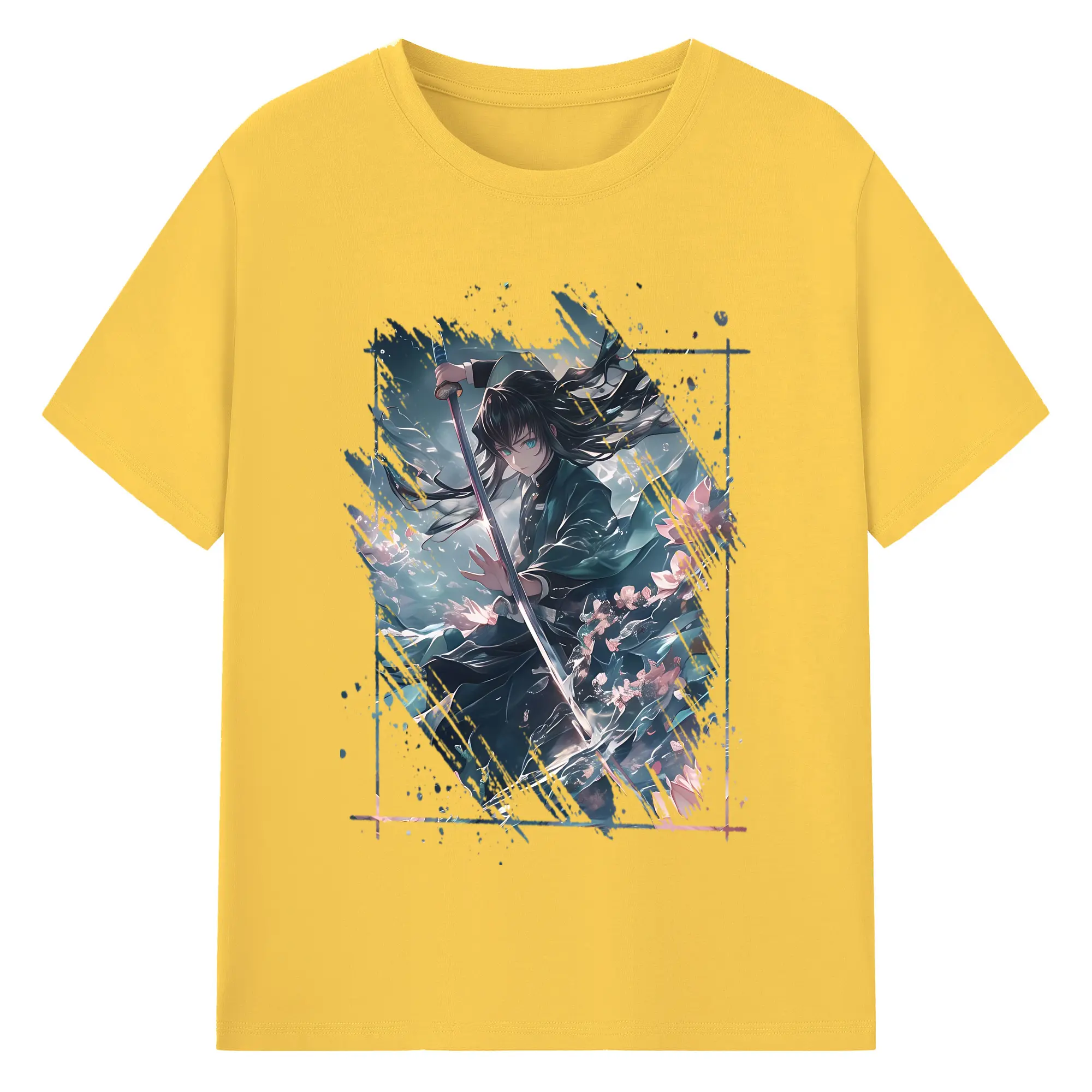 鬼滅の刃 グッズ,冨岡 義勇 - 綿100% 半袖Tシャツ ・ フロントプリント ・ 快適 通気性 ・ 日常使い 散歩 スポーツ用