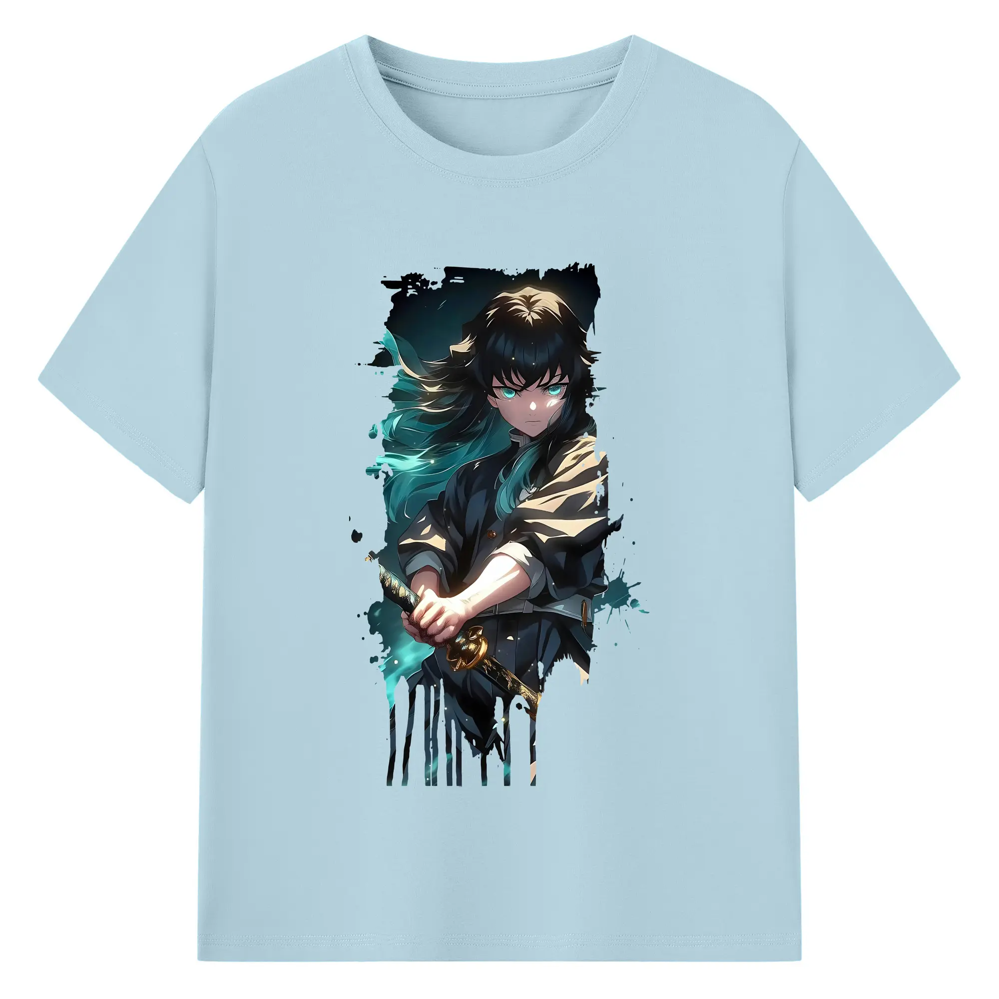 鬼滅の刃 グッズ,時透 無一郎 - 綿100% 半袖Tシャツ ・ バックプリント ・ 快適 通気性 ・ 日常使い 散歩 スポーツ用
