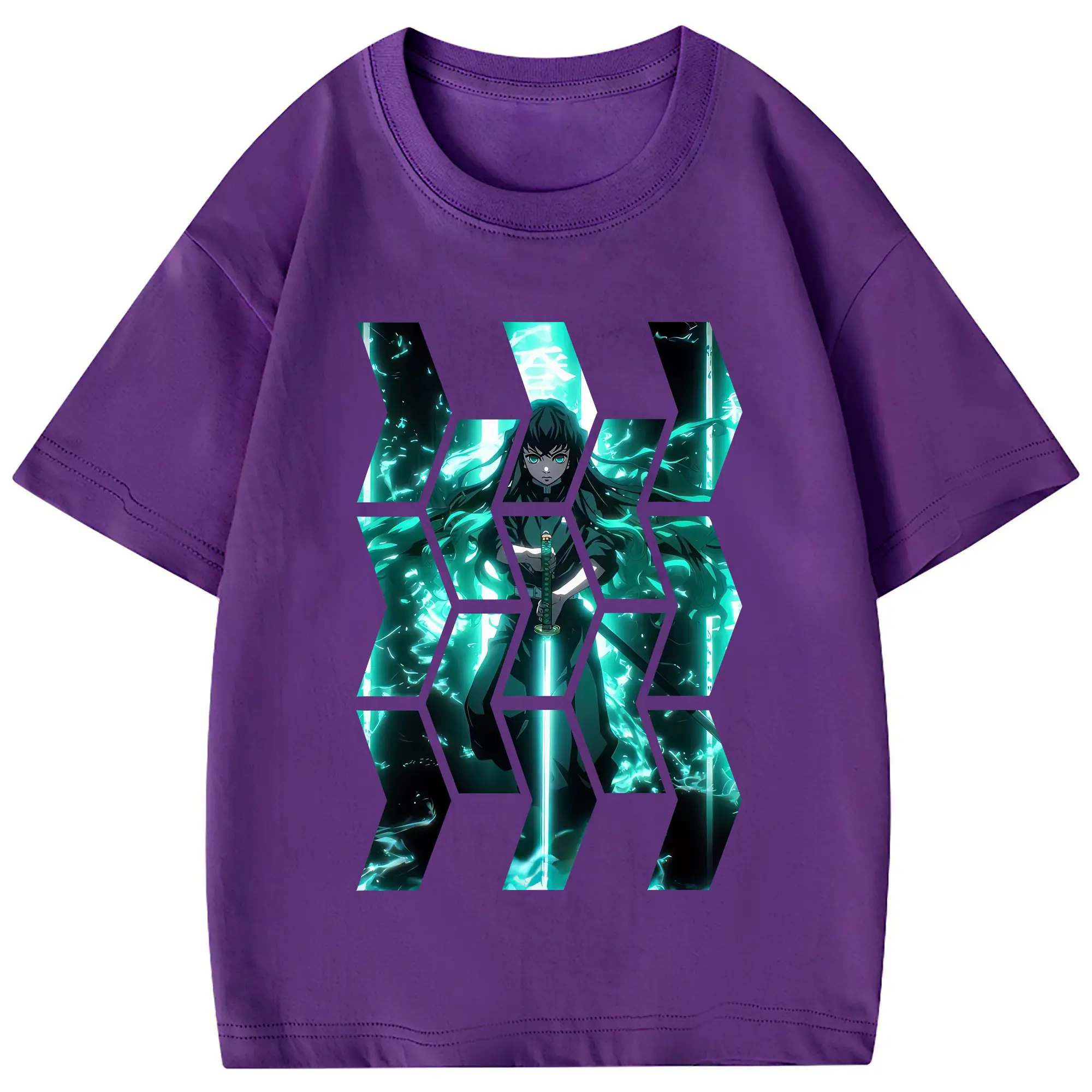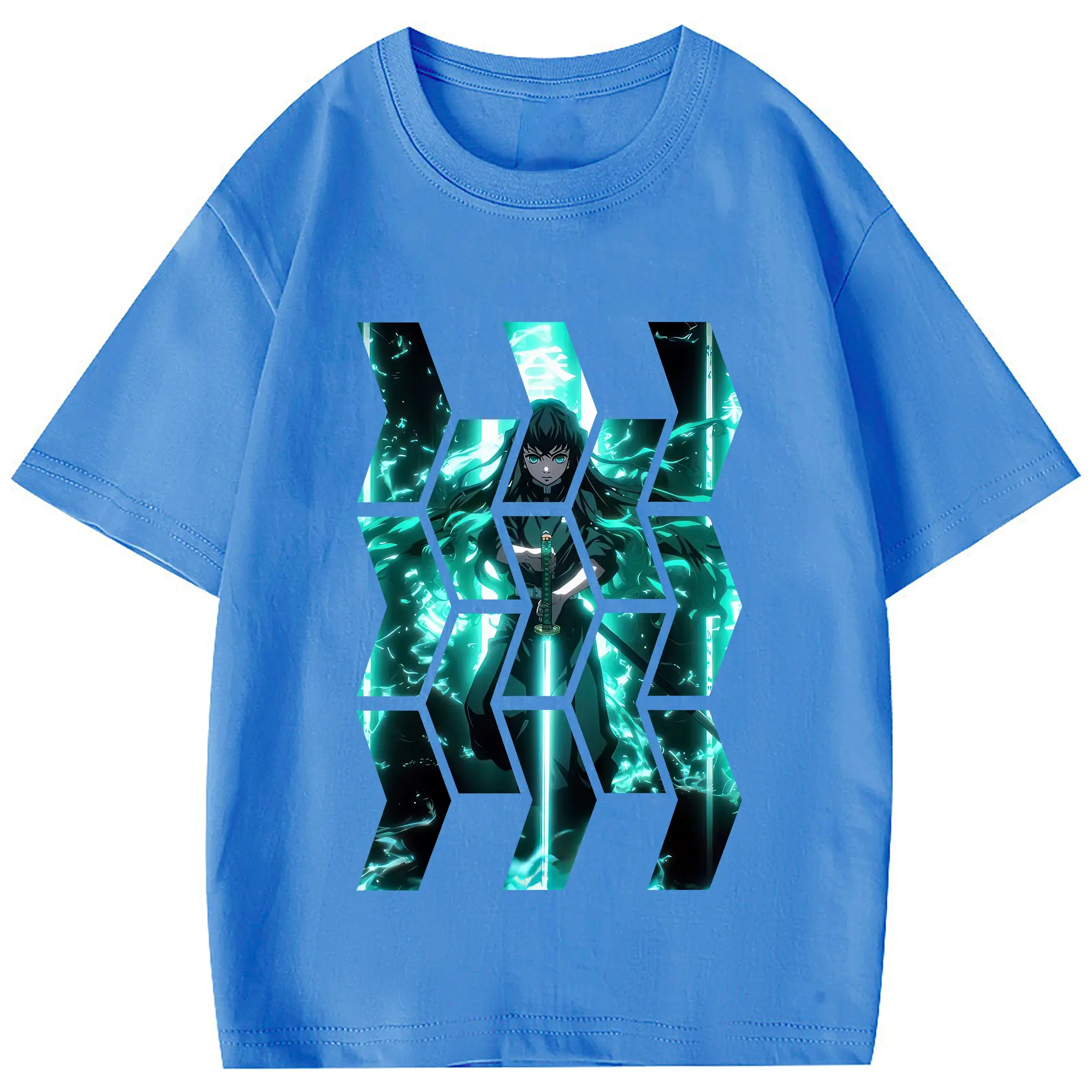 鬼滅の刃 グッズ,時透 無一郎 - 綿100% 半袖Tシャツ ・ フロントプリント ・ 快適 通気性 ・ 日常使い 散歩 スポーツ用