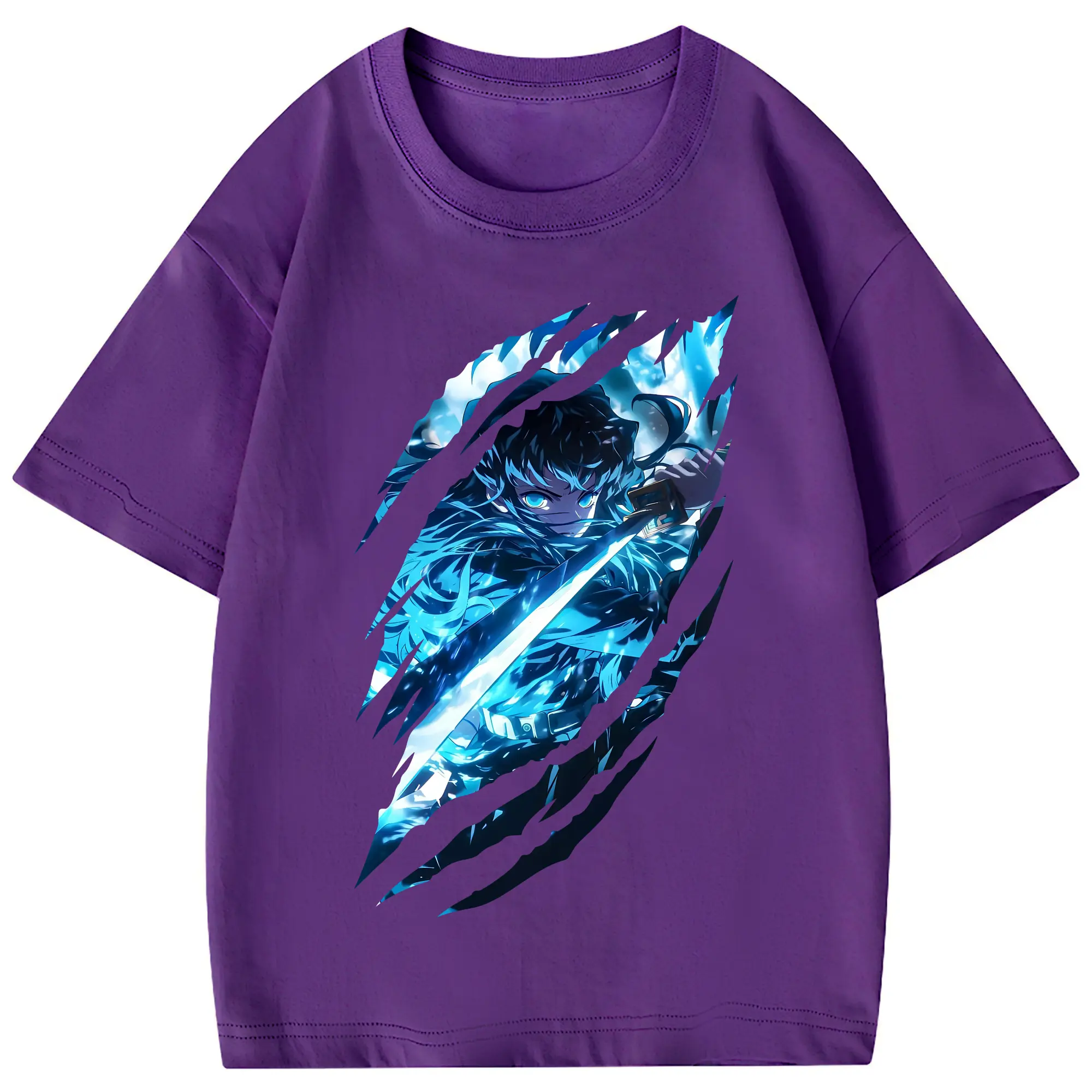 鬼滅の刃 グッズ,時透 無一郎 - 綿100% 半袖Tシャツ ・ フロントプリント ・ 快適 通気性 ・ 日常使い 散歩 スポーツ用