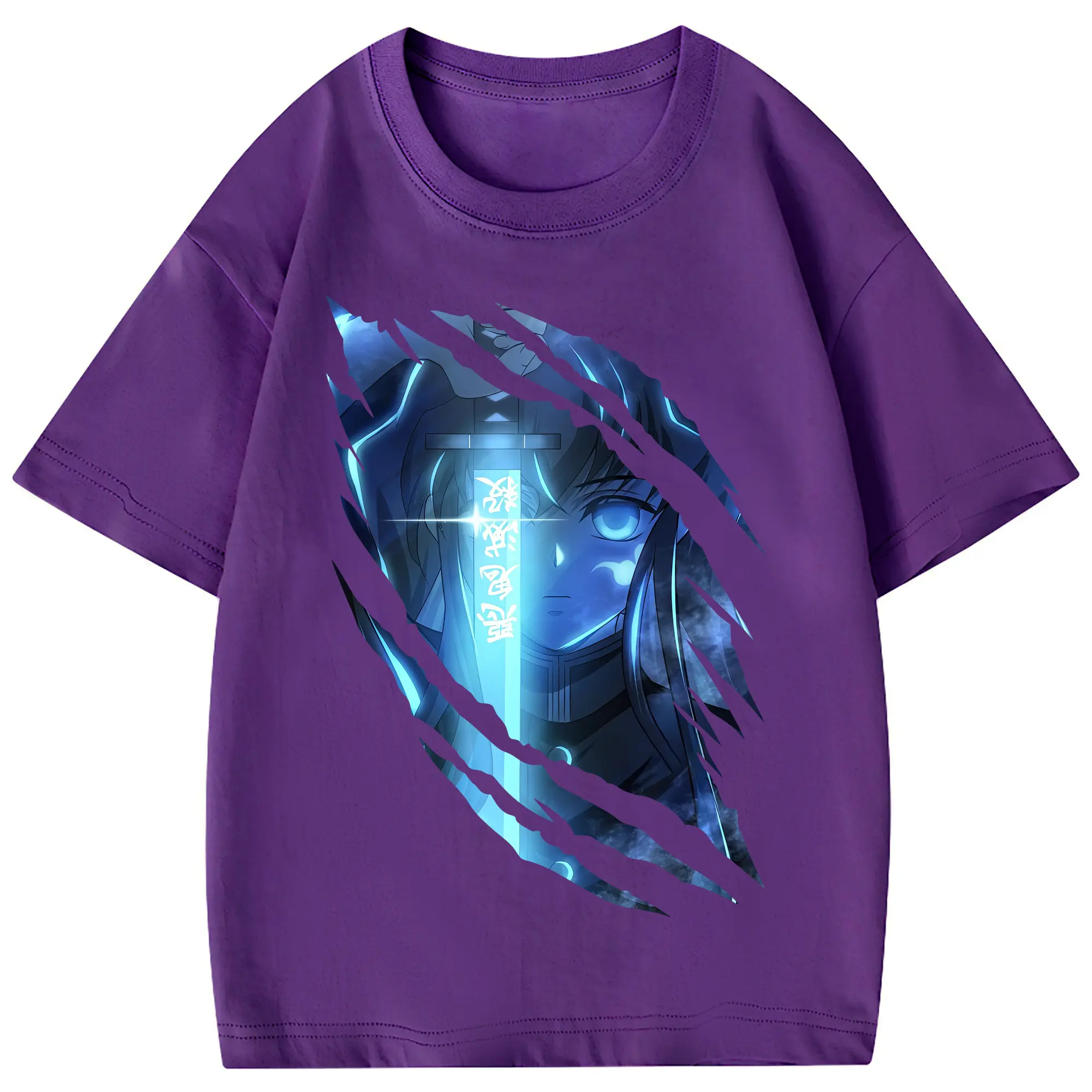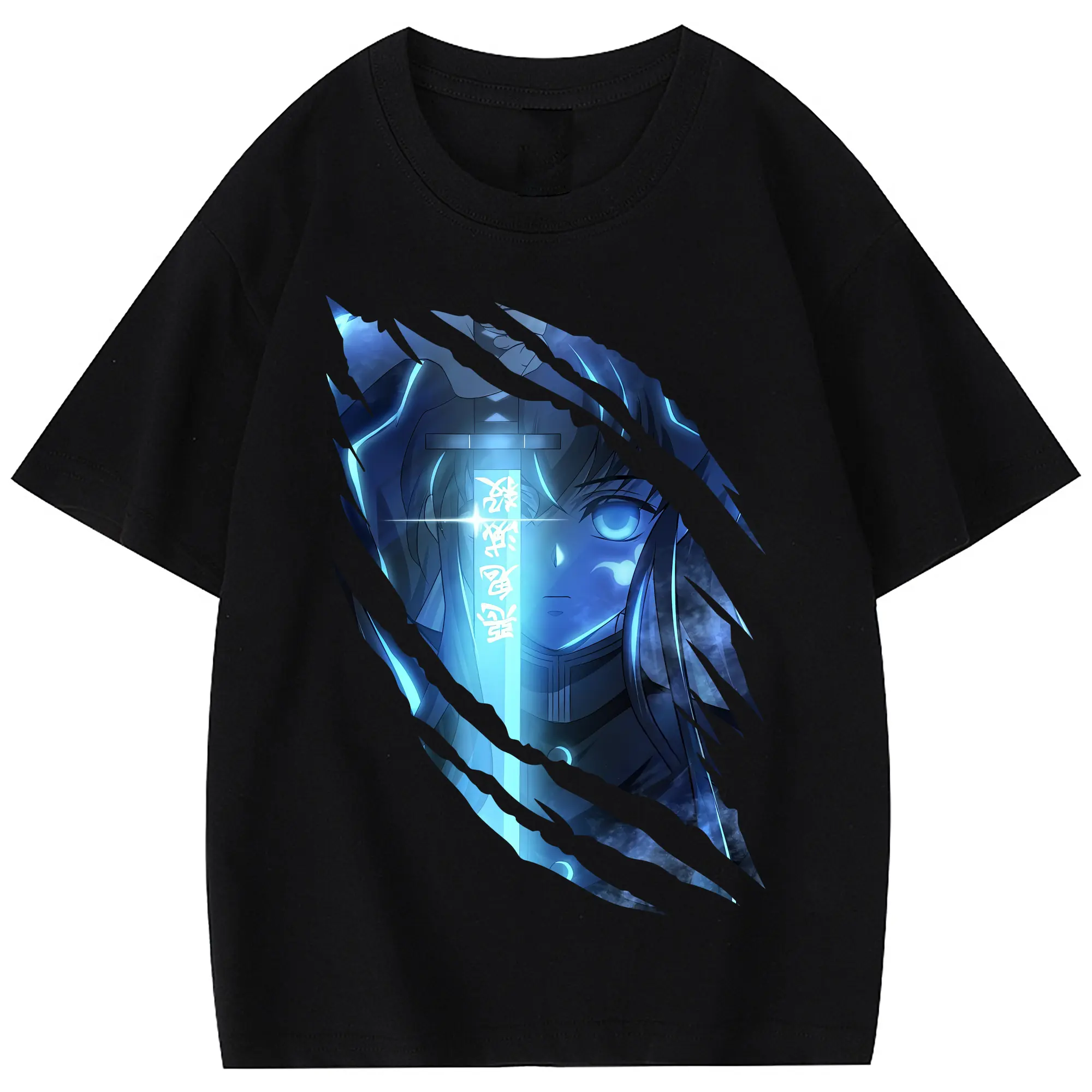 鬼滅の刃 グッズ,冨岡 義勇 - 綿100% キッズTシャツ ・ フロントプリント ・ 快適 通気性 ・ スポーツ カジュアル 散歩用