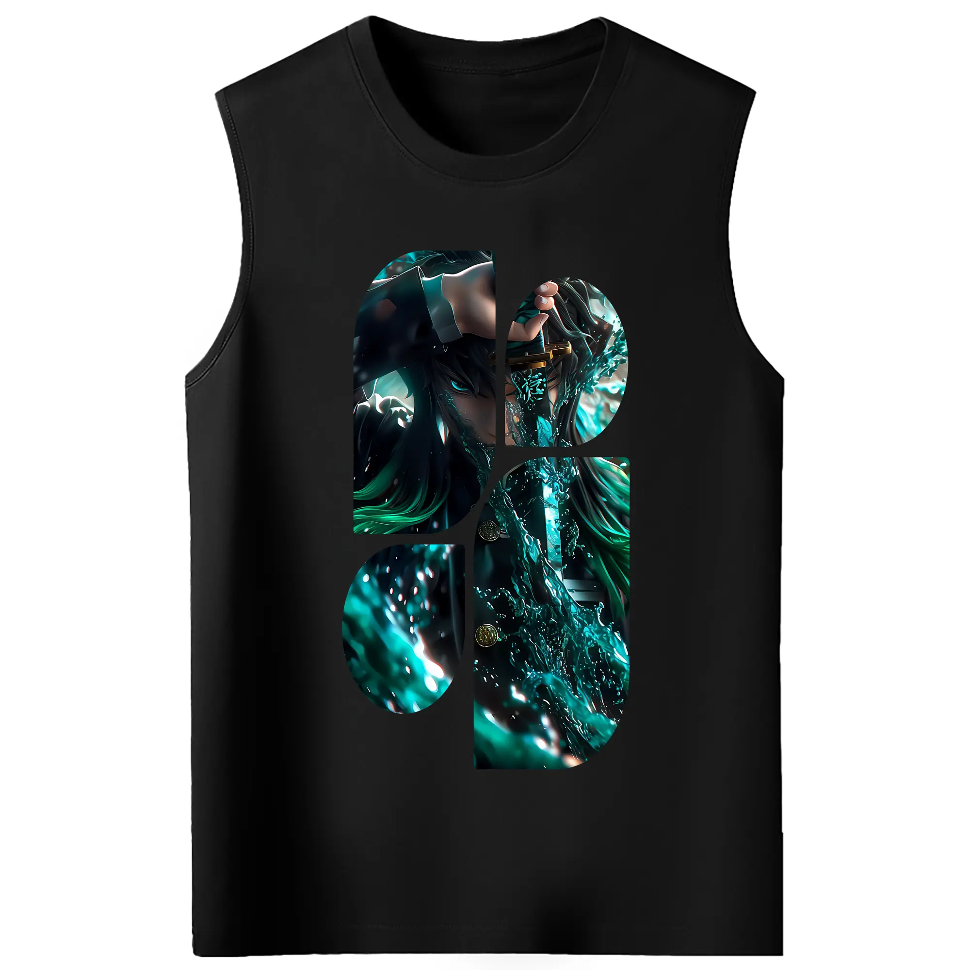 鬼滅の刃 グッズ,時透 無一郎 - コットン100% タンクトップ ・ フロントプリント ・ タイトフィット ・ 快適 通気性 ・ スポーツ カジュアル 散歩用