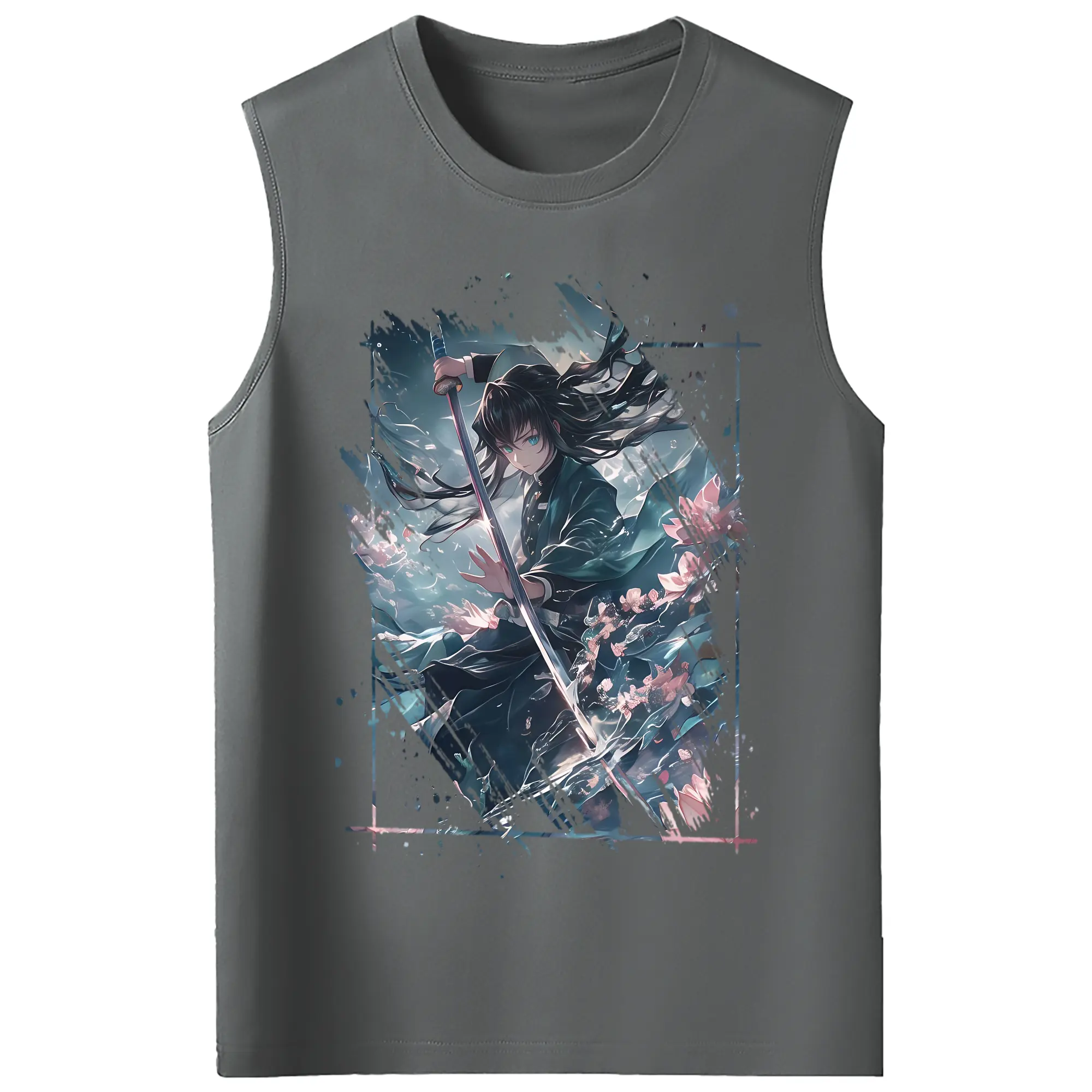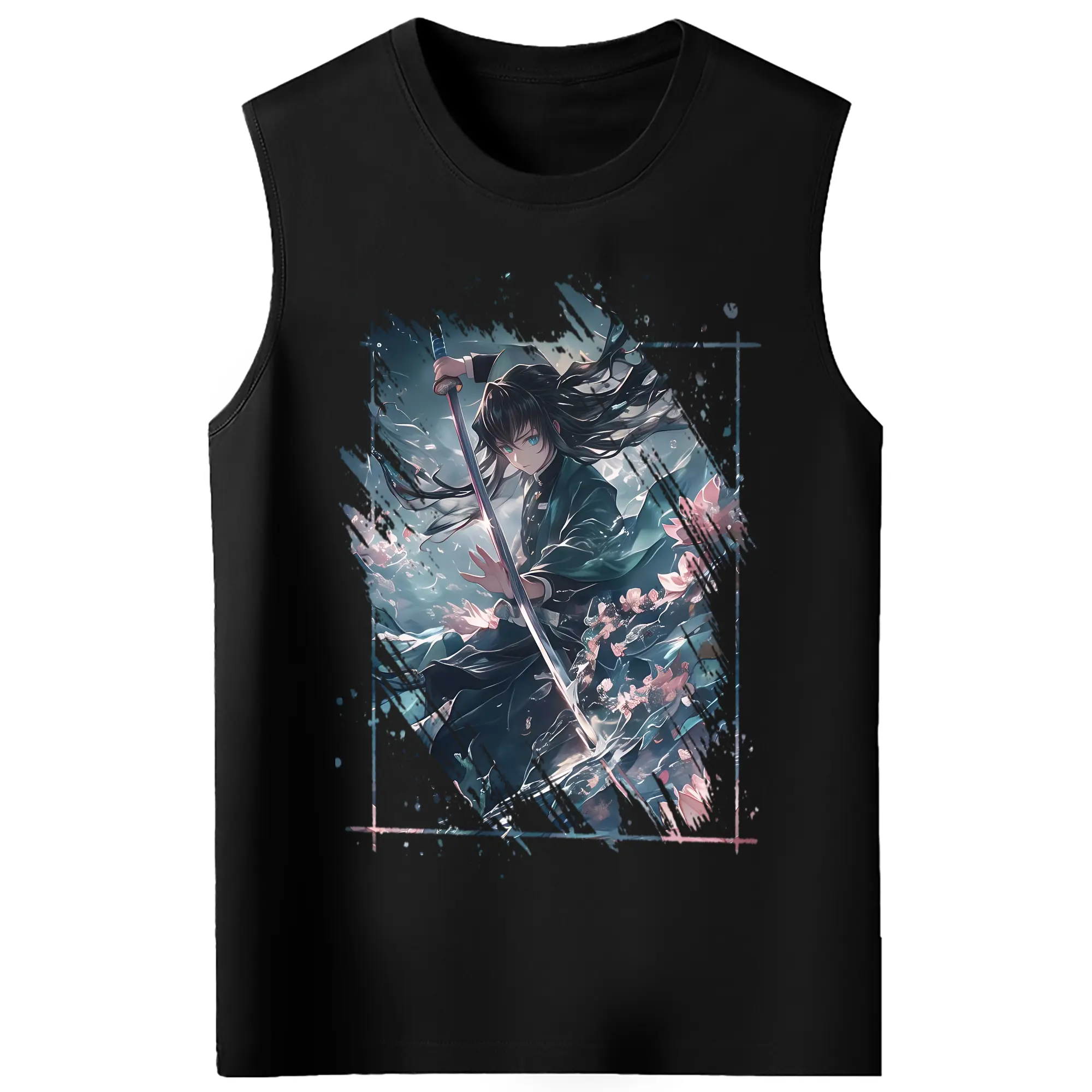 鬼滅の刃 グッズ,時透 無一郎 - コットン100% タンクトップ ・ フロントプリント ・ タイトフィット ・ 快適 通気性 ・ スポーツ カジュアル 散歩用