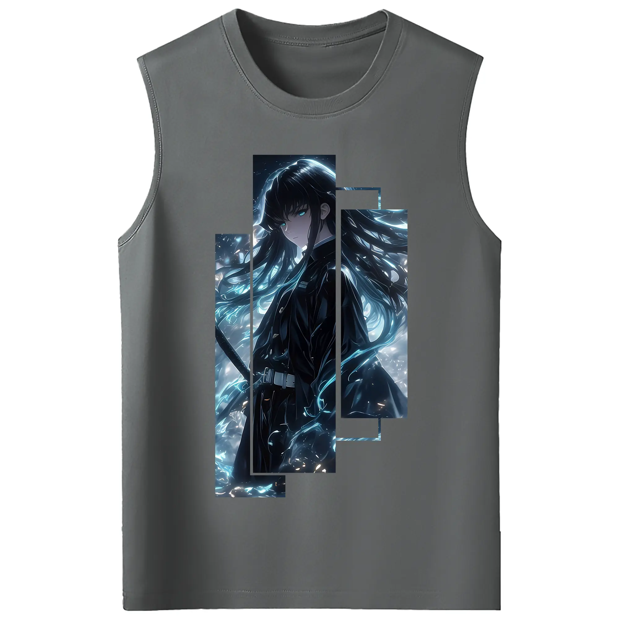 鬼滅の刃 グッズ,時透 無一郎 - コットン100% タンクトップ ・ フロントプリント ・ タイトフィット ・ 快適 通気性 ・ スポーツ カジュアル 散歩用