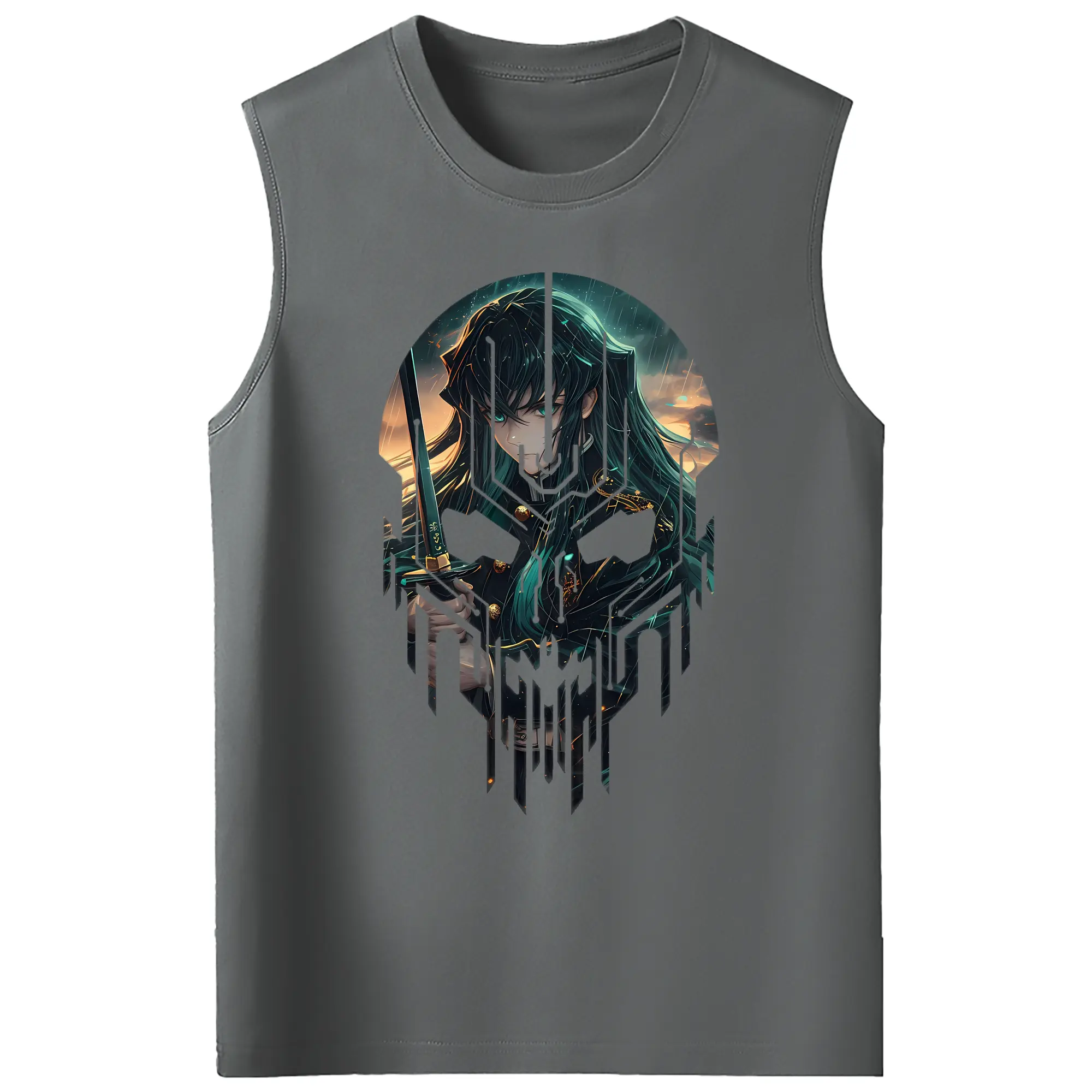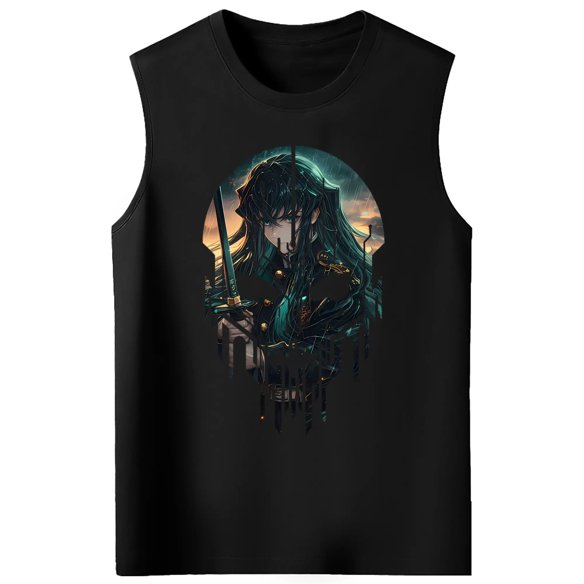 鬼滅の刃 グッズ,時透 無一郎 - コットン100% タンクトップ ・ フロントプリント ・ タイトフィット ・ 快適 通気性 ・ スポーツ カジュアル 散歩用
