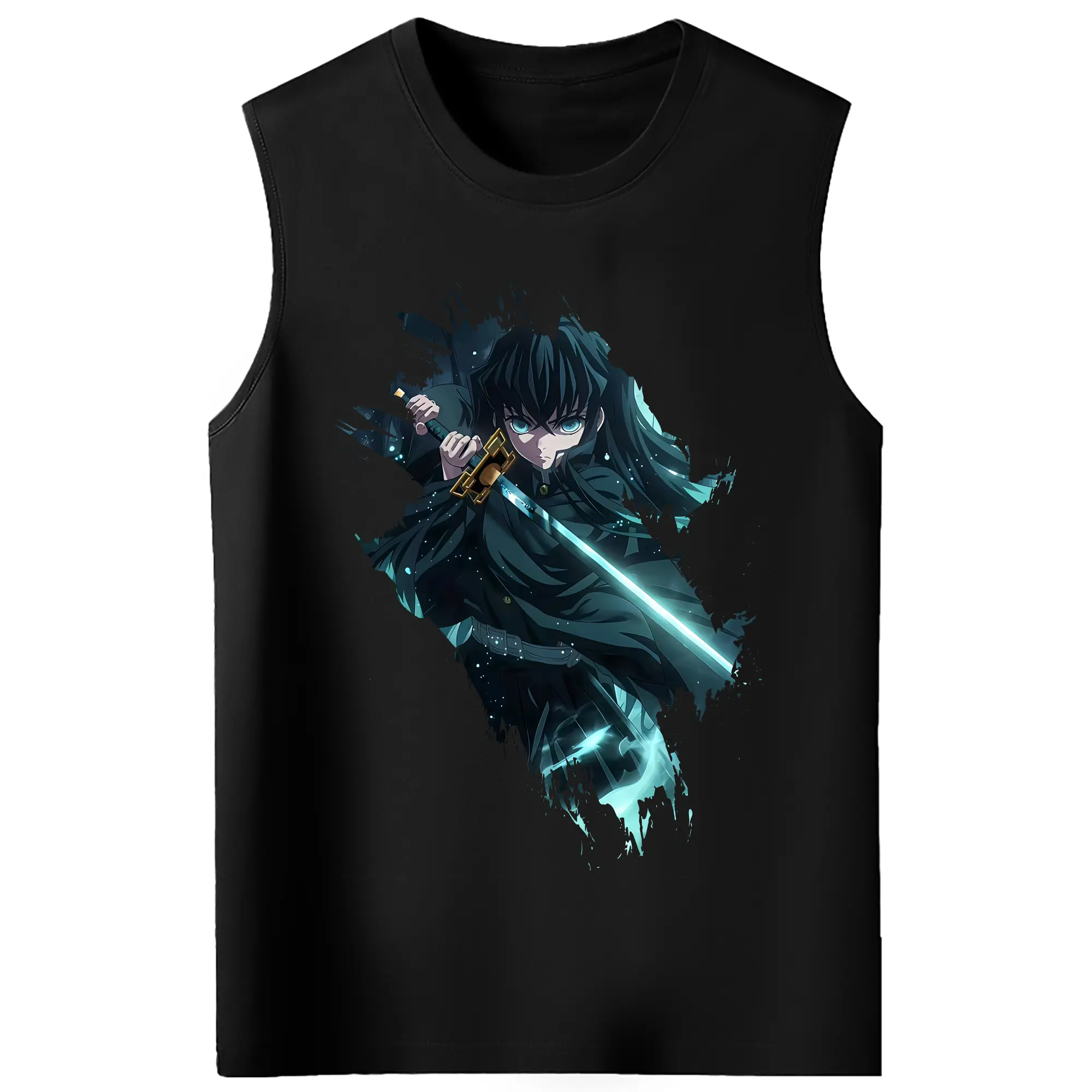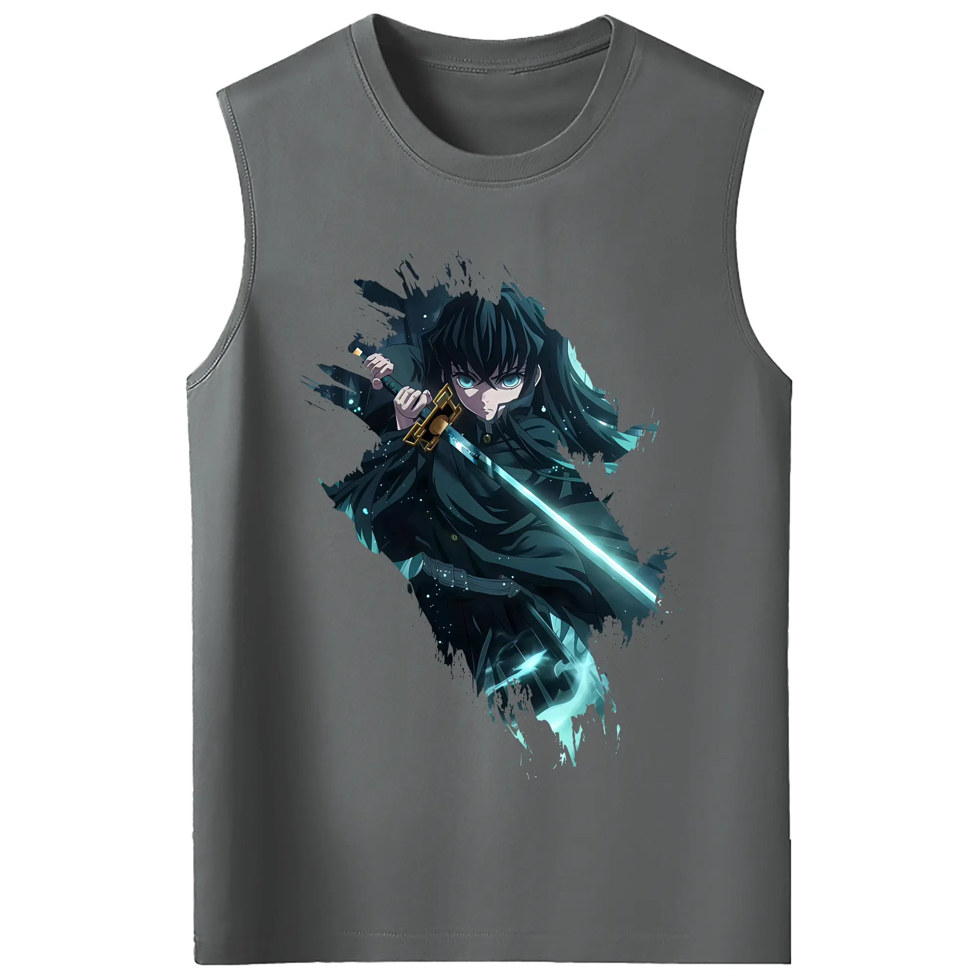 鬼滅の刃 グッズ,時透 無一郎 - コットン100% タンクトップ ・ フロントプリント ・ タイトフィット ・ 快適 通気性 ・ スポーツ カジュアル 散歩用