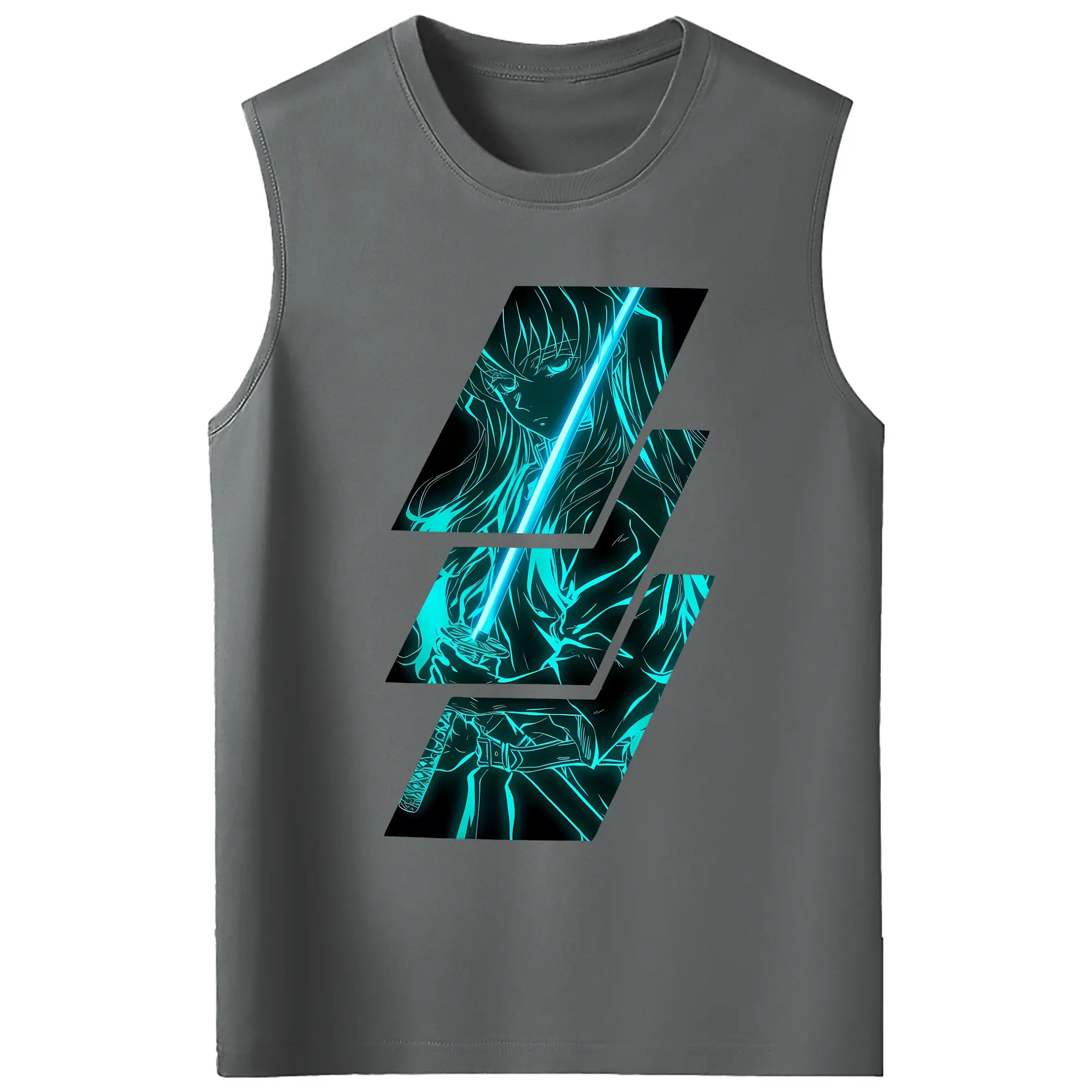 鬼滅の刃 グッズ,時透 無一郎 - コットン100% タンクトップ ・ フロントプリント ・ タイトフィット ・ 快適 通気性 ・ スポーツ カジュアル 散歩用