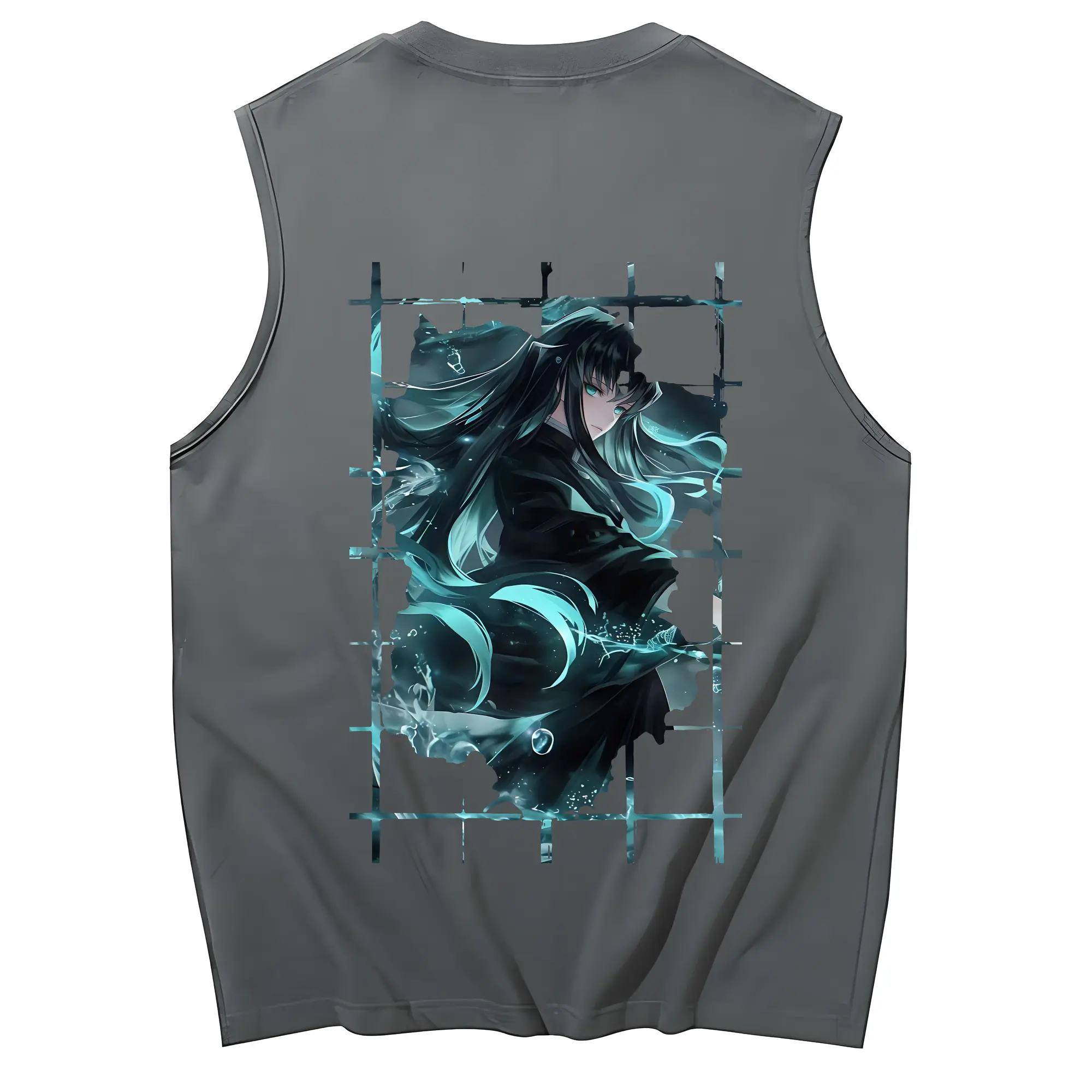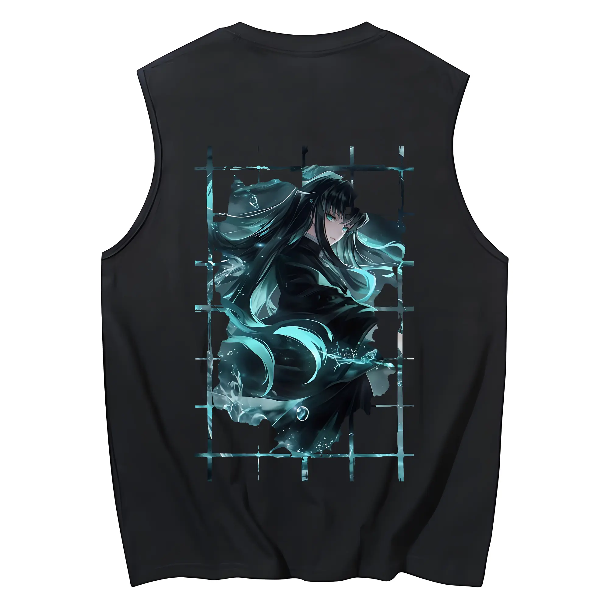 鬼滅の刃 グッズ,時透 無一郎 - コットン100% タンクトップ ・ 背面プリント ・ タイトシルエット ・ 快適 通気性 ・ スポーツ カジュアル 散歩用