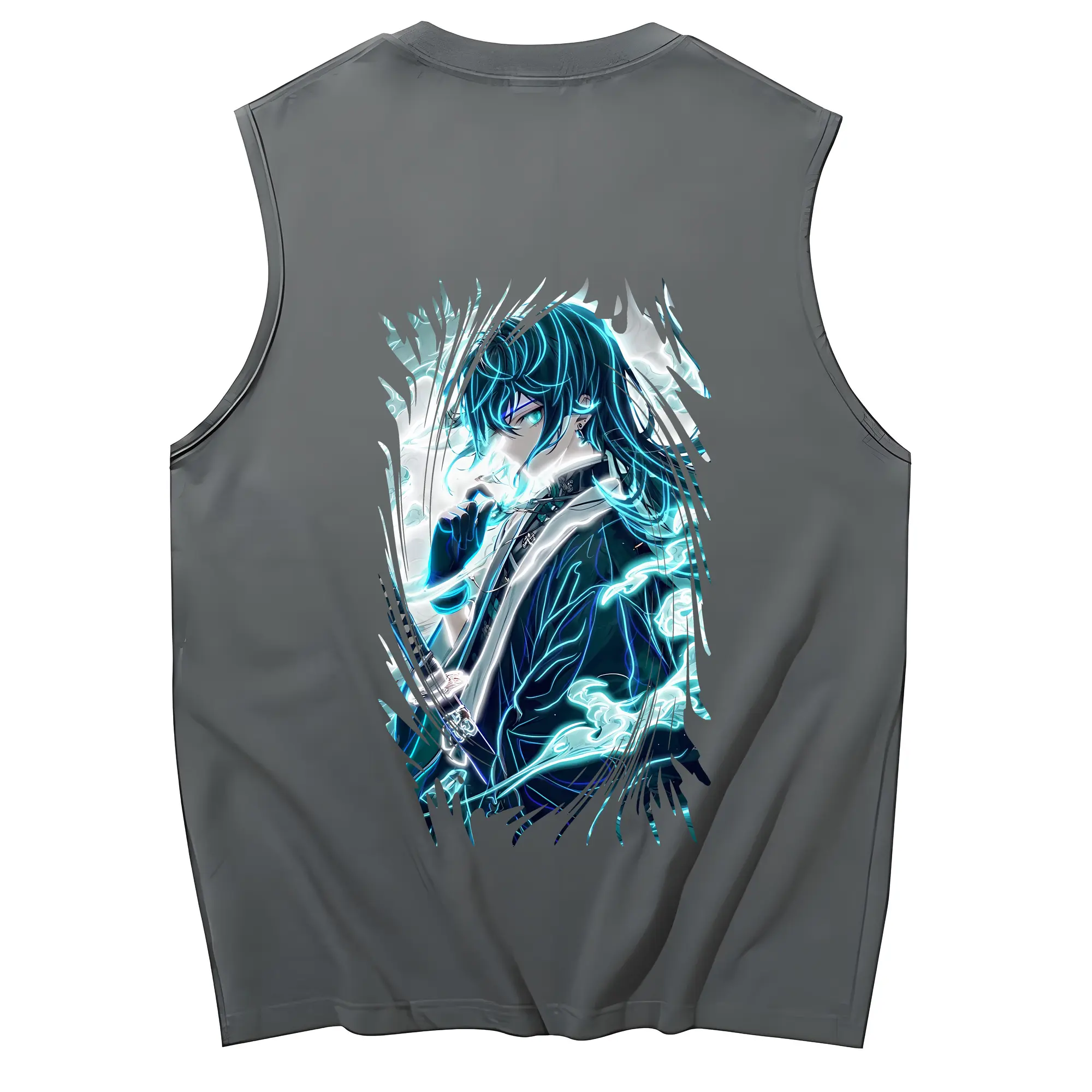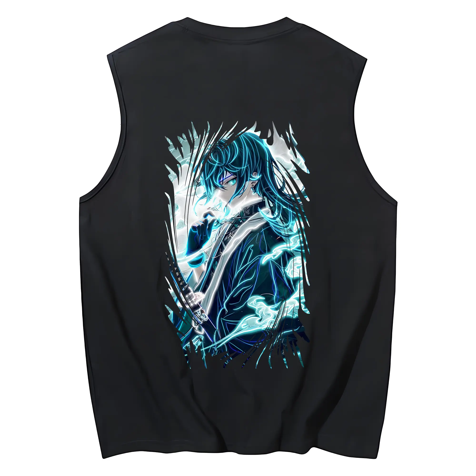 鬼滅の刃 グッズ,時透 無一郎 - コットン100% タンクトップ ・ 背面プリント ・ タイトシルエット ・ 快適 通気性 ・ スポーツ カジュアル 散歩用