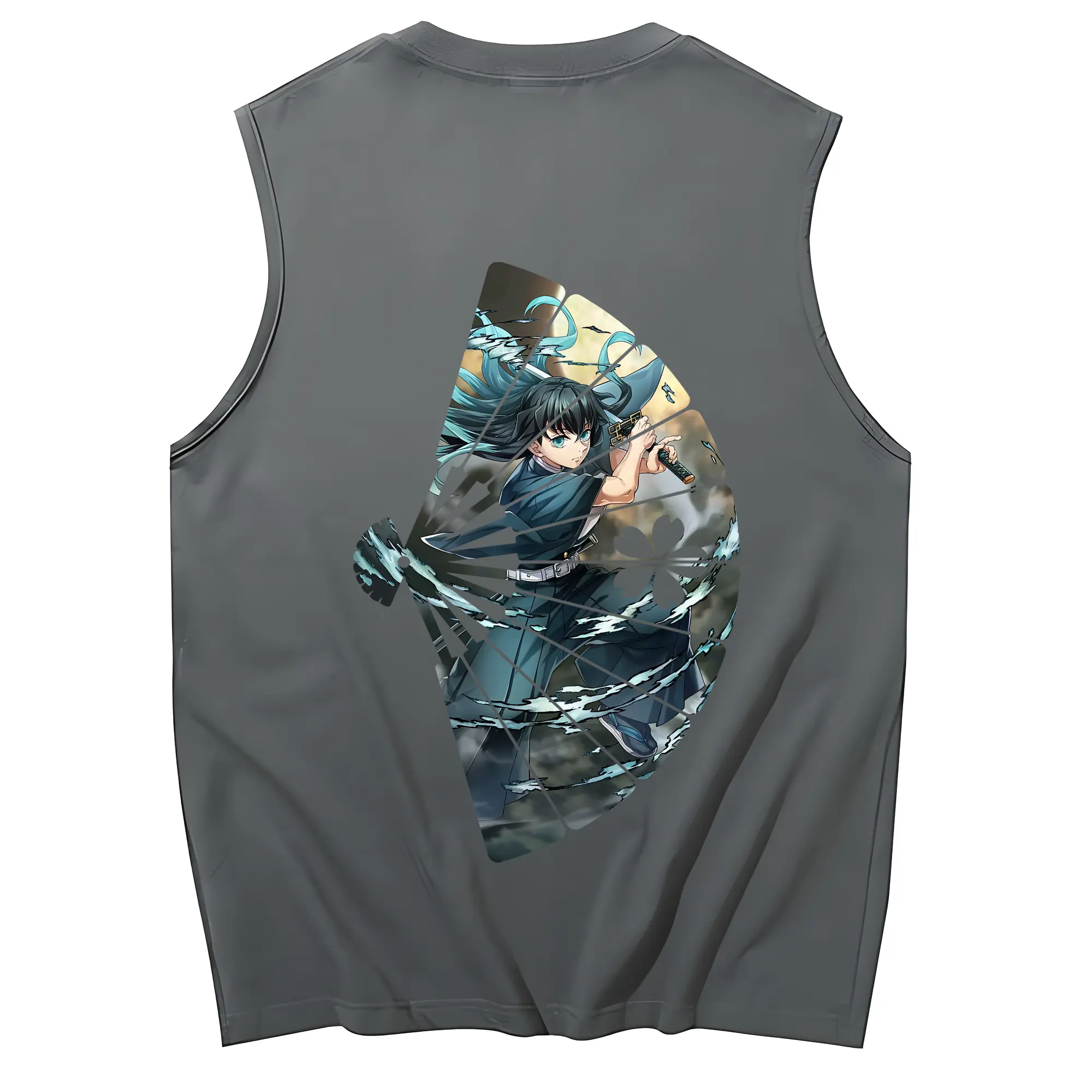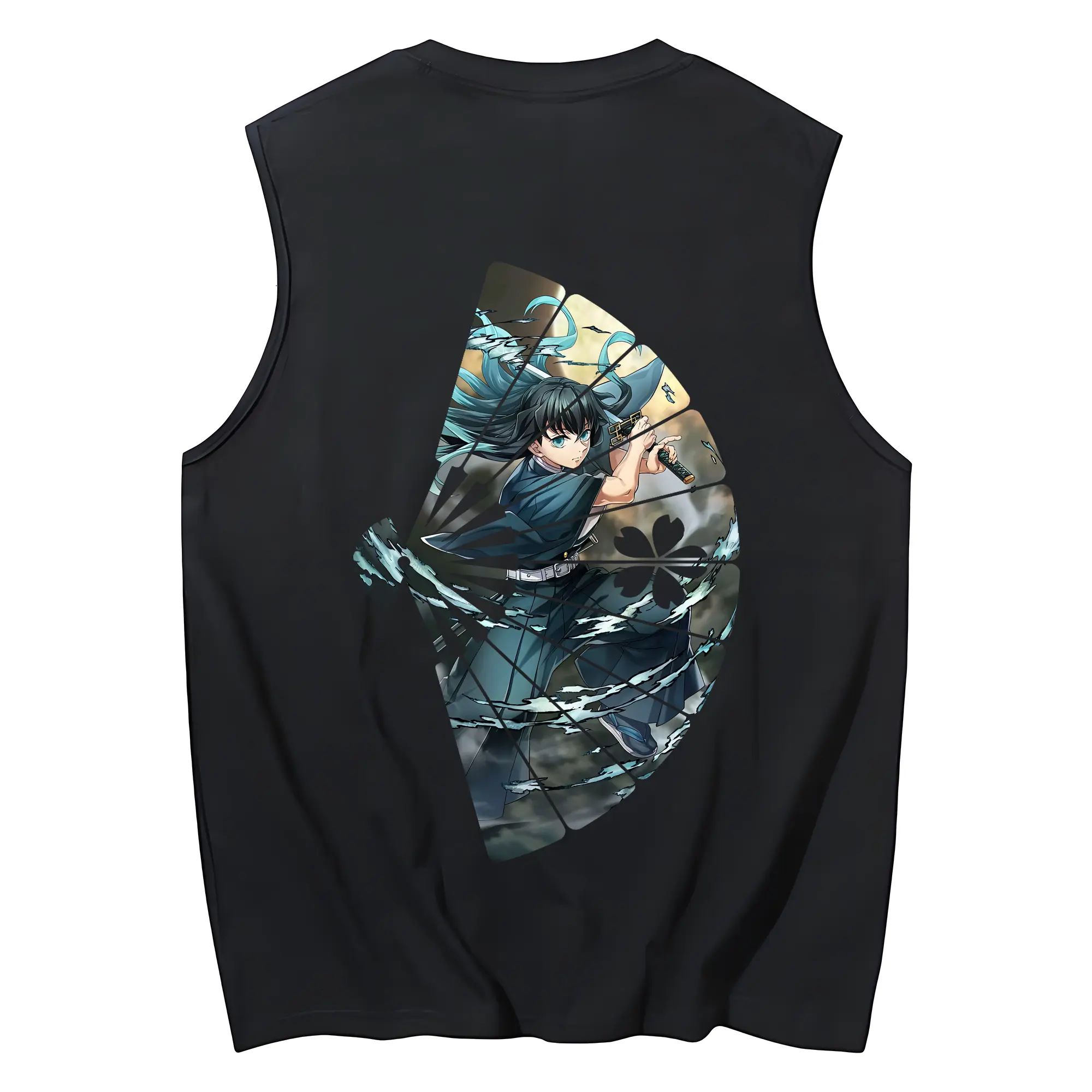 鬼滅の刃 グッズ,時透 無一郎 - コットン100% タンクトップ ・ 背面プリント ・ タイトシルエット ・ 快適 通気性 ・ スポーツ カジュアル 散歩用