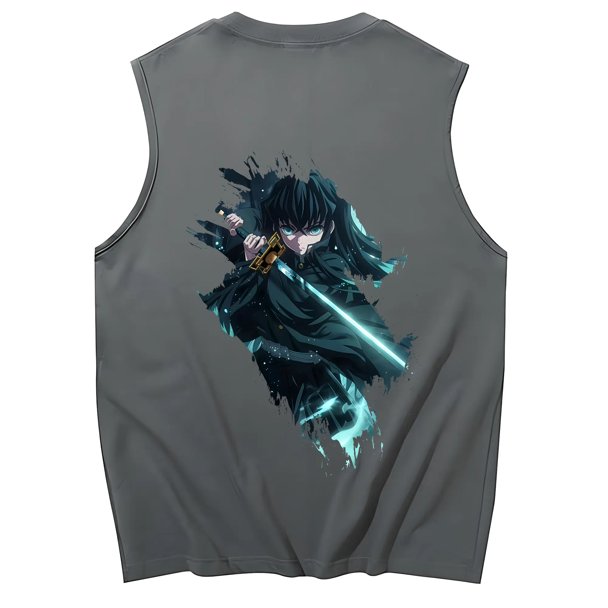 鬼滅の刃 グッズ,時透 無一郎 - コットン100% タンクトップ ・ 背面プリント ・ タイトシルエット ・ 快適 通気性 ・ スポーツ カジュアル 散歩用