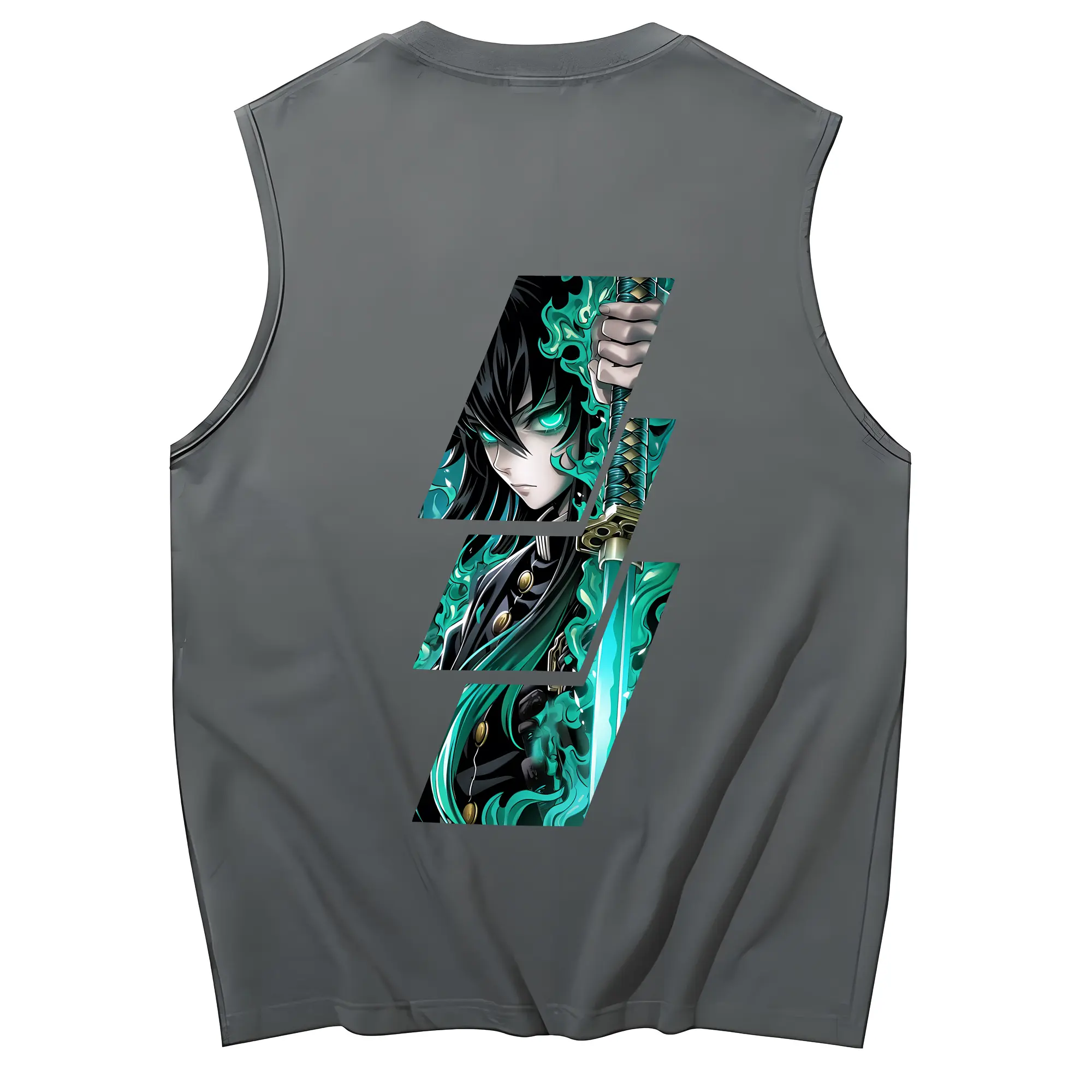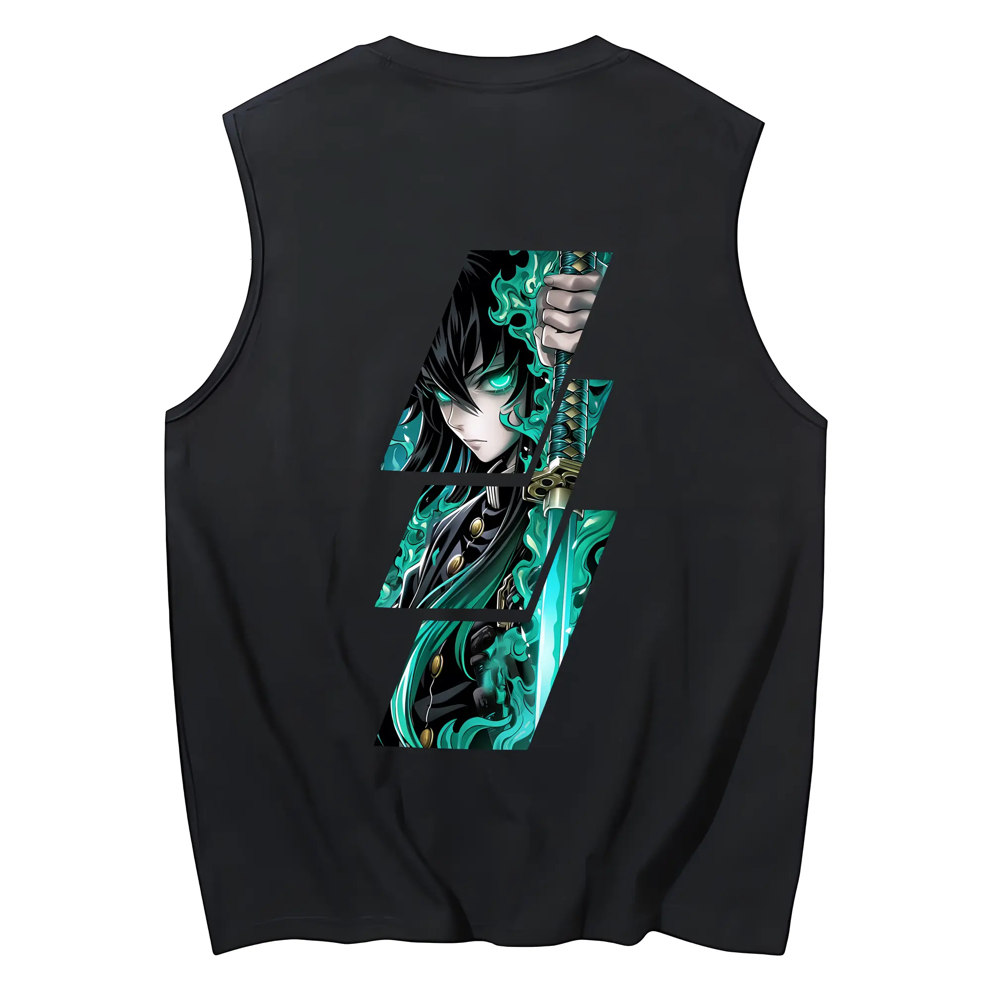 鬼滅の刃 グッズ,時透 無一郎 - コットン100% タンクトップ ・ 背面プリント ・ タイトシルエット ・ 快適 通気性 ・ スポーツ カジュアル 散歩用
