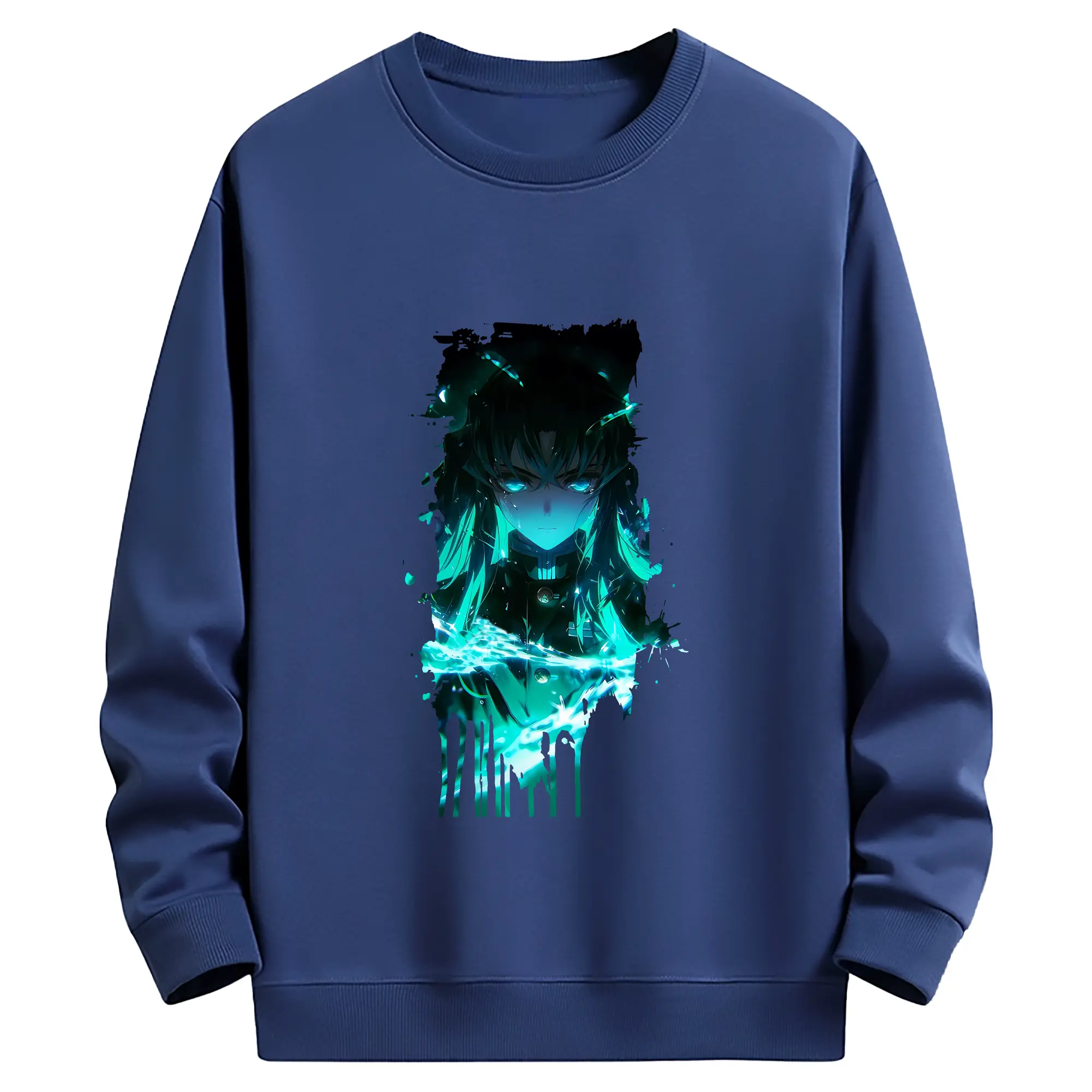 鬼滅の刃 グッズ,時透 無一郎 - 薄手 クルーネック スウェット 裏毛260g · ポリエステル 春秋向け カジュアル 男女兼用 · トレーナー デイリー スポーツ 散歩に最適