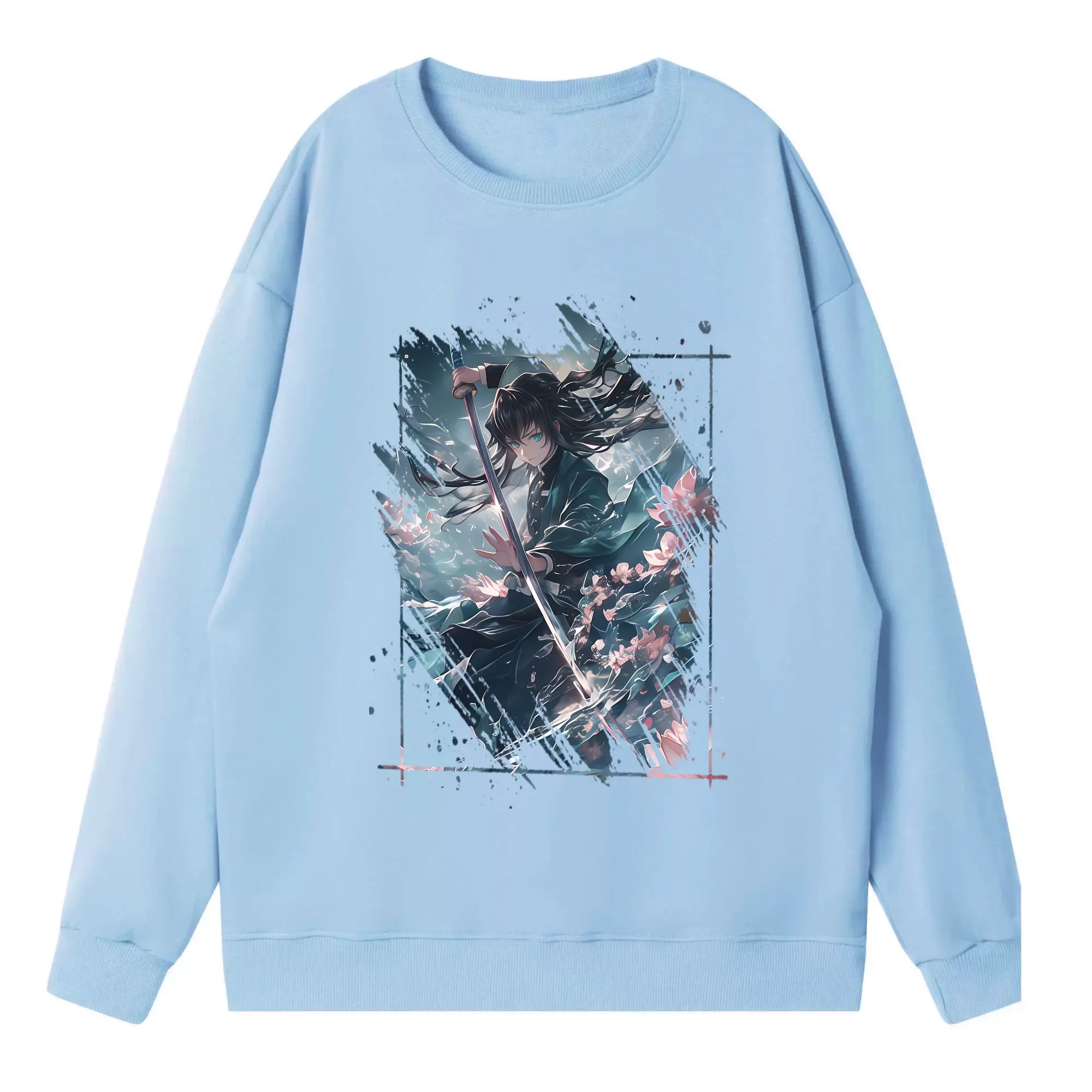 鬼滅の刃 グッズ,時透 無一郎 - 高品質 クルーネック スウェット ・ コットン59% ポリエステル41% ・ ユニセックス 長袖 トレーナー ・ カジュアル デイリー スポーツ 散歩用