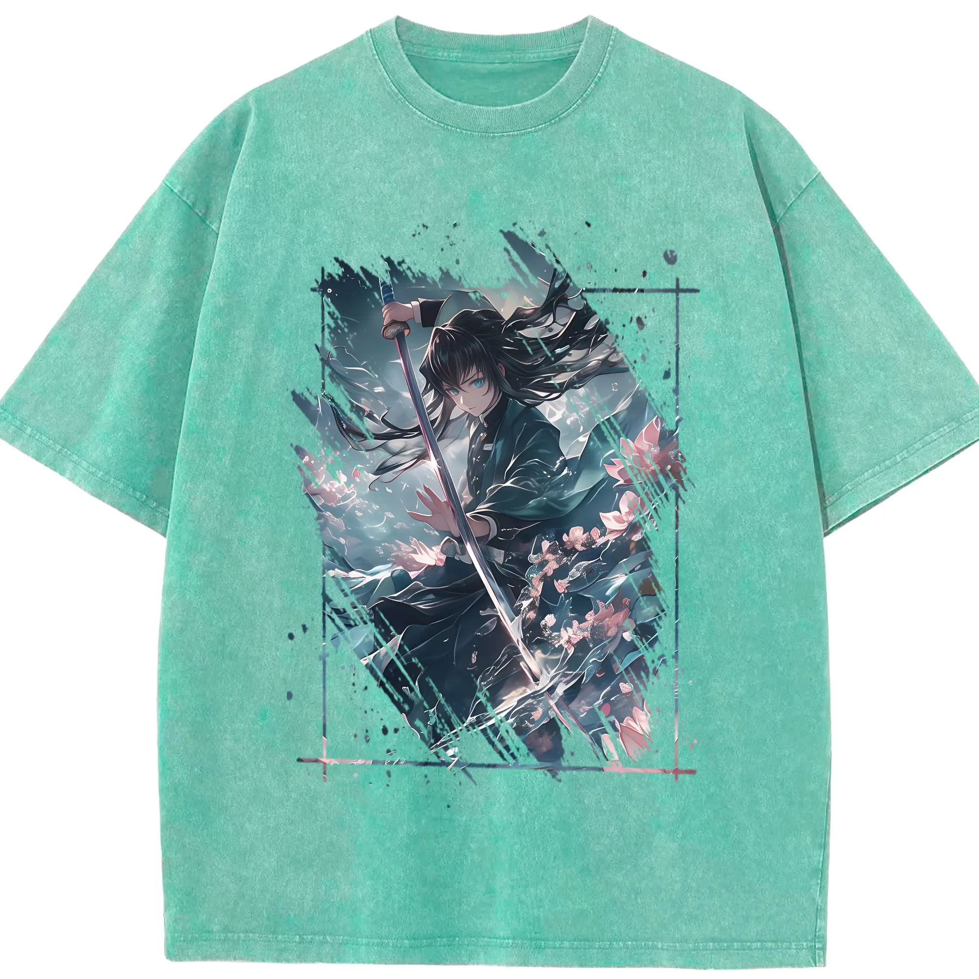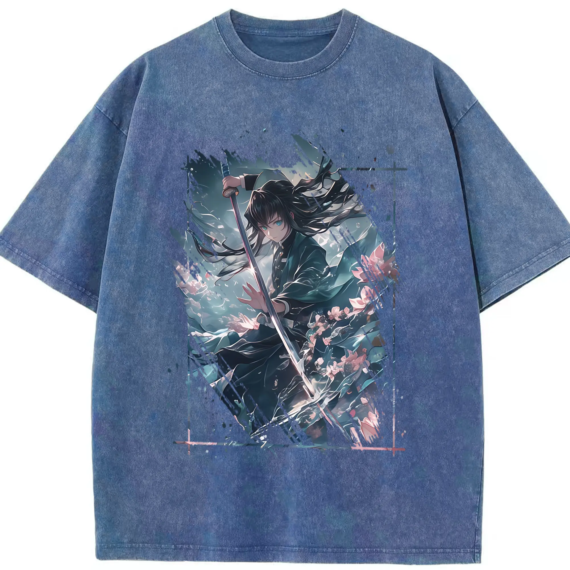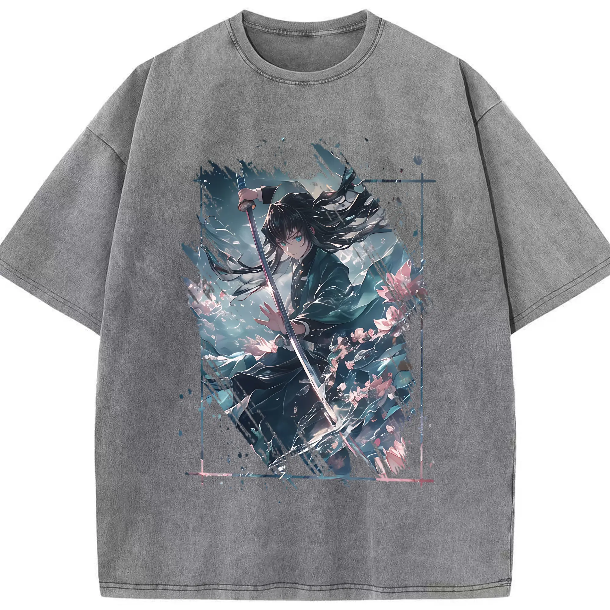 鬼滅の刃 グッズ,時透 無一郎 - 綿100% 半袖Tシャツ ・ フロントプリント ・ 快適 通気性 ・ 日常使い 散歩 スポーツ用