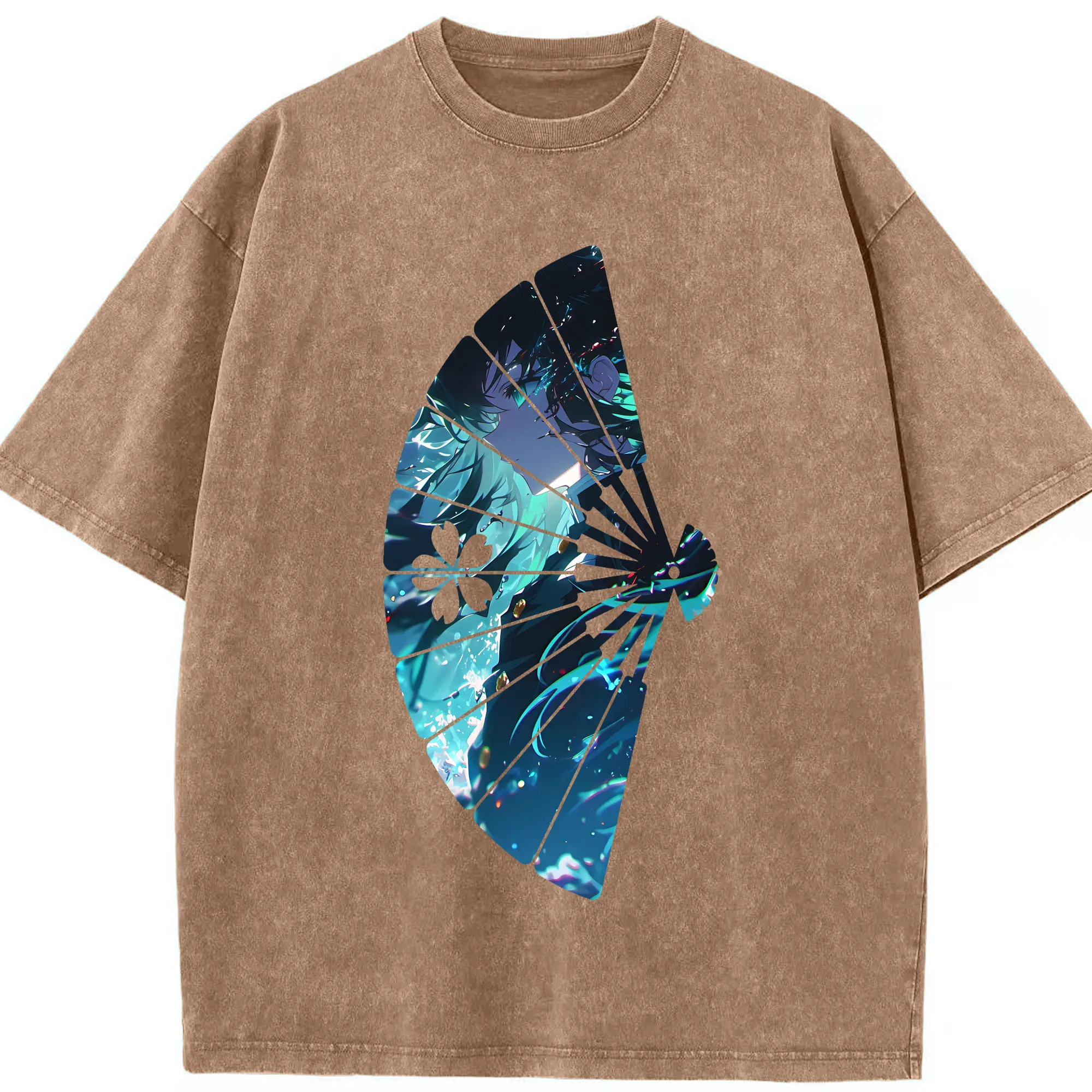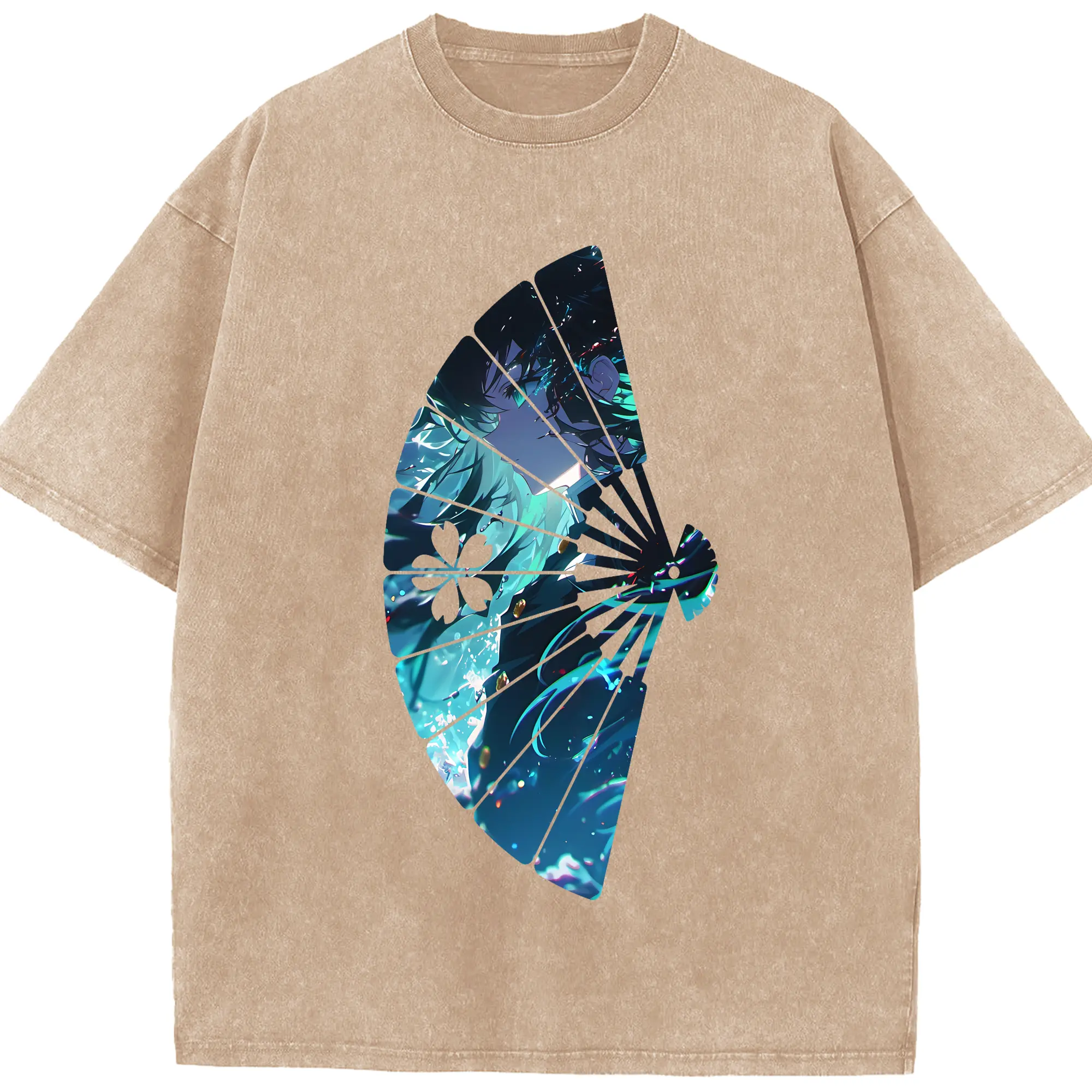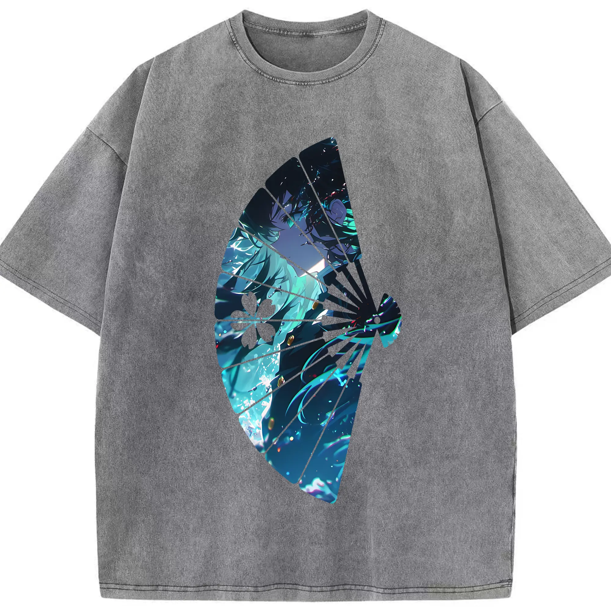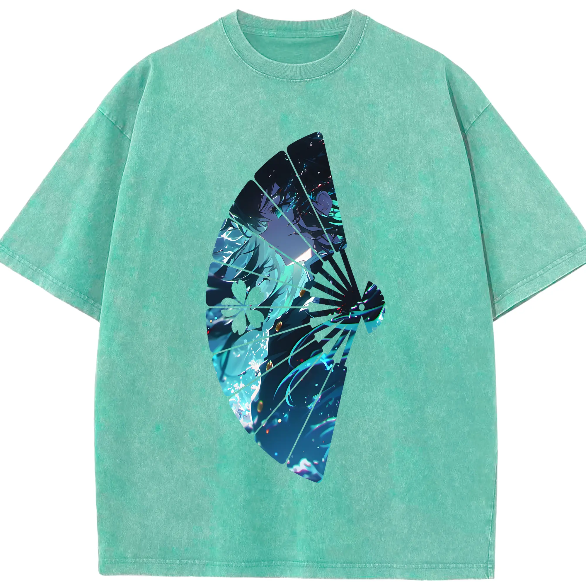原 神 グッズ フータオ - 綿100% ヴィンテージ風 半袖Tシャツ ・ フロントプリント ・ 柔らか肌触り ・ 通気性 快適 ・ スポーツ カジュアル 外出用