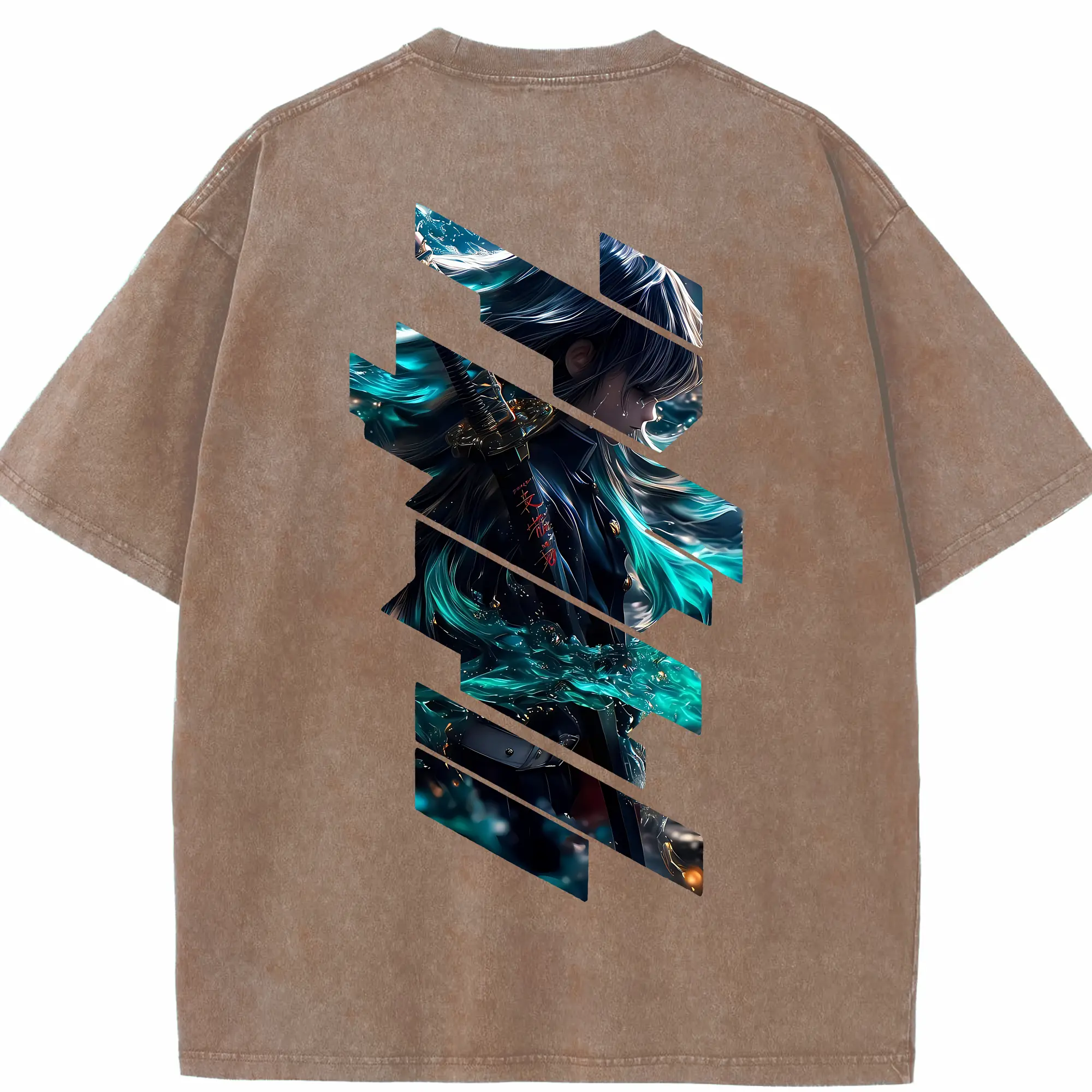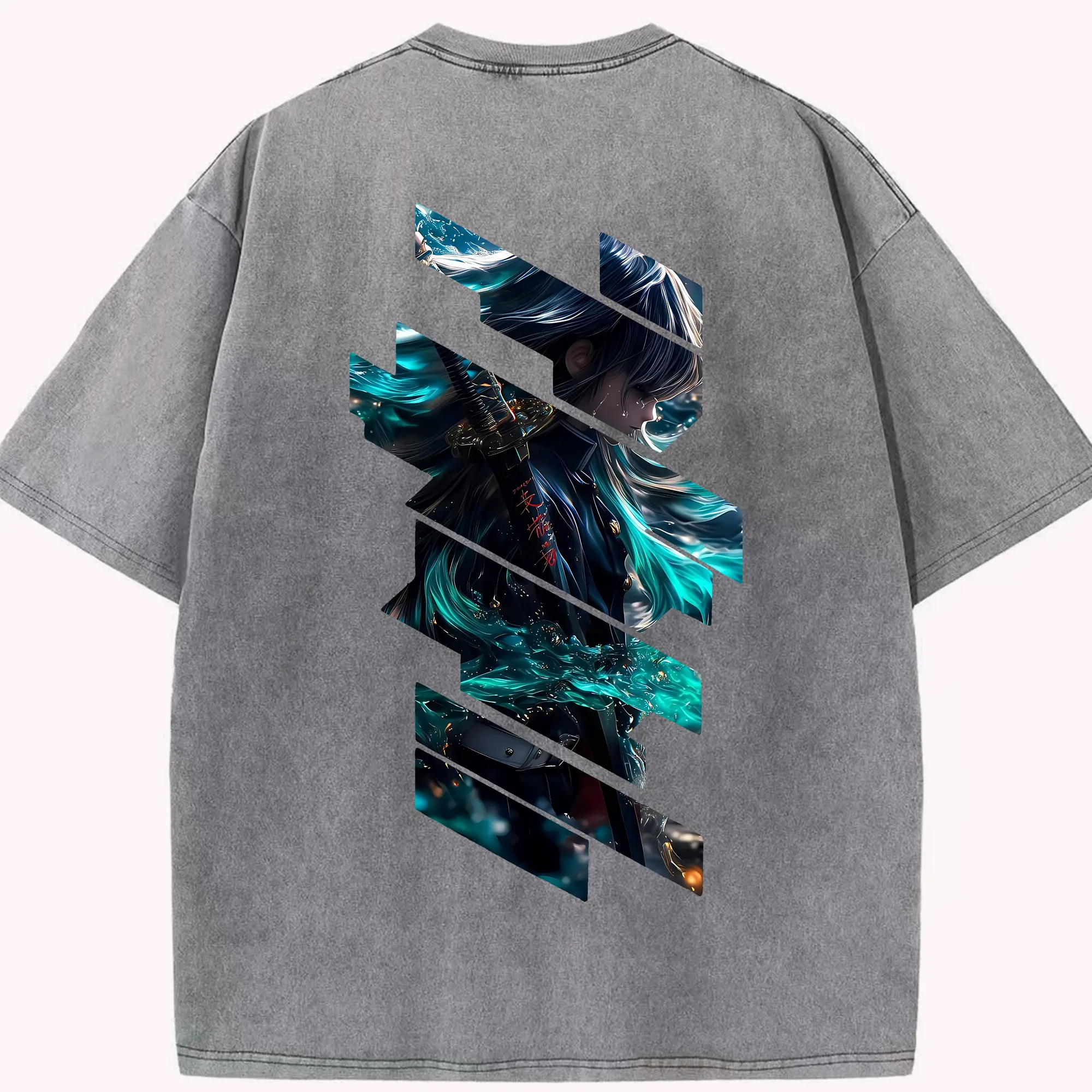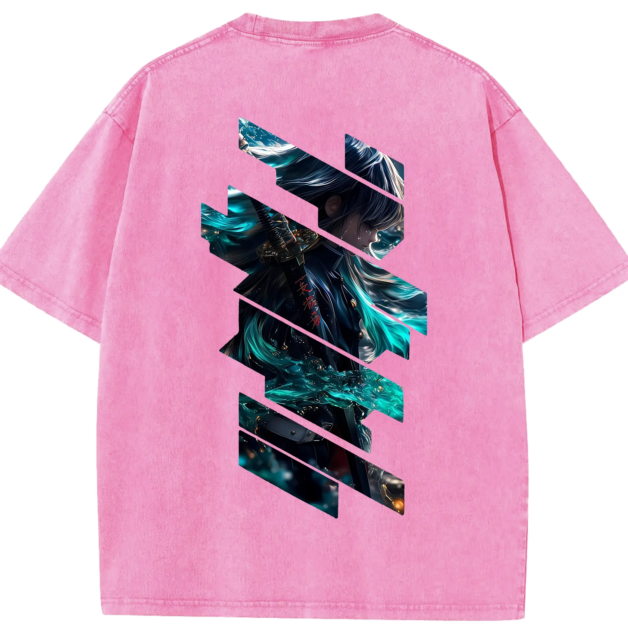 銀魂 グッズ 神楽 - 綿100% ヴィンテージ風 半袖Tシャツ ・ 背面プリント ・ 柔らか肌触り ・ 通気性 快適 ・ スポーツ カジュアル 外出用
