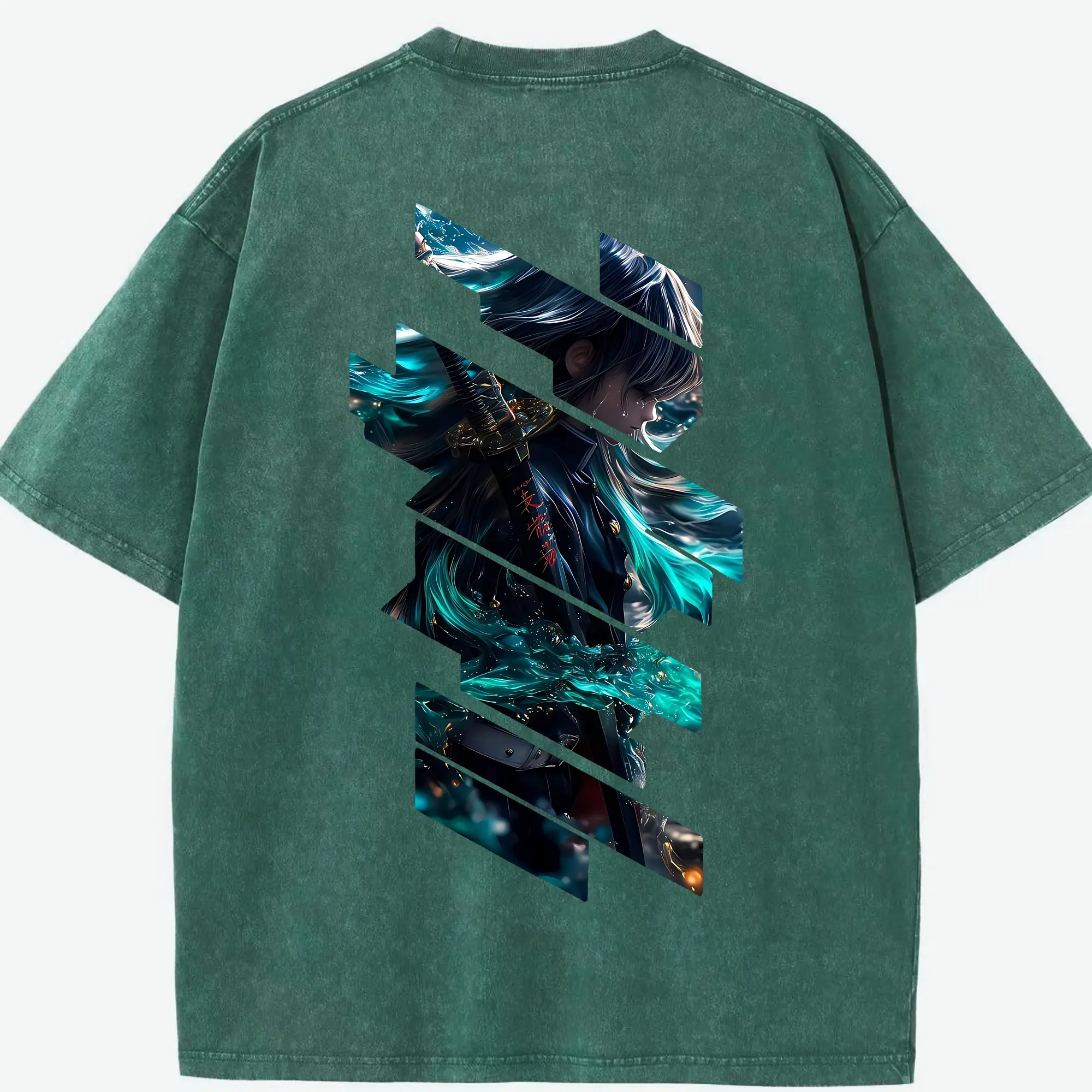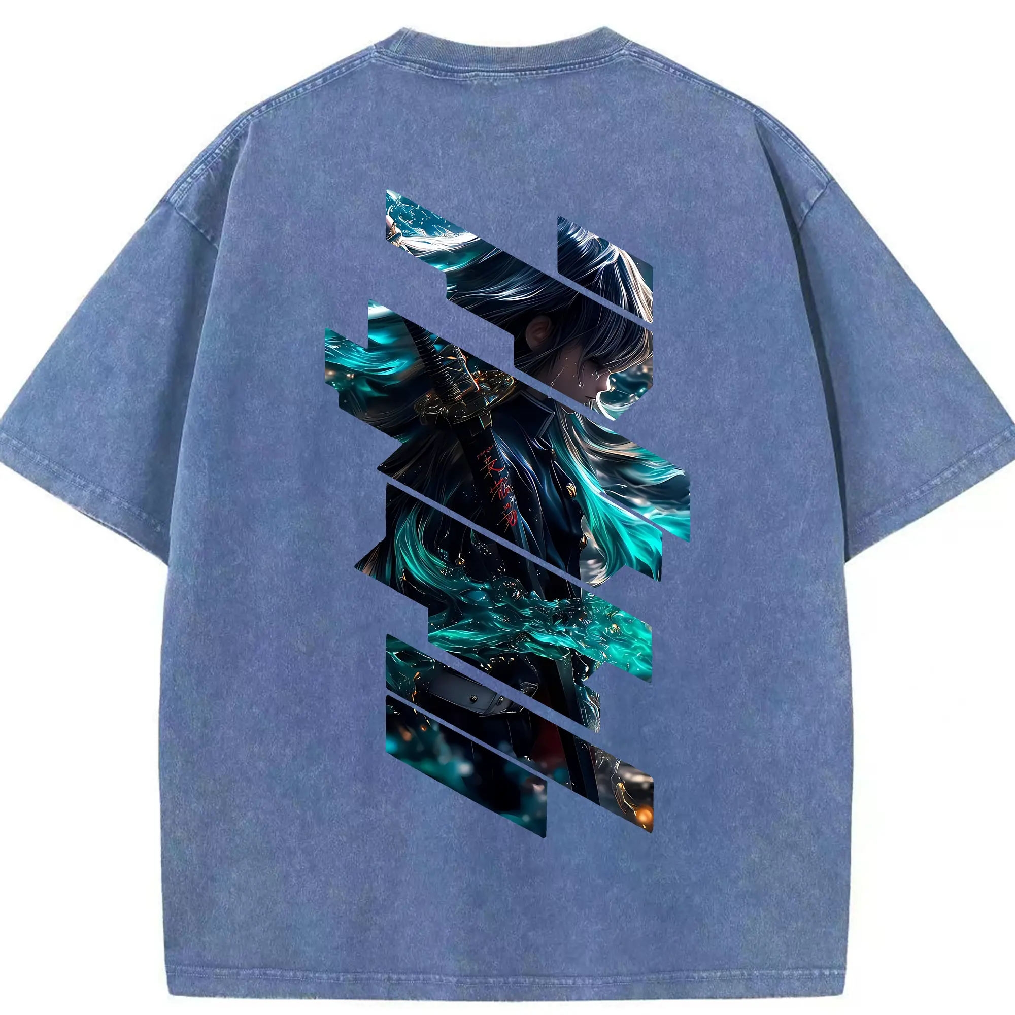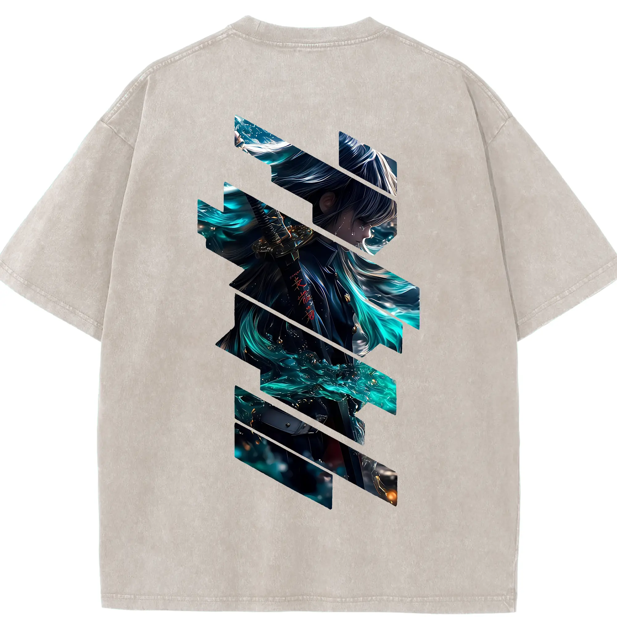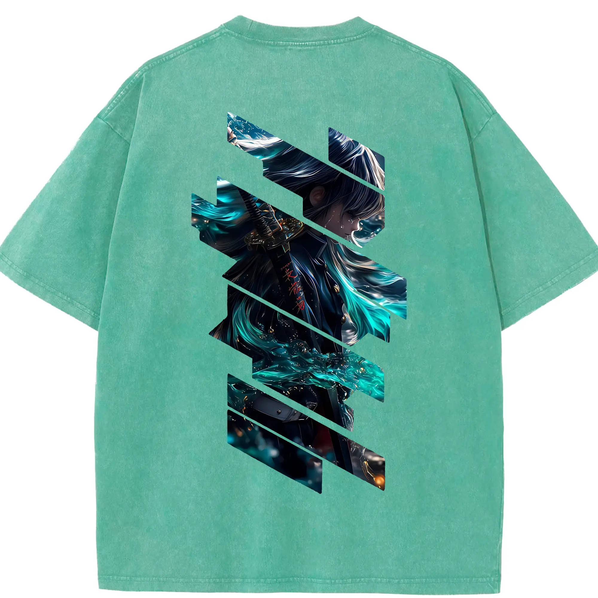 銀魂 グッズ 神楽 - 綿100% ヴィンテージ風 半袖Tシャツ ・ 背面プリント ・ 柔らか肌触り ・ 通気性 快適 ・ スポーツ カジュアル 外出用
