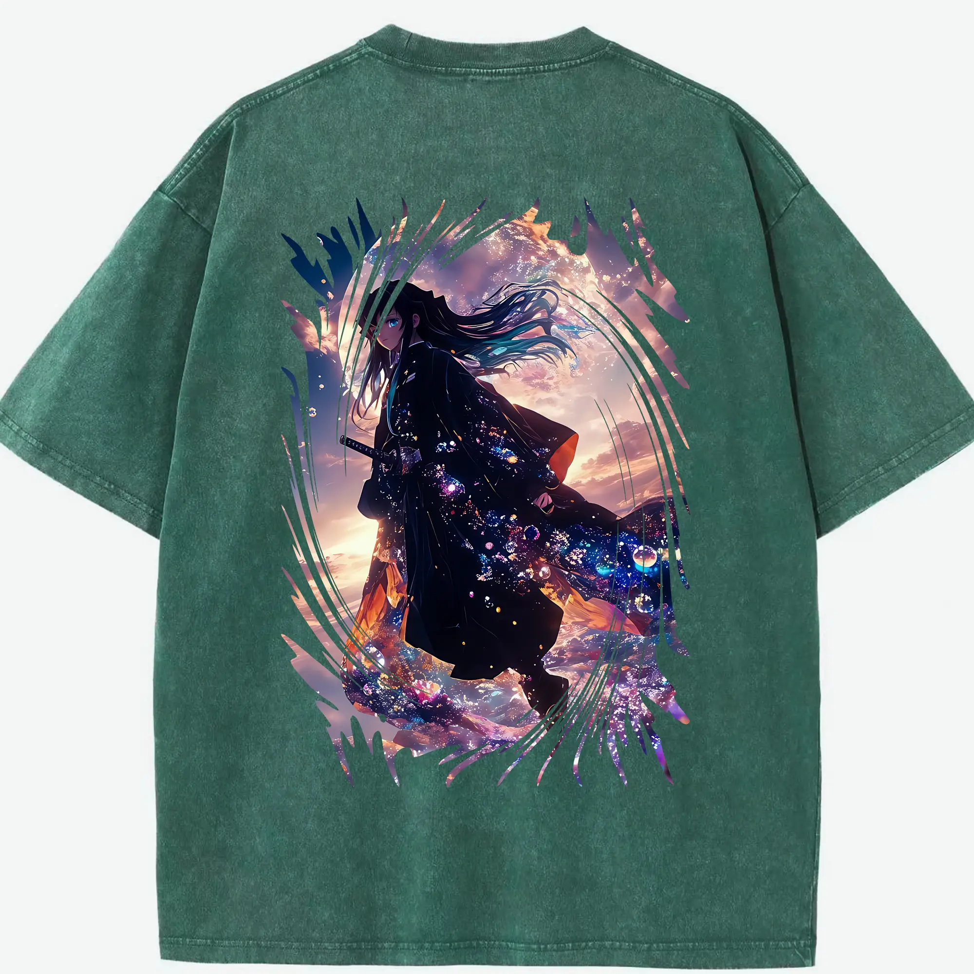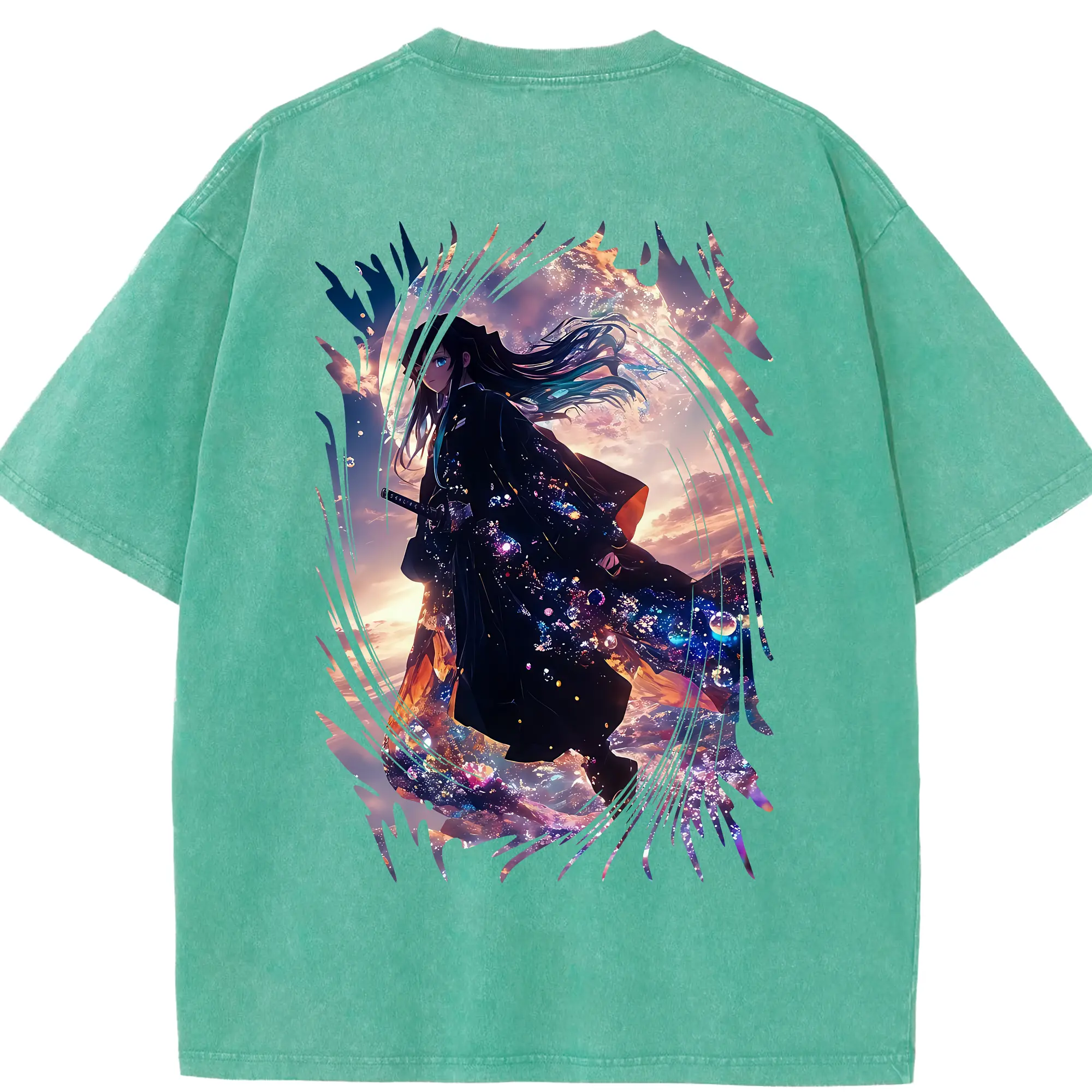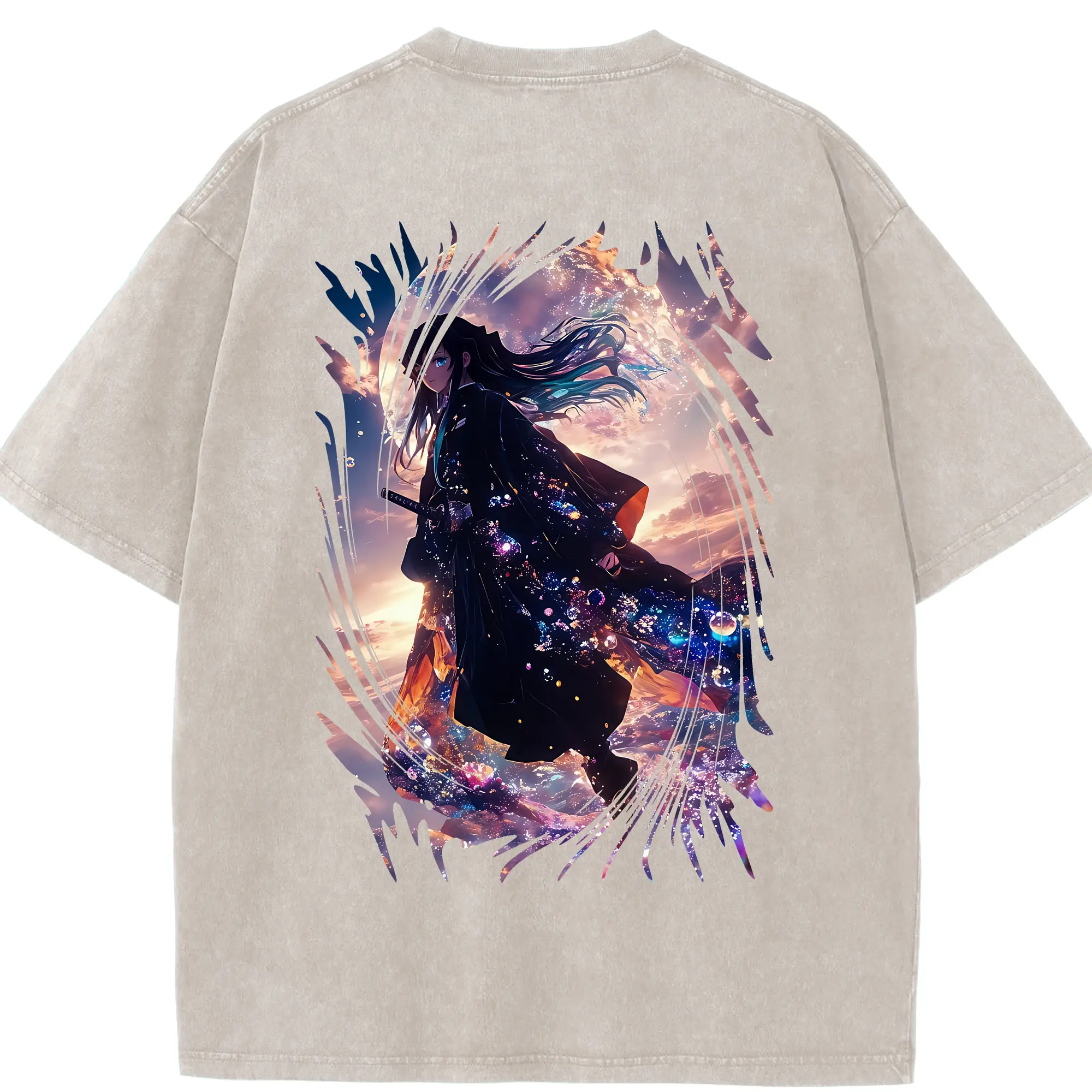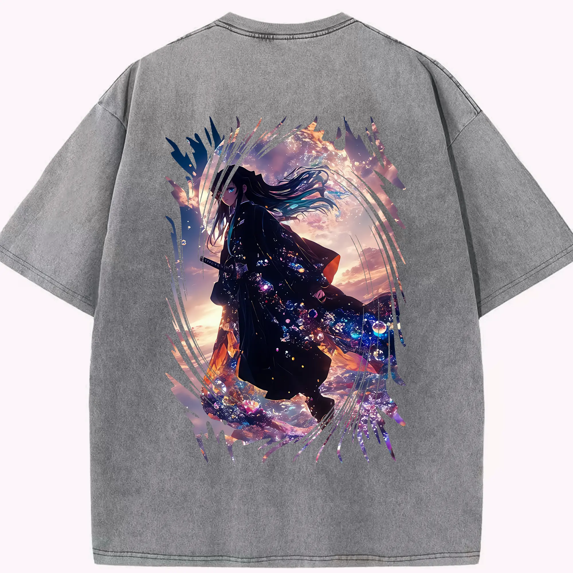 鬼滅の刃 グッズ,冨岡 義勇 - 綿100% ヴィンテージ風 半袖Tシャツ ・ 背面プリント ・ 柔らか肌触り ・ 通気性 快適 ・ スポーツ カジュアル 外出用