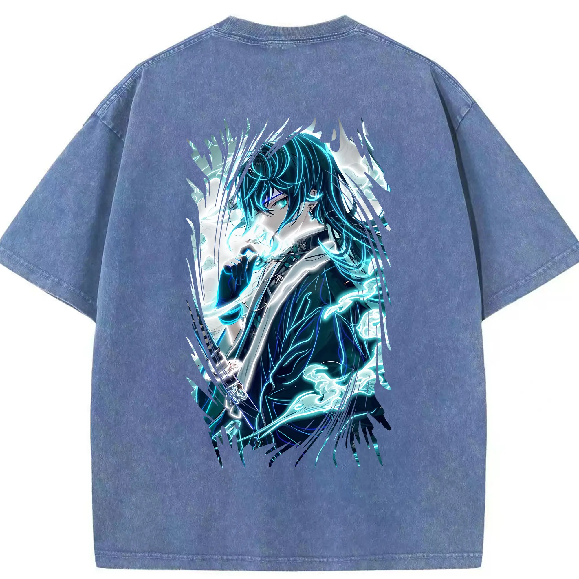 鬼滅の刃 グッズ,時透 無一郎 - 綿100% 半袖Tシャツ ・ フロントプリント ・ 快適 通気性 ・ 日常使い 散歩 スポーツ用