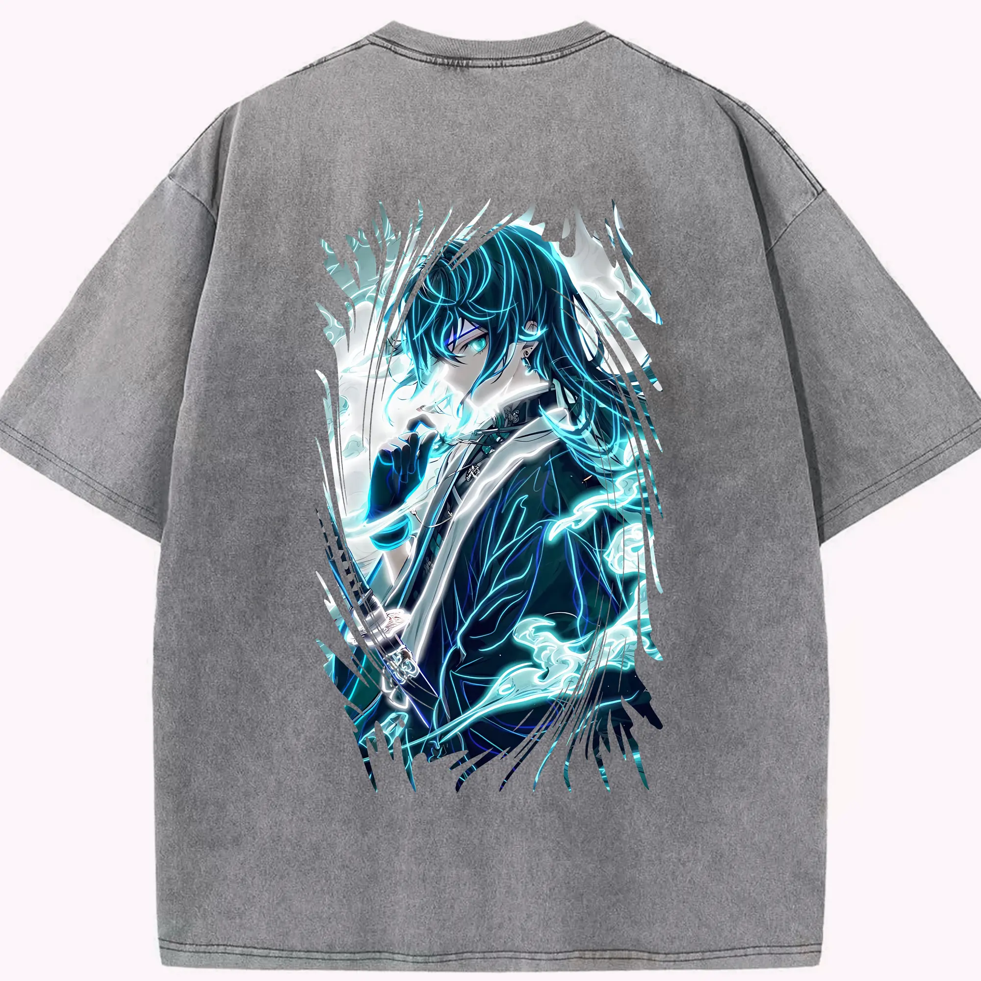 鬼滅の刃 グッズ,時透 無一郎 - 綿100% 半袖Tシャツ ・ バックプリント ・ 快適 通気性 ・ 日常使い 散歩 スポーツ用