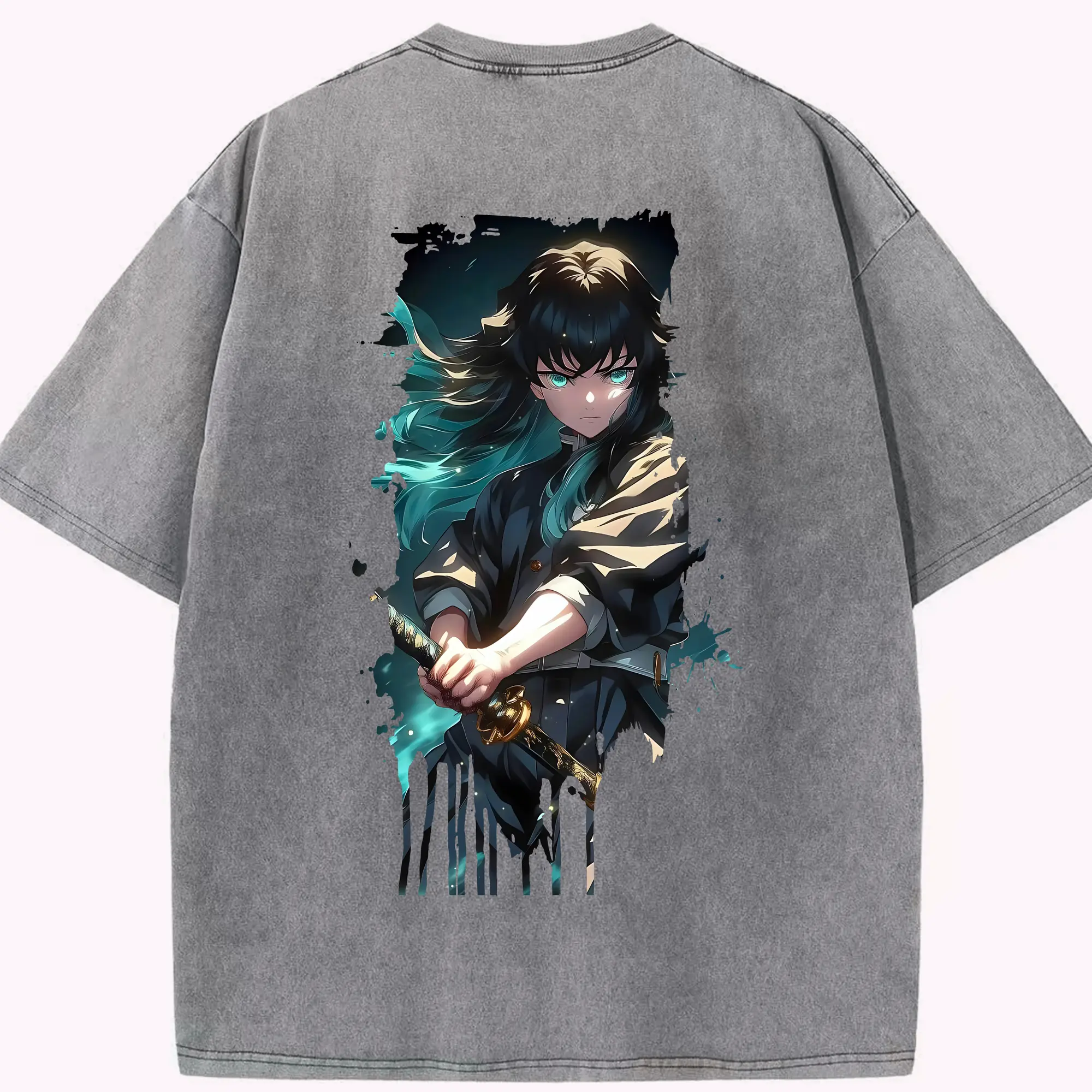 鬼滅の刃 グッズ,時透 無一郎 - 綿100% 半袖Tシャツ ・ バックプリント ・ 快適 通気性 ・ 日常使い 散歩 スポーツ用