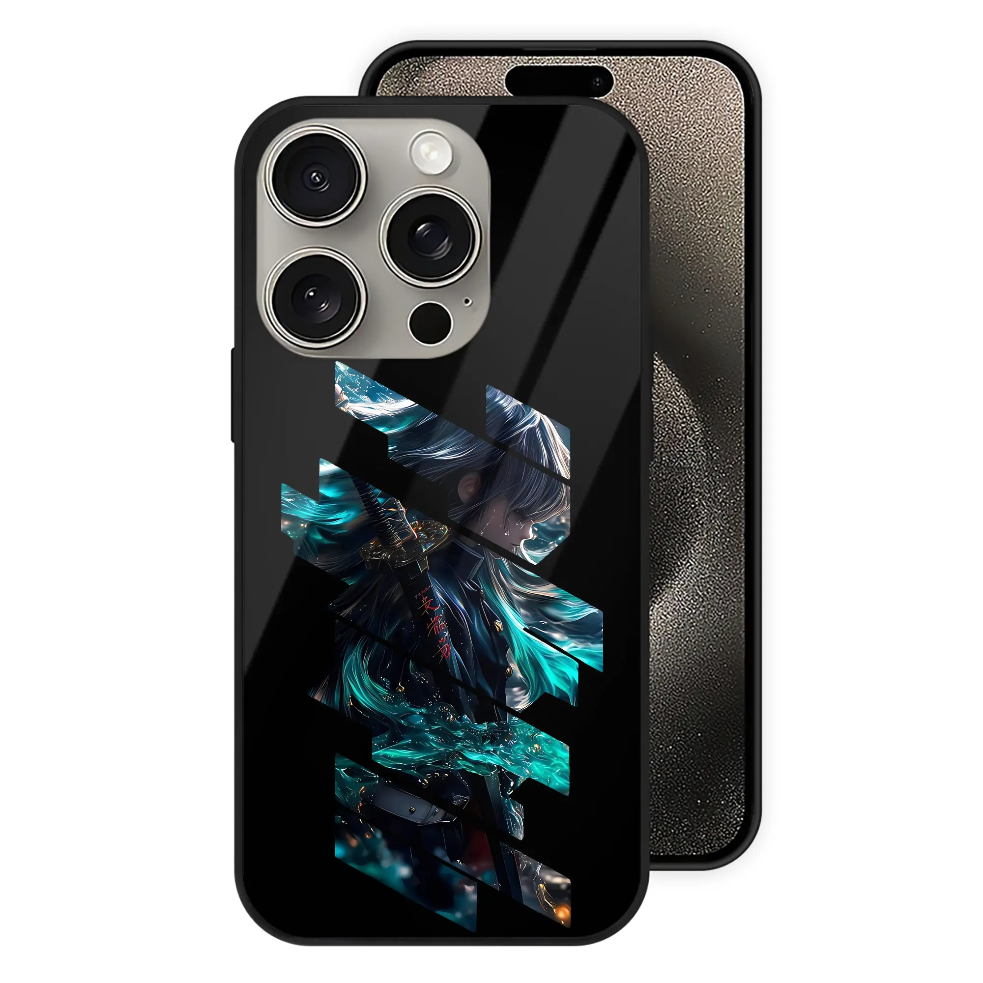 鬼滅の刃 グッズ,時透 無一郎 - IPhone15Pro対応 ・ スマホケース ・ 背面ガラス ・ TPU+強化ガラス ・ 耐衝撃 ・ 黄変防止 ・ ワイヤレス充電対応 ・ 3D立体ボタン