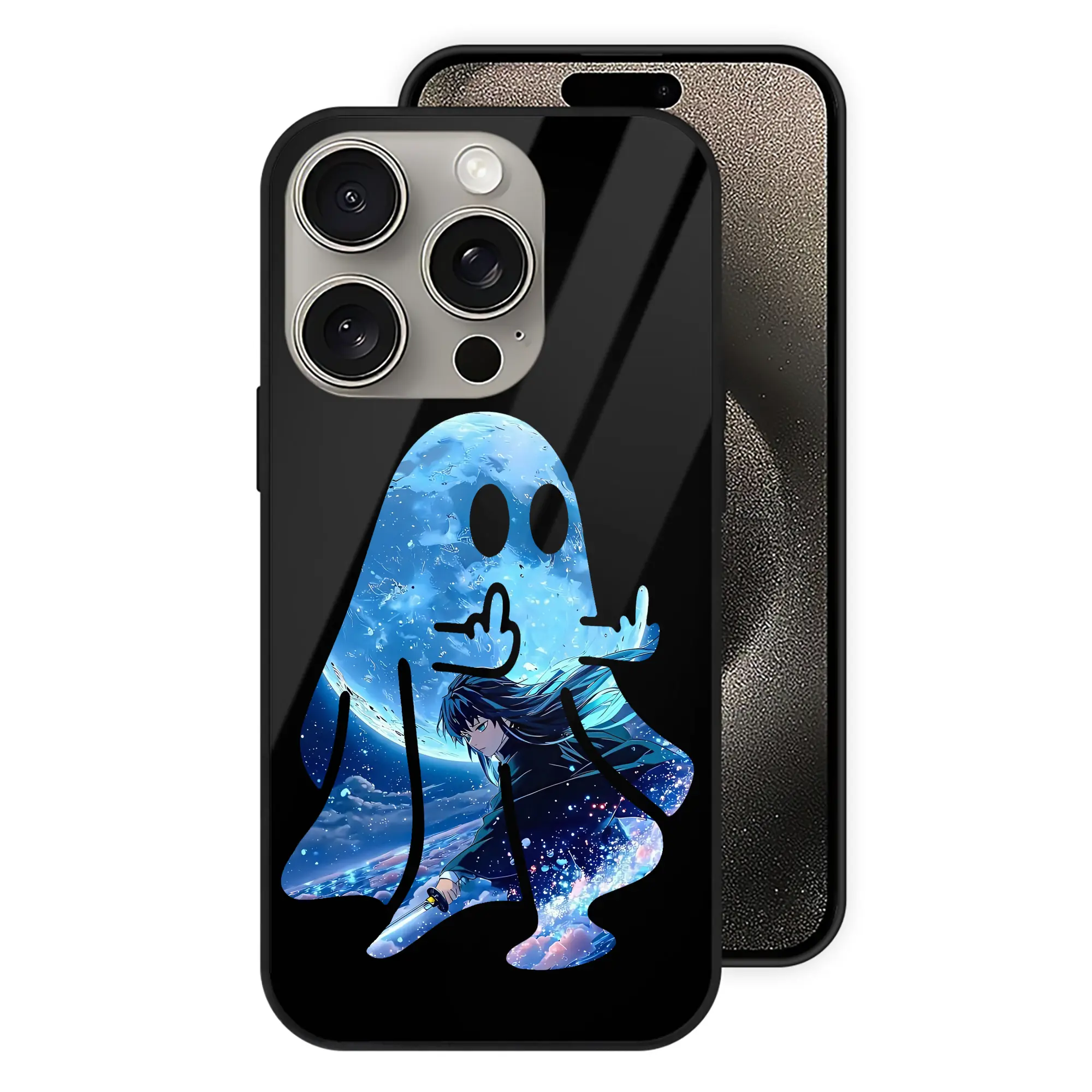 鬼滅の刃 グッズ,時透 無一郎 - IPhone15Pro対応 ・ スマホケース ・ 背面ガラス ・ TPU+強化ガラス ・ 耐衝撃 ・ 黄変防止 ・ ワイヤレス充電対応 ・ 3D立体ボタン